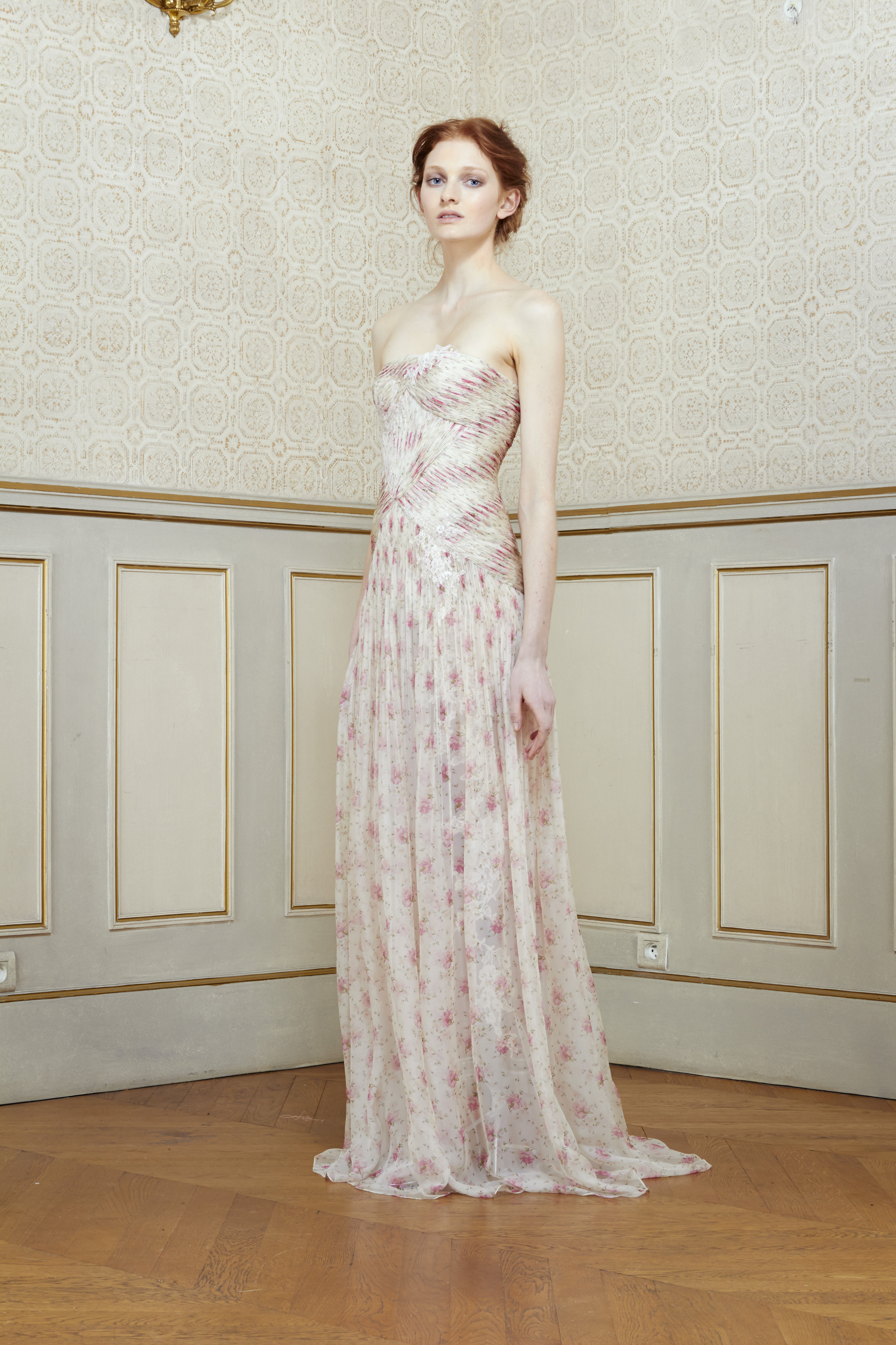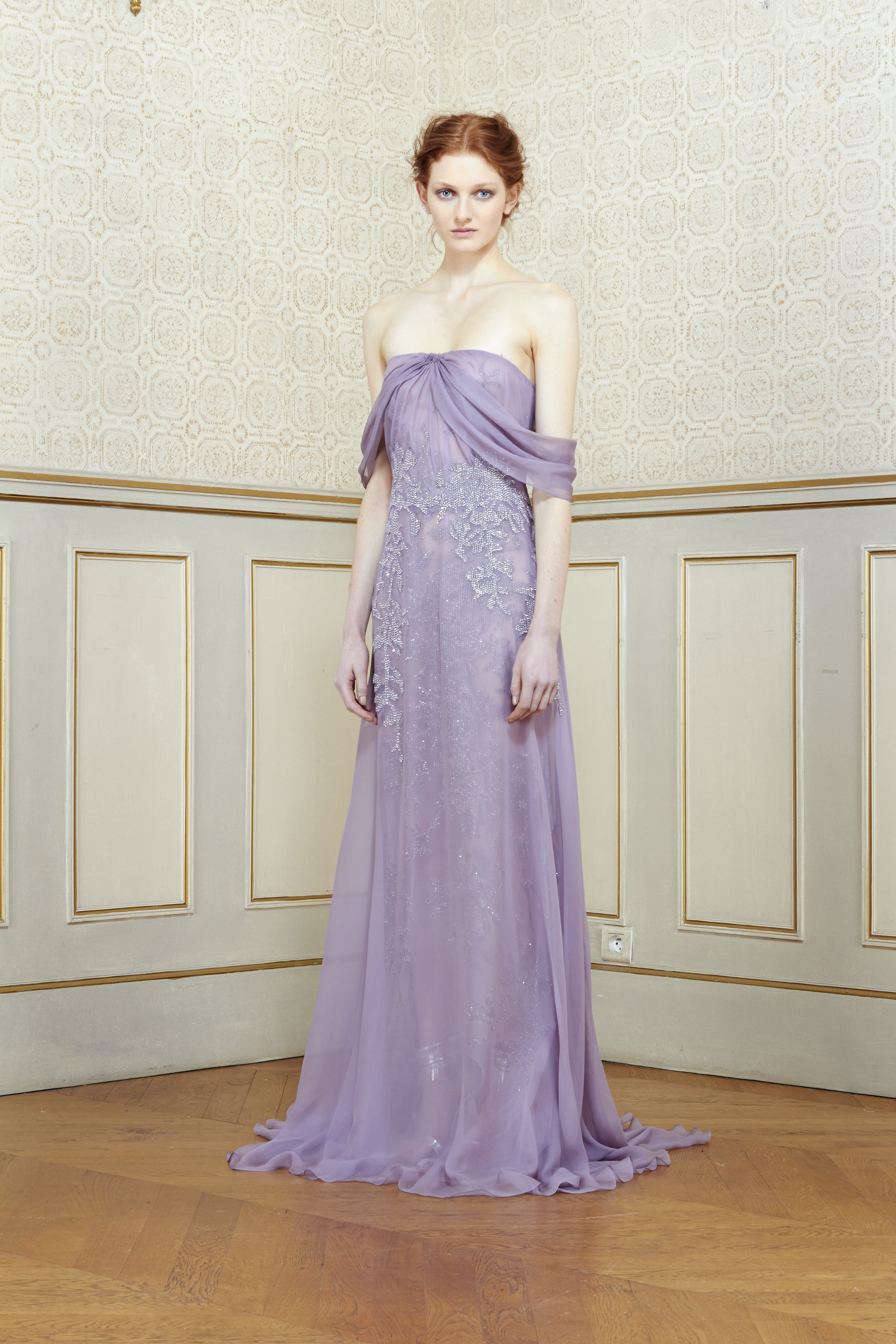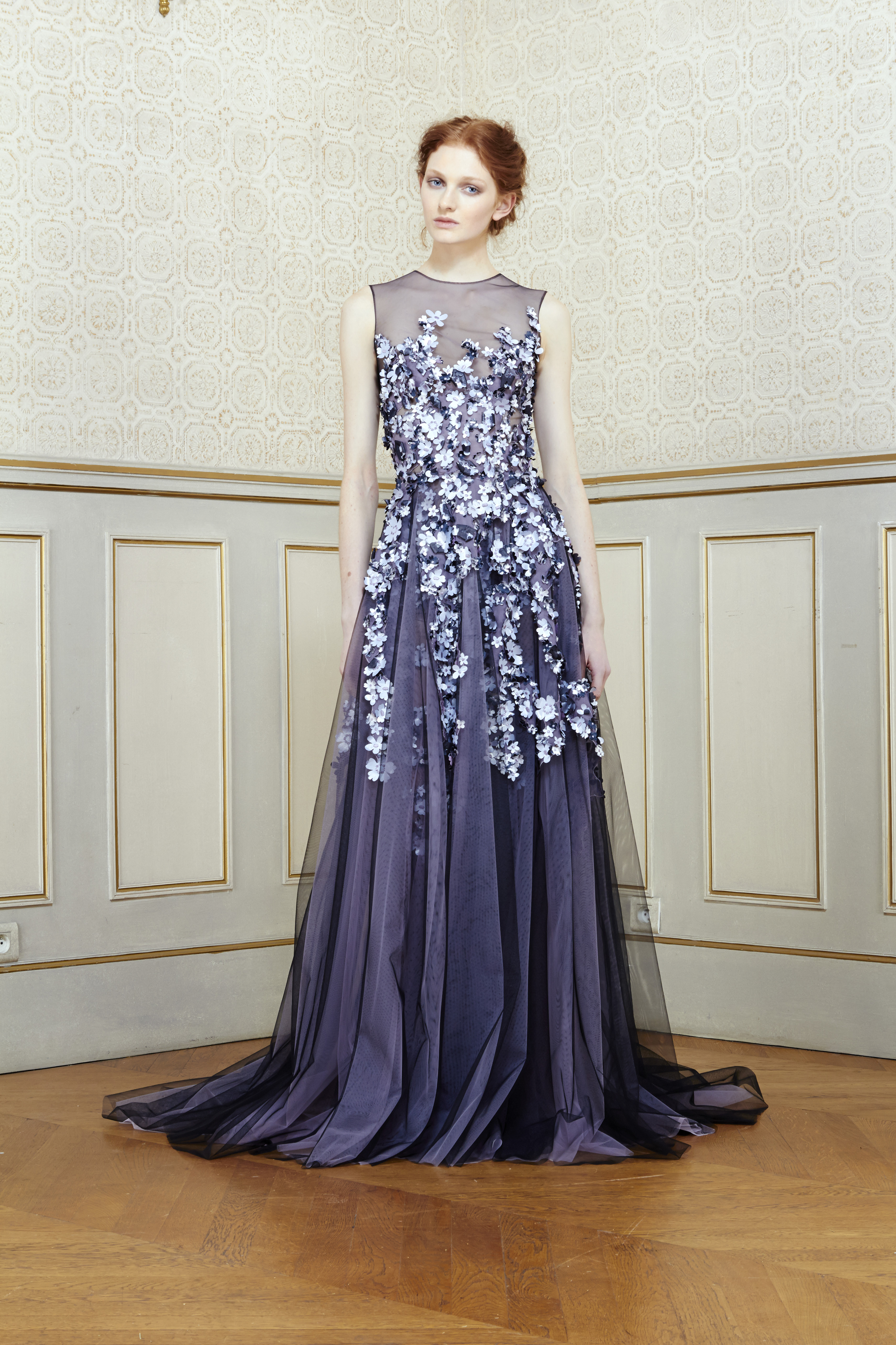 In an intimate atmosphere, Al Ali unveiled his latest creations to an exclusive audience of the fashion elite. His marvelous collection, inspired by John Everett Millais’ painting of Shakespeare’s tragic heroine Ophelia, literally captivated the audience. A delicate balance of strength and fragility, Ophelia’s legacy depicts the illusion of the most vulnerable love. Inspired by Millais’ metamorphosis of tragedy into beauty, Al Ali delivers a new, more complex vision of the ordeal of broken love. A predominantly natural setting, sublimated by unusual floral motifs, symbolizes the profound emotion that love and romance transcend in madness and death.
