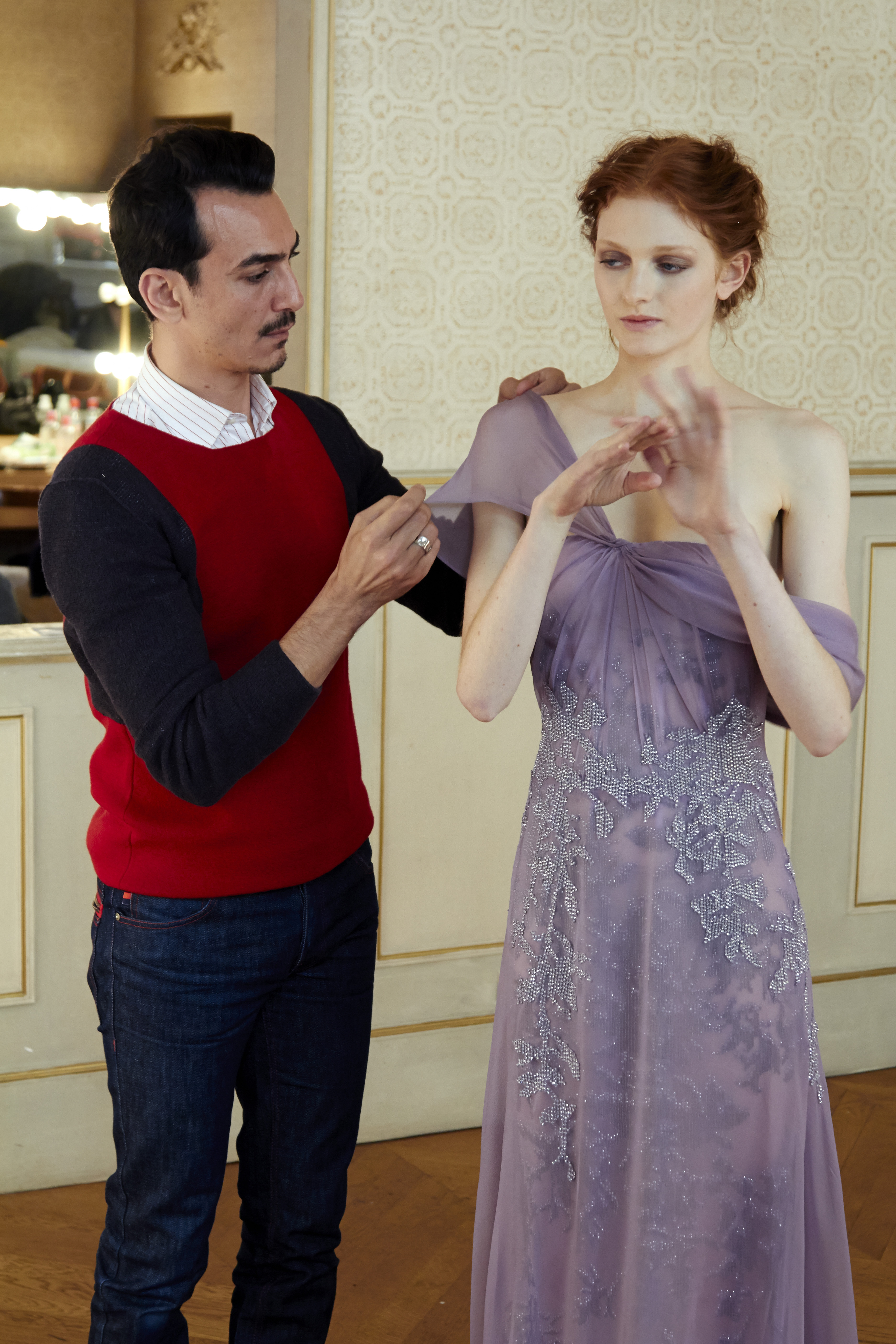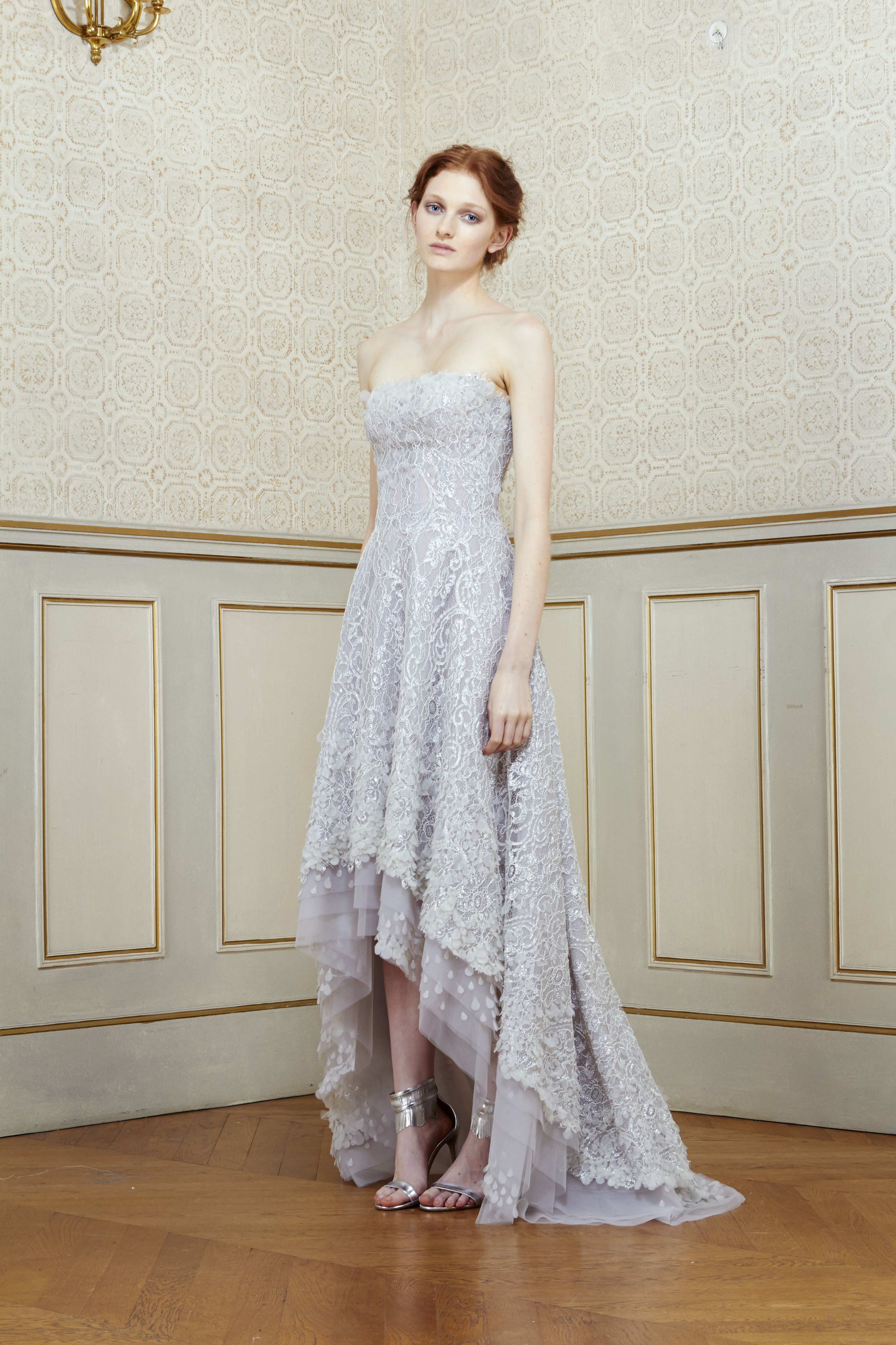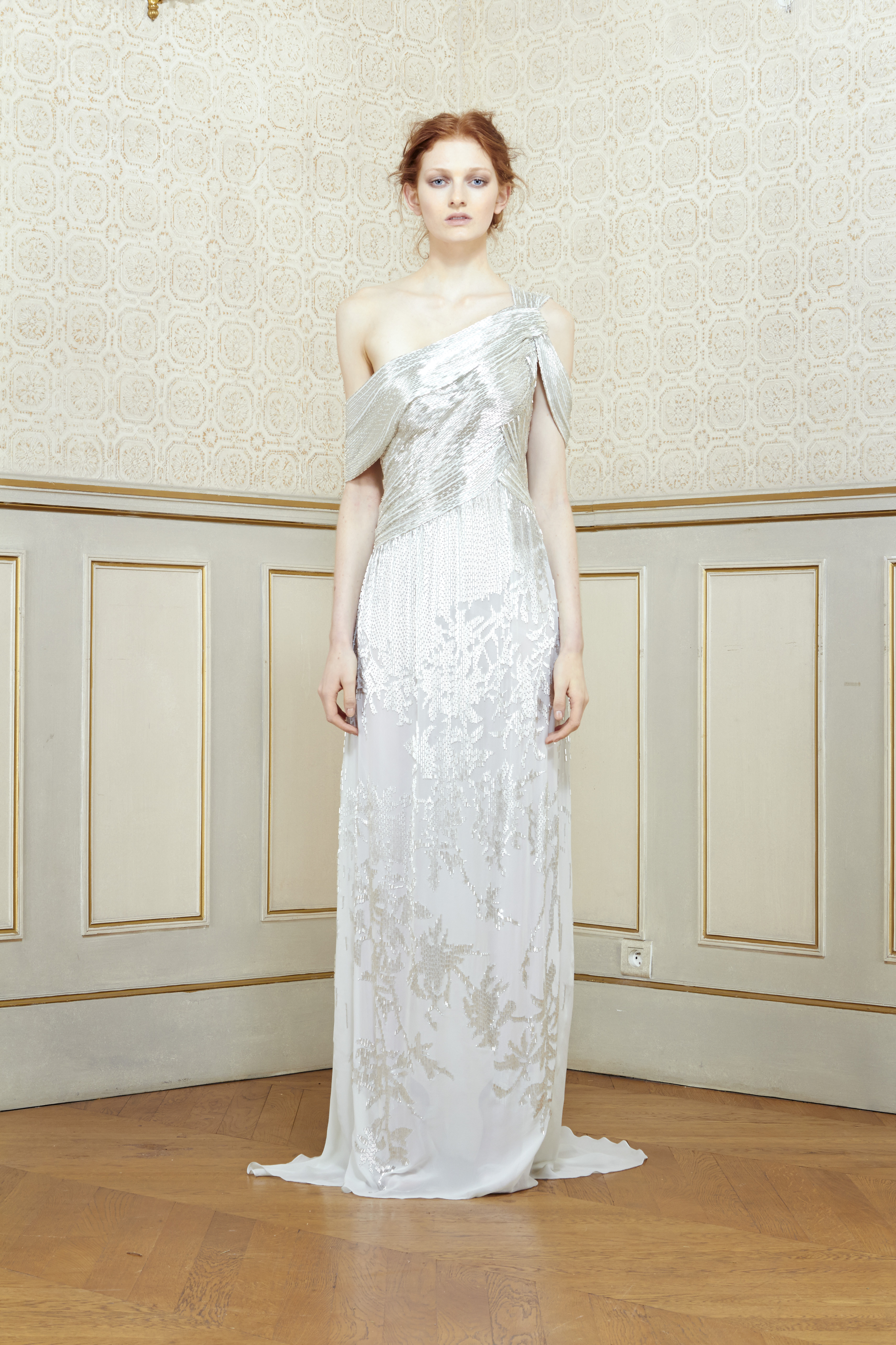 In an intimate atmosphere, Al Ali unveiled his latest creations to an exclusive audience of the fashion elite. His marvelous collection, inspired by John Everett Millais’ painting of Shakespeare’s tragic heroine Ophelia, literally captivated the audience. A delicate balance of strength and fragility, Ophelia’s legacy depicts the illusion of the most vulnerable love. Inspired by Millais’ metamorphosis of tragedy into beauty, Al Ali delivers a new, more complex vision of the ordeal of broken love. A predominantly natural setting, sublimated by unusual floral motifs, symbolizes the profound emotion that love and romance transcend in madness and death.