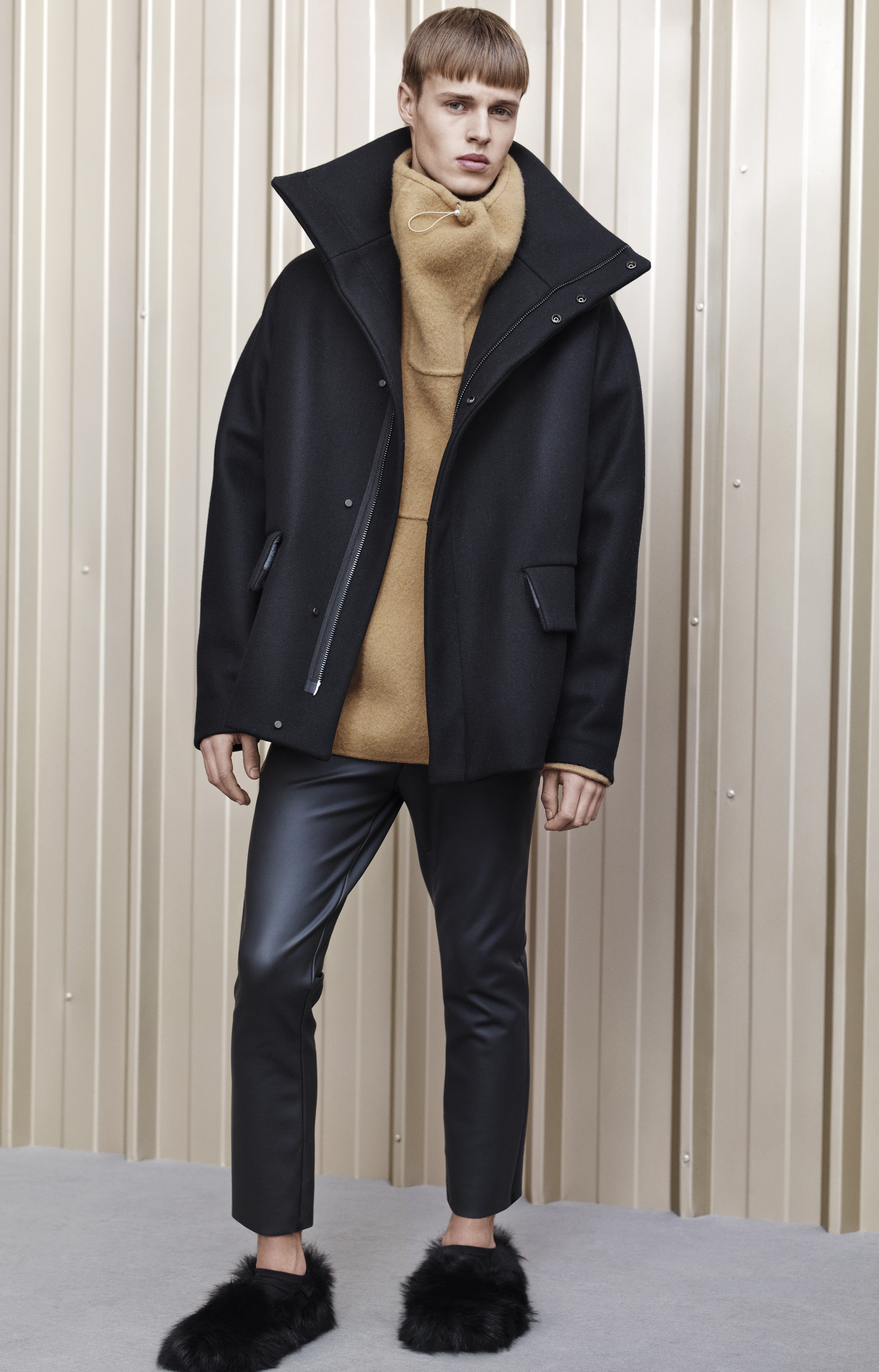 “The sea in winter is the central theme of this season. The collection is an encounter between sportswear and classic tailoring, for a hi-tech look combined with noble materials and a touch of feminine sophistication. We reworked outwear using technical fabrics and proposed a rounded silhouette with exaggerated details. Shiny satin and neoprene blend with flannels and lined wools. The color palette ranges from beige to khaki, gray to white, with a touch of black and the iconic powder pink, signature of Acne Studios” Jonny Johansson Creative Director