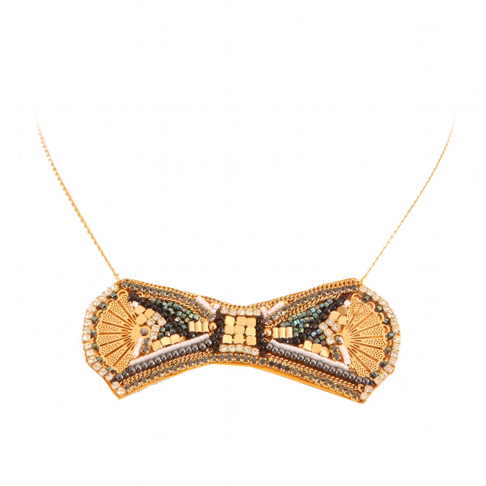 The motifs, sometimes inspired by folklore or art deco, are made mainly from hand-woven Japanese miyuki seed beads woven directly onto chains. The jewels are made in Paris, in a charming atelier in the heart of the Marais, where you’ll find the fresh, colorful and elegant world of Caroline Najman jewelry.