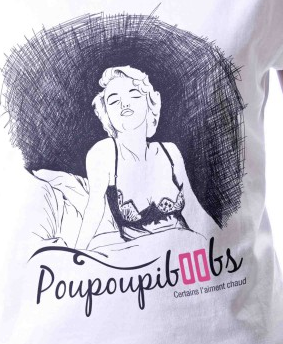 “Et mes boobs, tu les aimes mes boobs?” parody of BB’s famous line from Le Mépris.Poupoubiboobs T-shirt