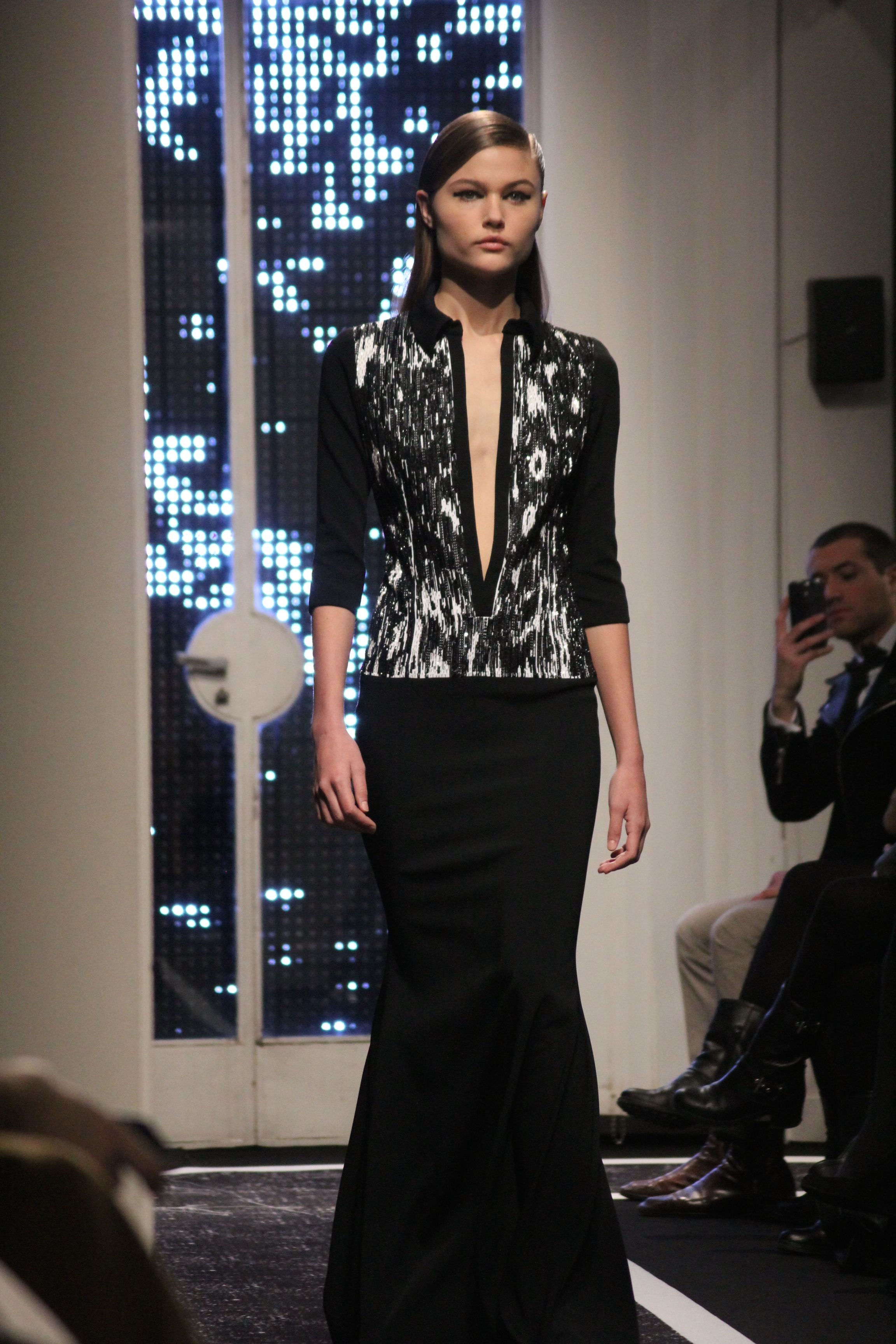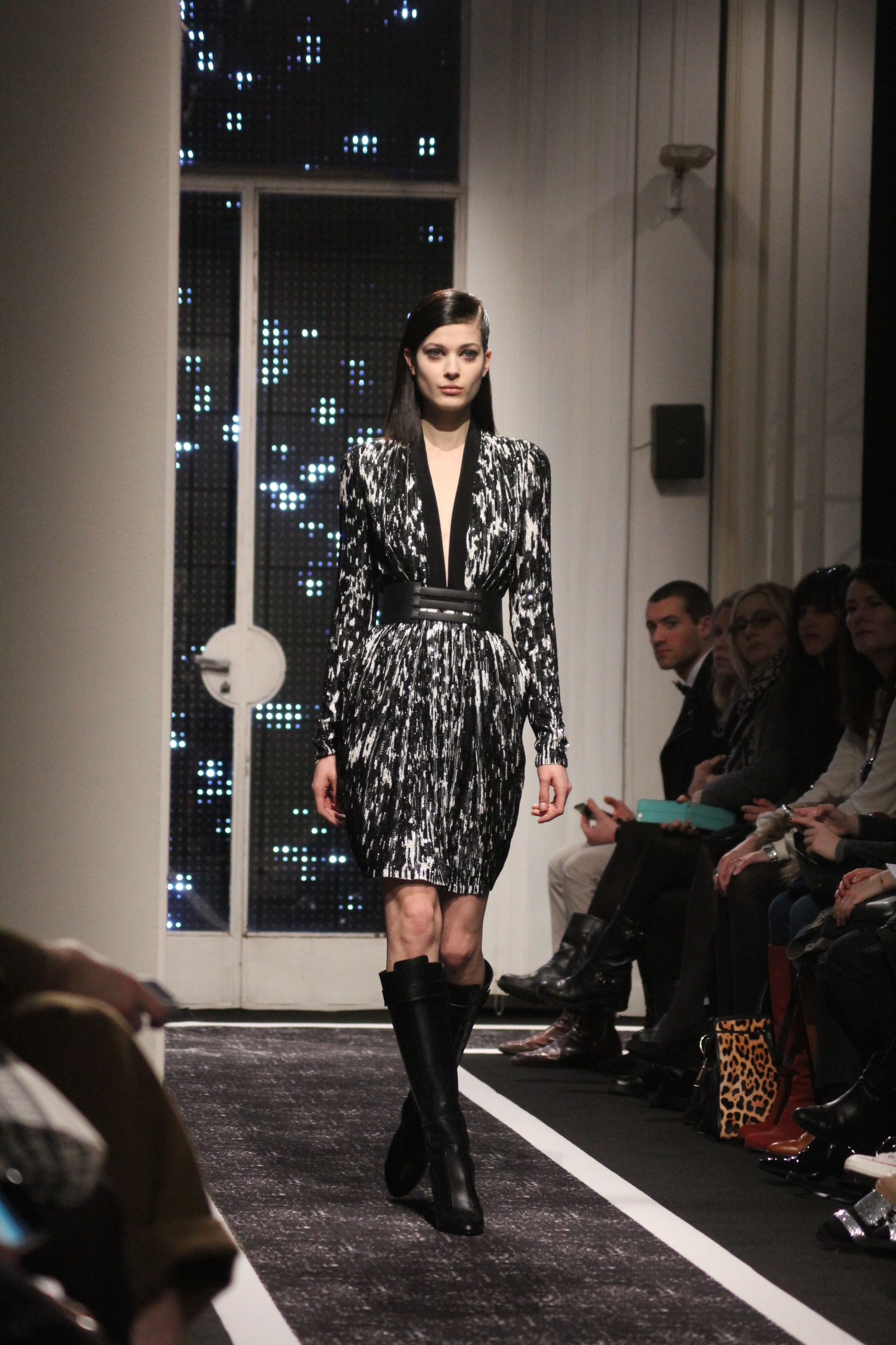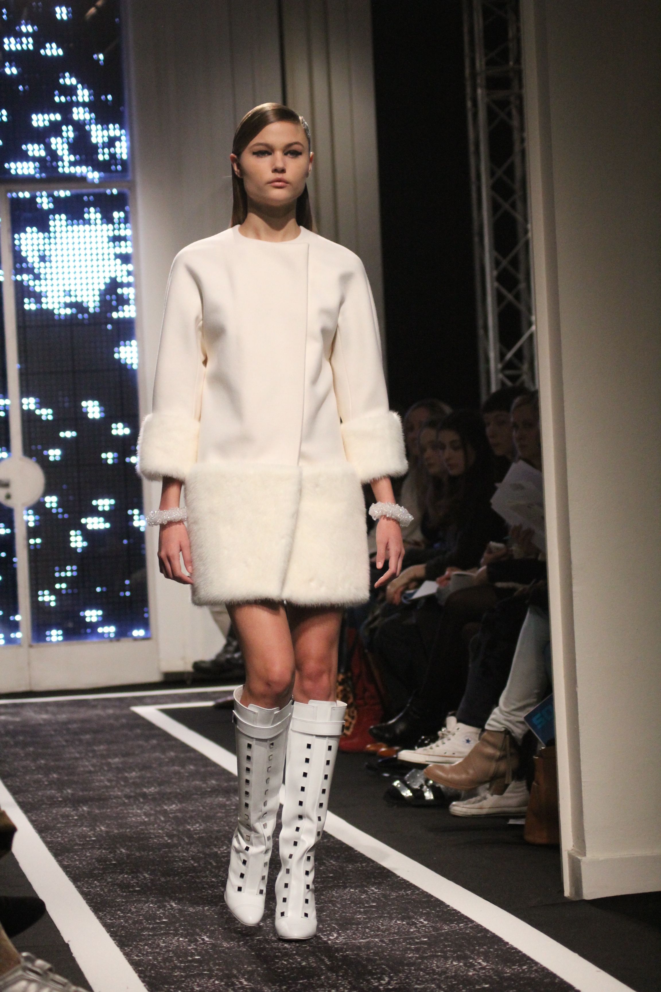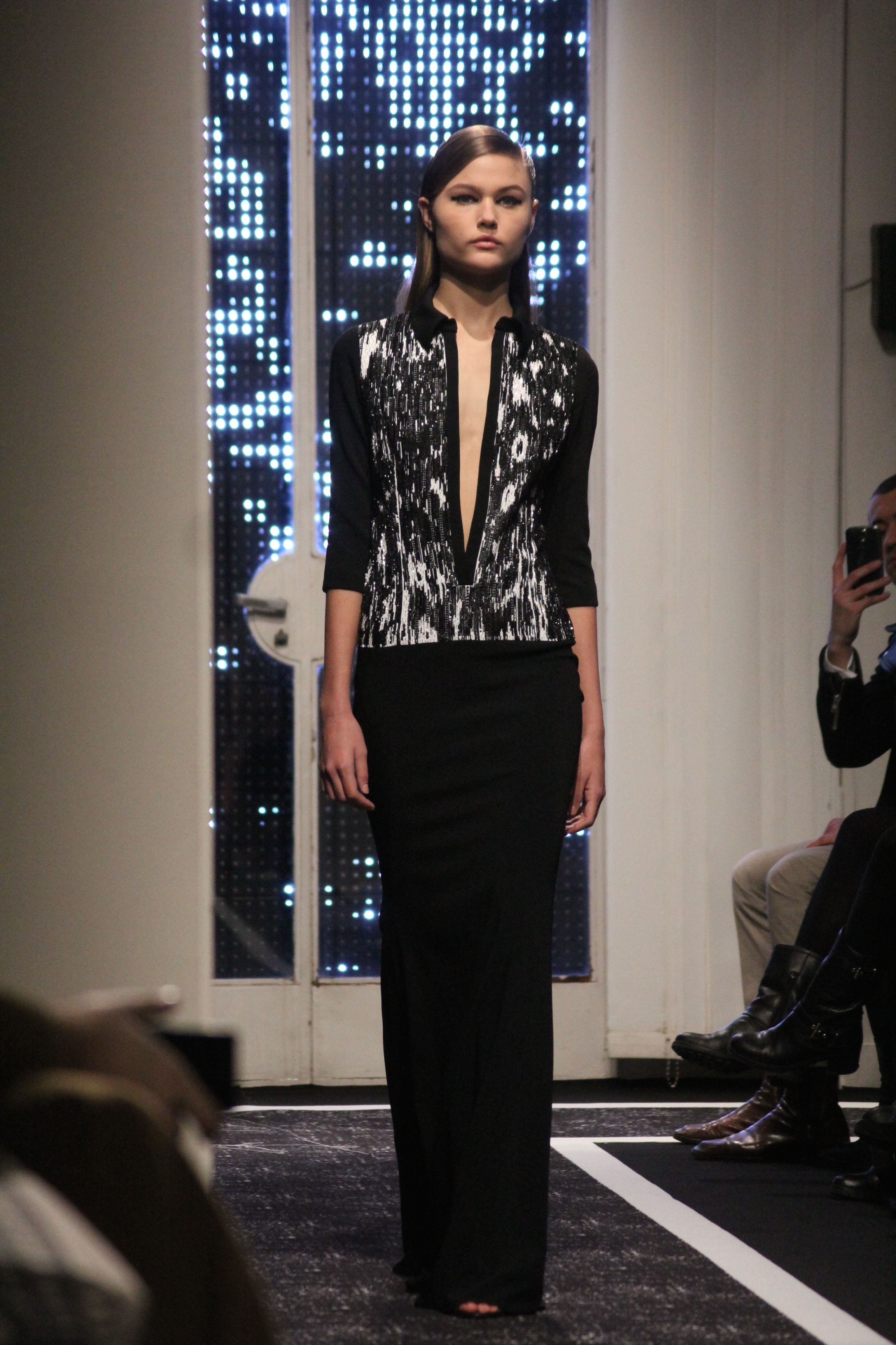 Cutting genius Maxime Simoens presents a collection full of architecture and structure. A perfect blend of fur, embroidery and sheen, this “spatial” collection is an ode to finesse. Sometimes white, sometimes black, this collection speaks to Woman with a capital F. A weightless journey in the best of taste.