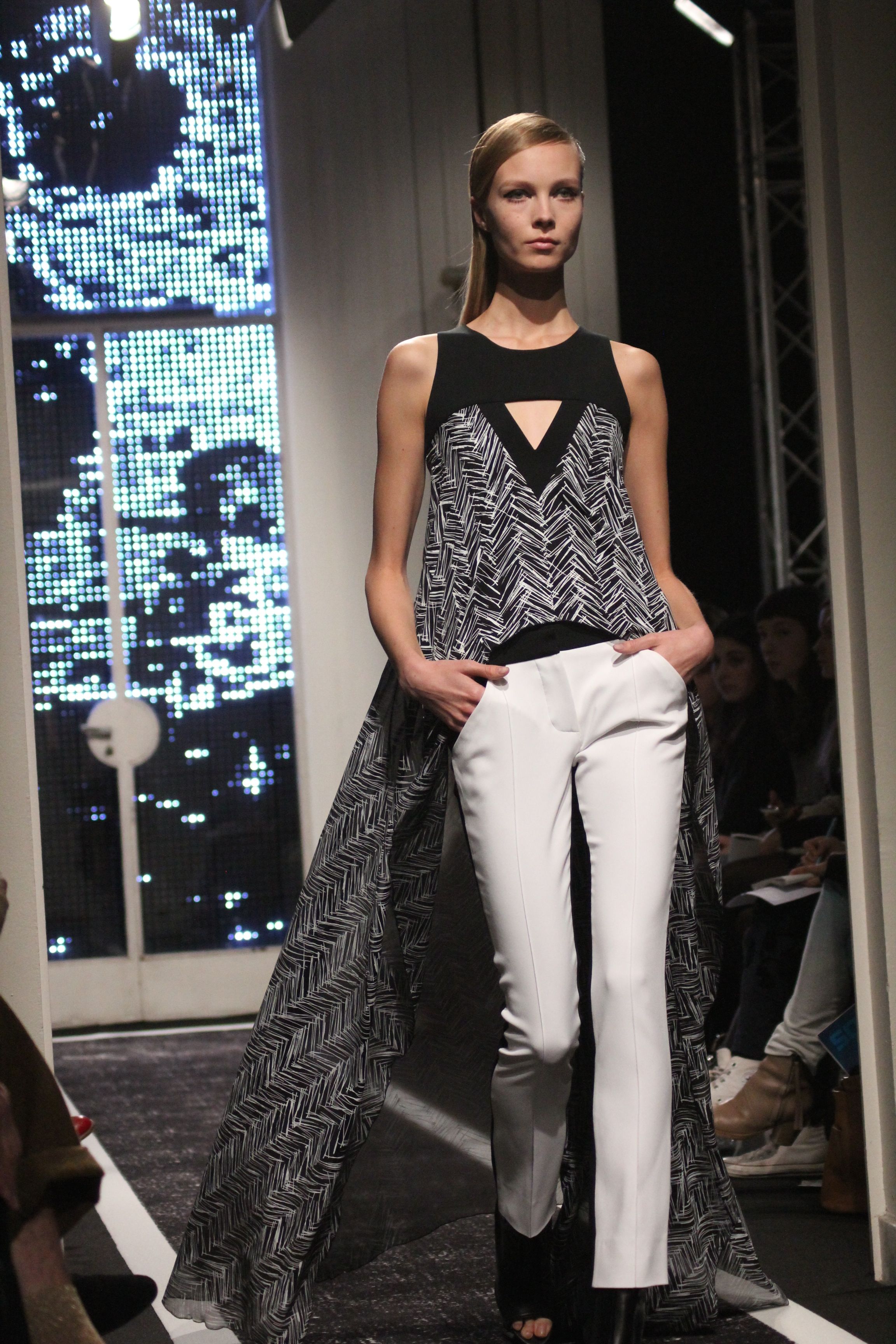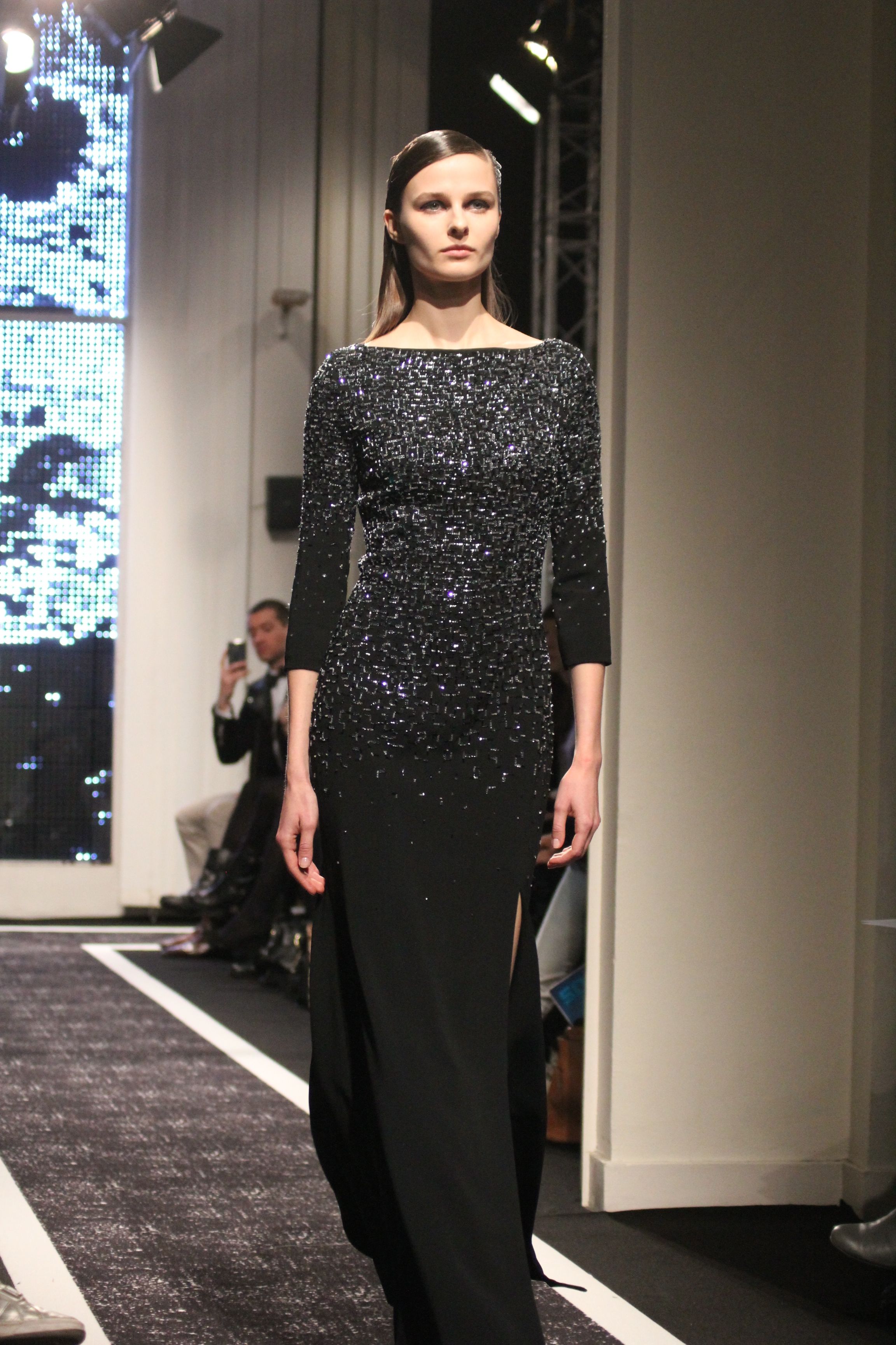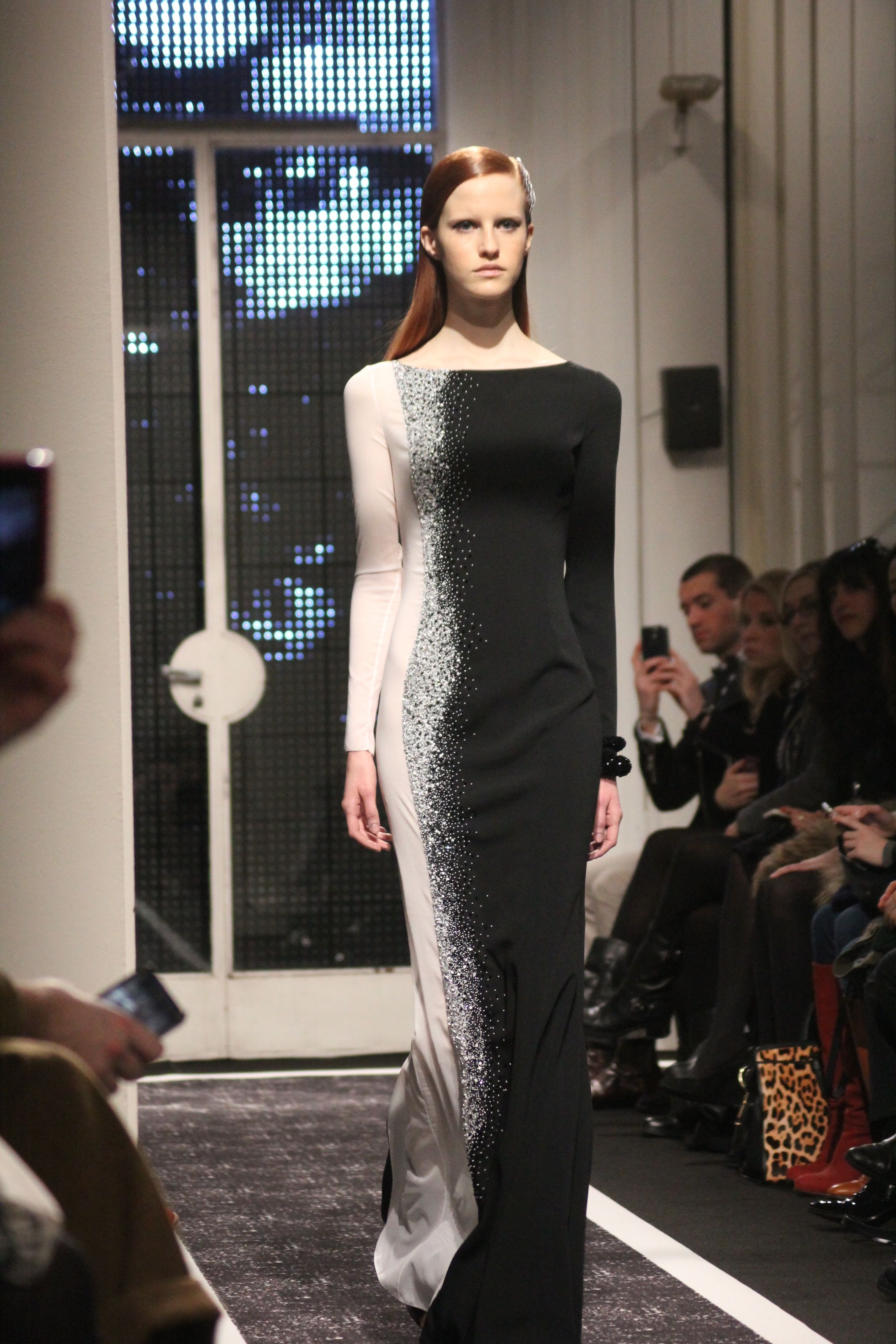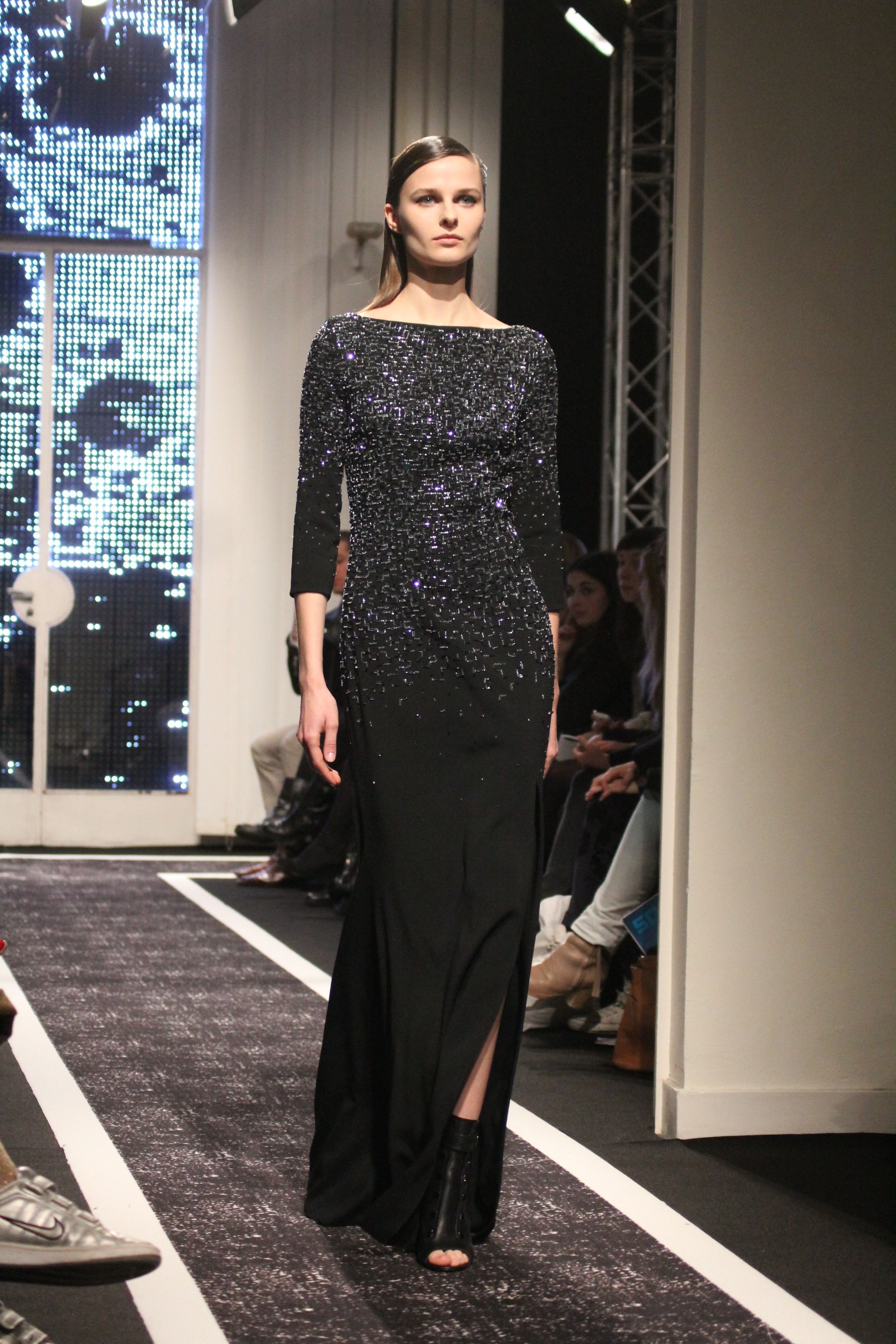 Cutting genius Maxime Simoens presents a collection full of architecture and structure. A perfect blend of fur, embroidery and sheen, this “spatial” collection is an ode to finesse. Sometimes white, sometimes black, this collection speaks to Woman with a capital F. A weightless journey in the best of taste.