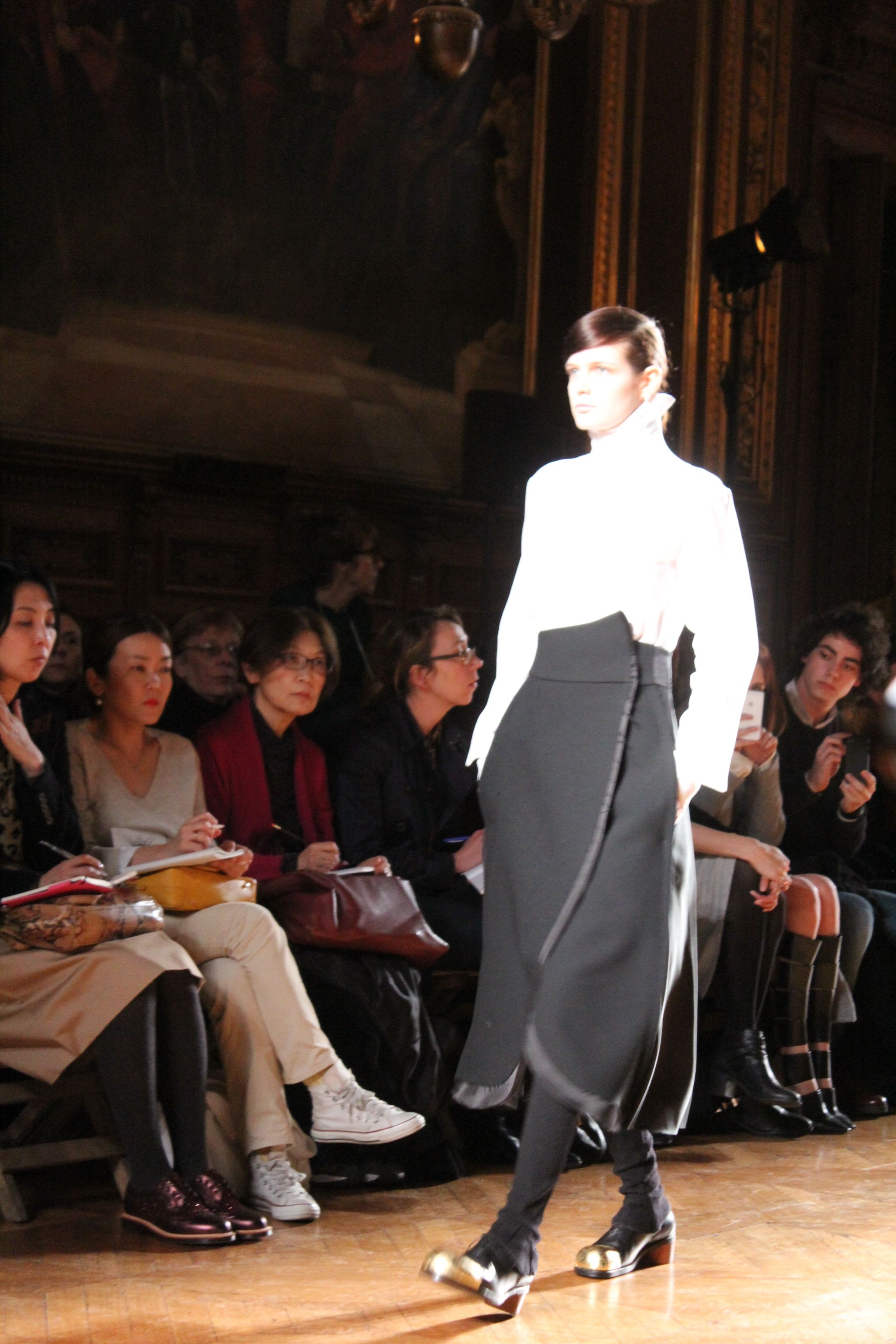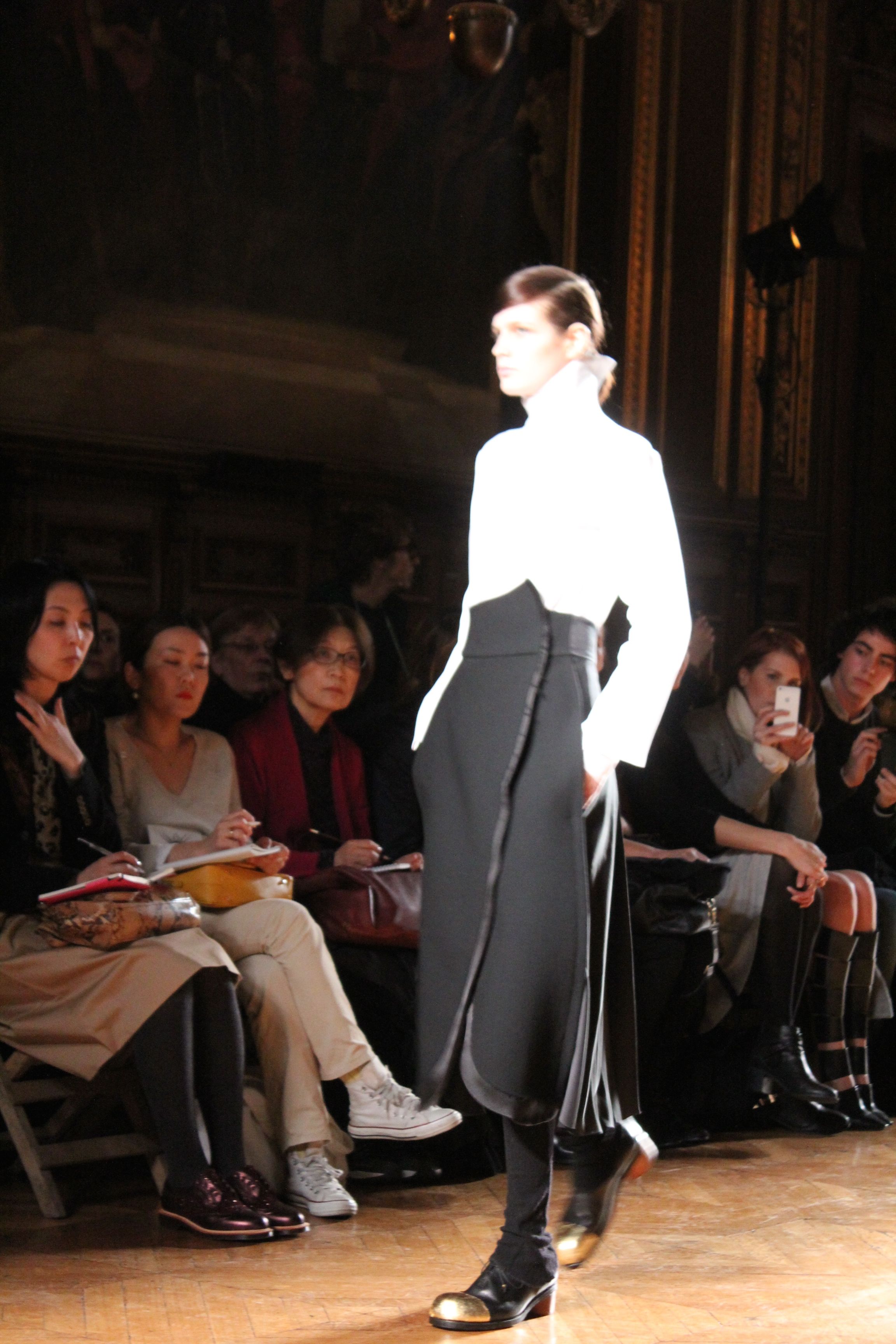 The Aganovich fashion show took place in the magnificent setting of La Sorbonne. An Autumn Winter 2014-2015 collection with monastic influences, dark colors, precise, structured silhouettes and androgynous looks. Entitled “Magician”, the collection transported us to another universe, as it commands such respect.
