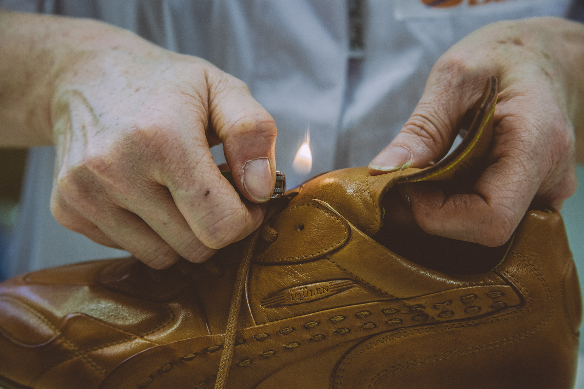 Craftsmanship is at the heart of this partnership. Puma and Alexander McQueen sublimate the pre-industrial era and remain intimately convinced that only handmade craftsmanship allows access to a productʼs ultimate quality. The shoe resulting from this partnership deftly hijacks classic proportions and details, powerfully bringing out Alexander McQueenʼs meticulous signature. Creative flights of fancy like the oversized tongue, chunky formstrip stitching and dense foam metamorphose a performance product into a supremely refined and desirable object.