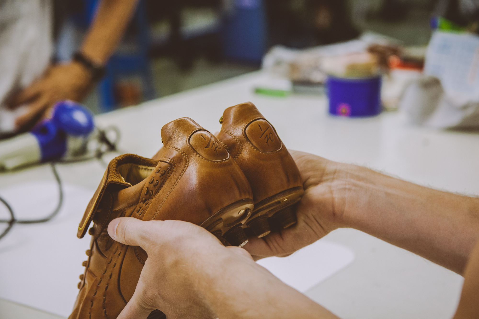 The second model is executed in supple, hand-polished Italian leather with a beautiful brown color. Each of the 70 pairs claims a traditional high-end spirit that evokes the glorious past of soccer and pays homage to the expertise and technique behind this manufacture.