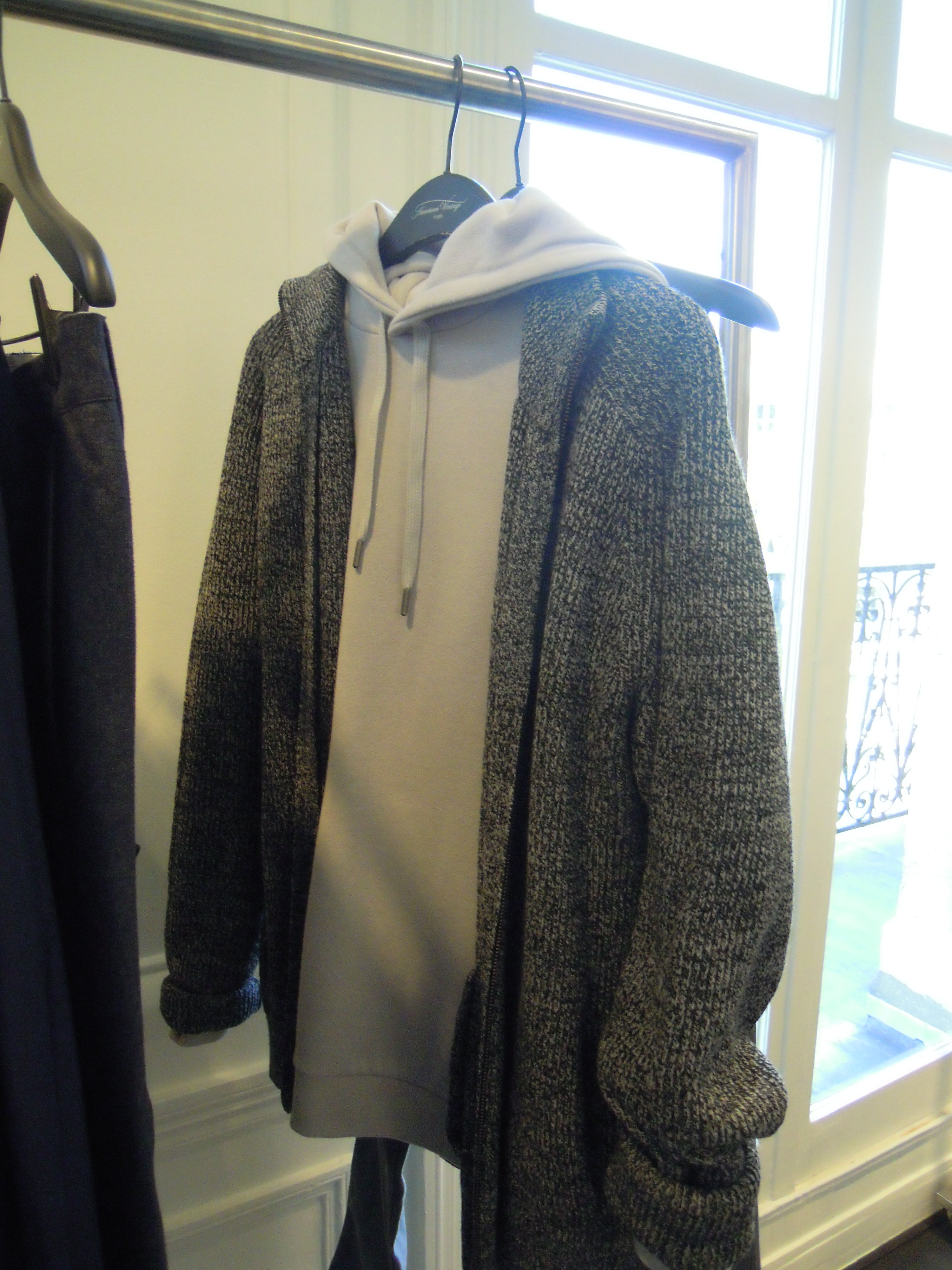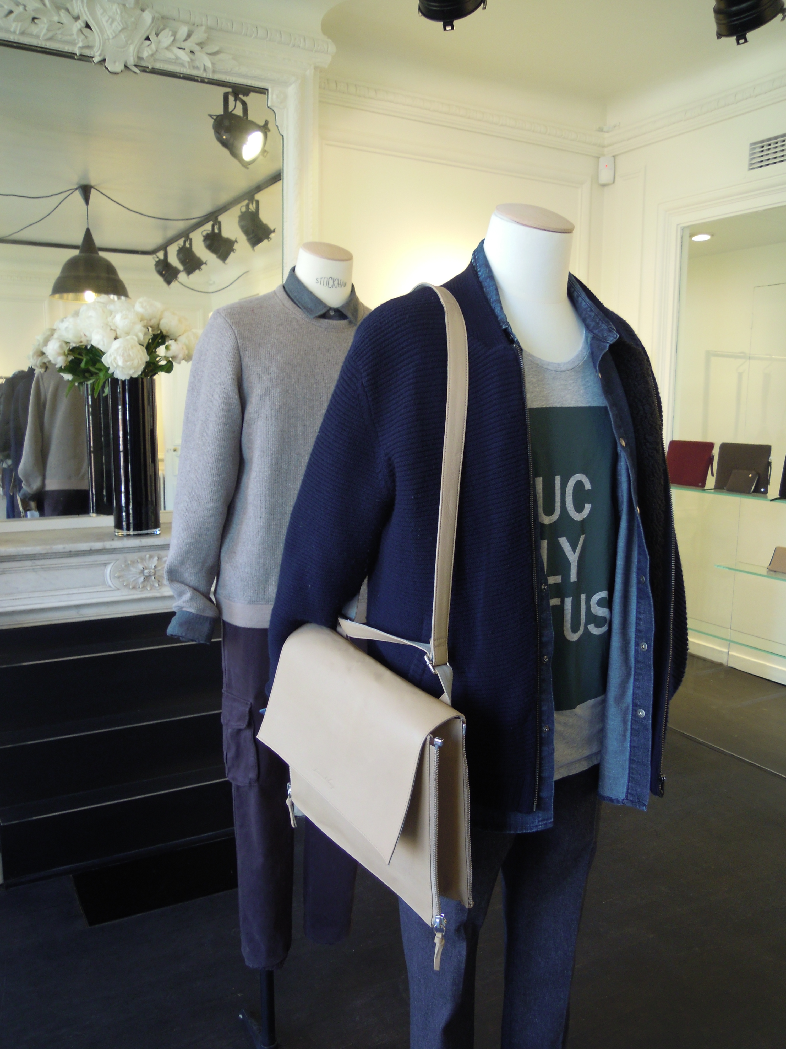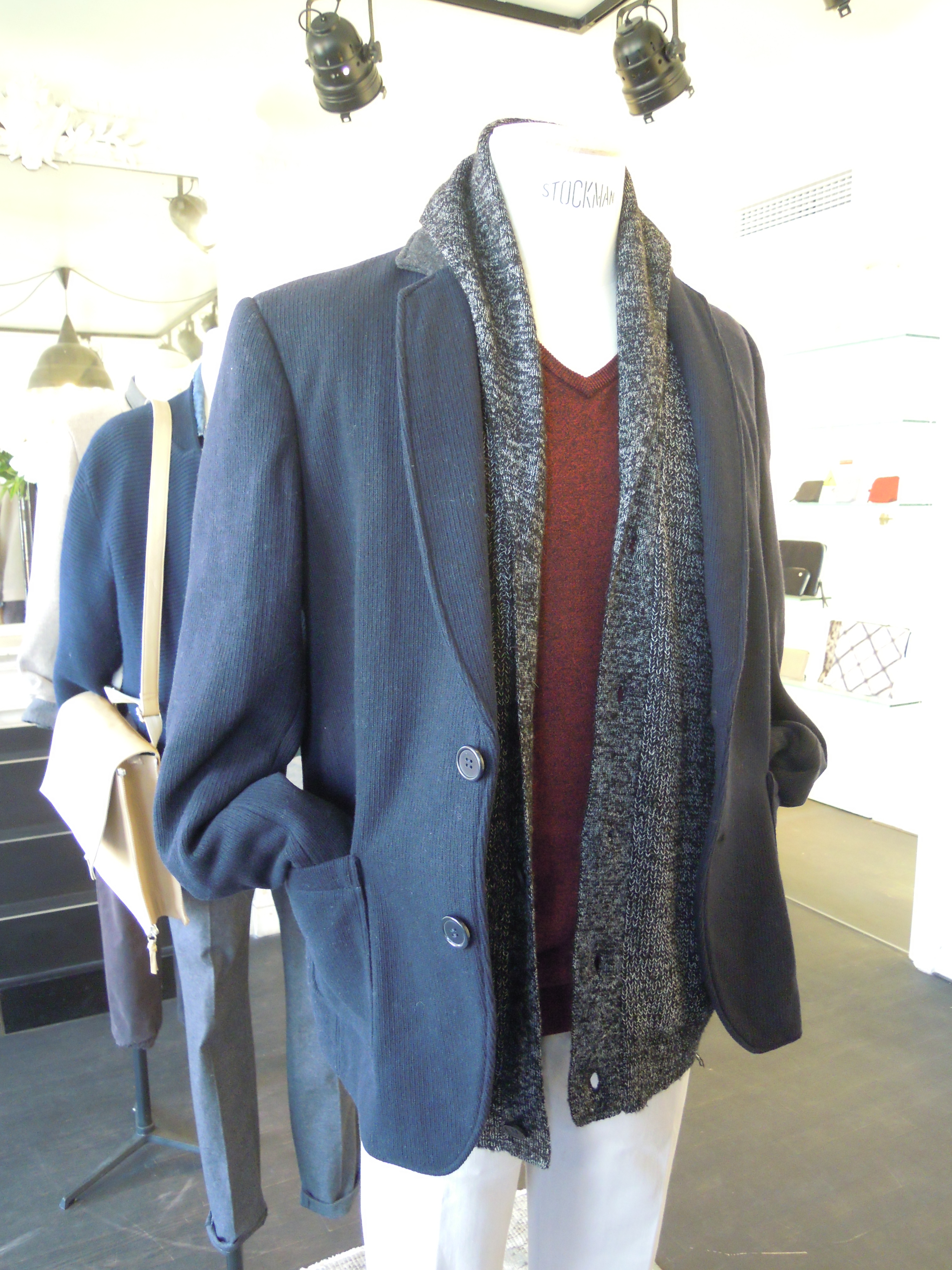 At l’Homme, we find the same mottled gray, made from a very thick fabric that’s very soft to the touch. We appreciate the soft yet structured jackets, the play of knits and the casual chic they offer. The main colors are gray and navy blue, combined with forest green and red!