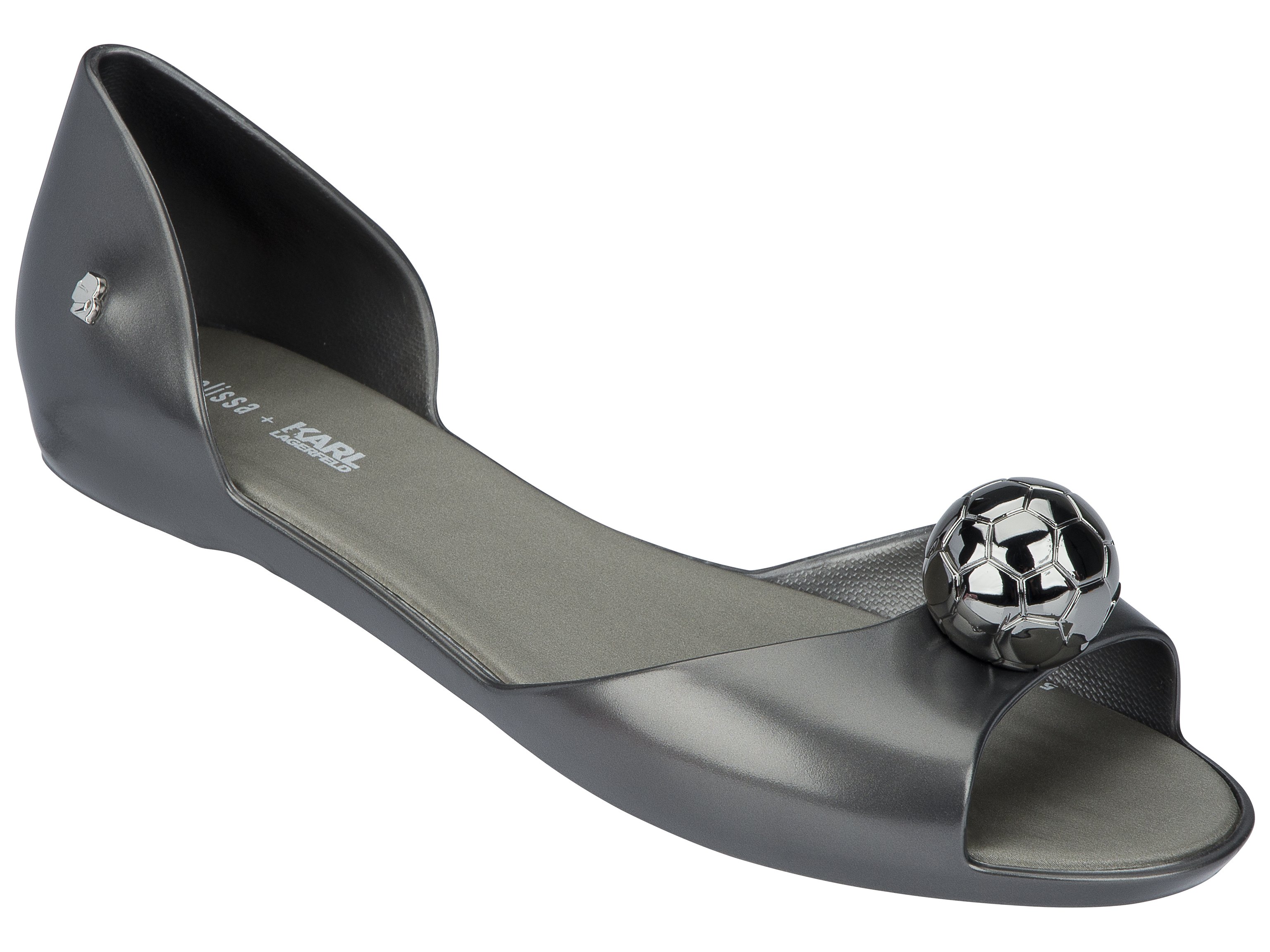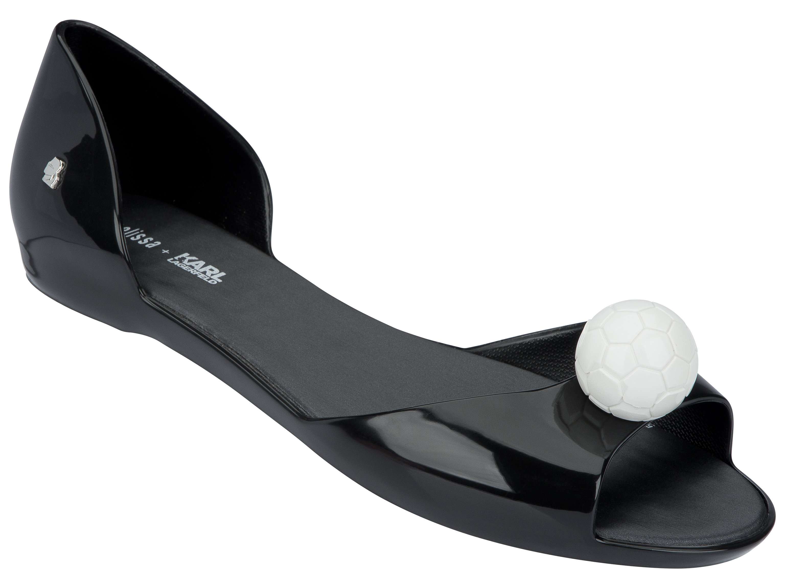 For a new collaboration with the Melissa brand, designer Karl Lagerfeld has created a model of sandals on which he has affixed a magnificent