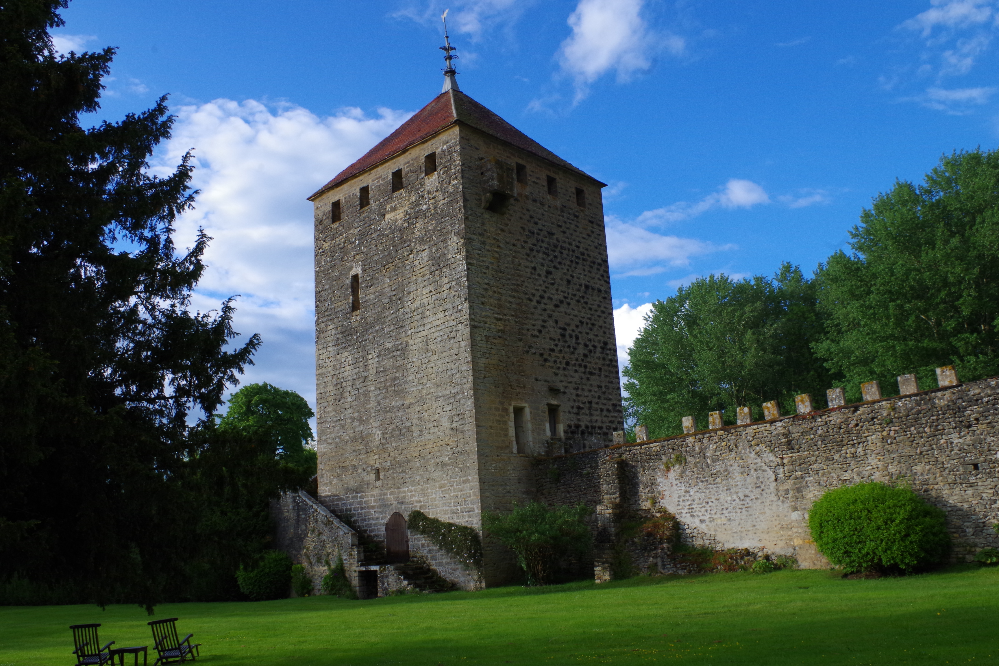 At the heart of Burgundy’s history, Vault de Lugny is a château whose first foundations date back to 1120. Over the centuries, the magnificent building took on the role of lord’s residence and defense of the duchy of Burgundy. The first lord of the manor was Jocelin d’Arcy, one of the Duke of Burgundy’s lords. His daughter Isabelle, wife of Guy XI de Toucy, Seigneur de Bazarne, inherited the château. The château subsequently passed into other hands. In 1478, under the disgrace of King Louis XI of France, who had become Duke of Burgundy following the death of Charles the Bold, the all-too-powerful Jaucourt family, then owners of the château, saw their residence dismantled and the walls razed to the ground. Only the keep and part of the surrounding walls were left standing. Later, during the Wars of Religion between Catholics and Protestants, the château became a gathering place for Huguenots, who regained a measure of freedom. The Jaucourt family rebuilt the estate, and remained on the Vault de Lugny lands for over four centuries. In 1773, the Chevalier Jacques-Anne de Jaucourt, the last of the Jaucourt family, sold the château to a succession of great names from Burgundy and beyond, before it was bought in 1967 by the current owners, Pascal and Élisabeth Bourzeix, who have a vision of the hotel as it is today, glorious and welcoming. Since 1971, the dungeon has been listed as a historic monument.