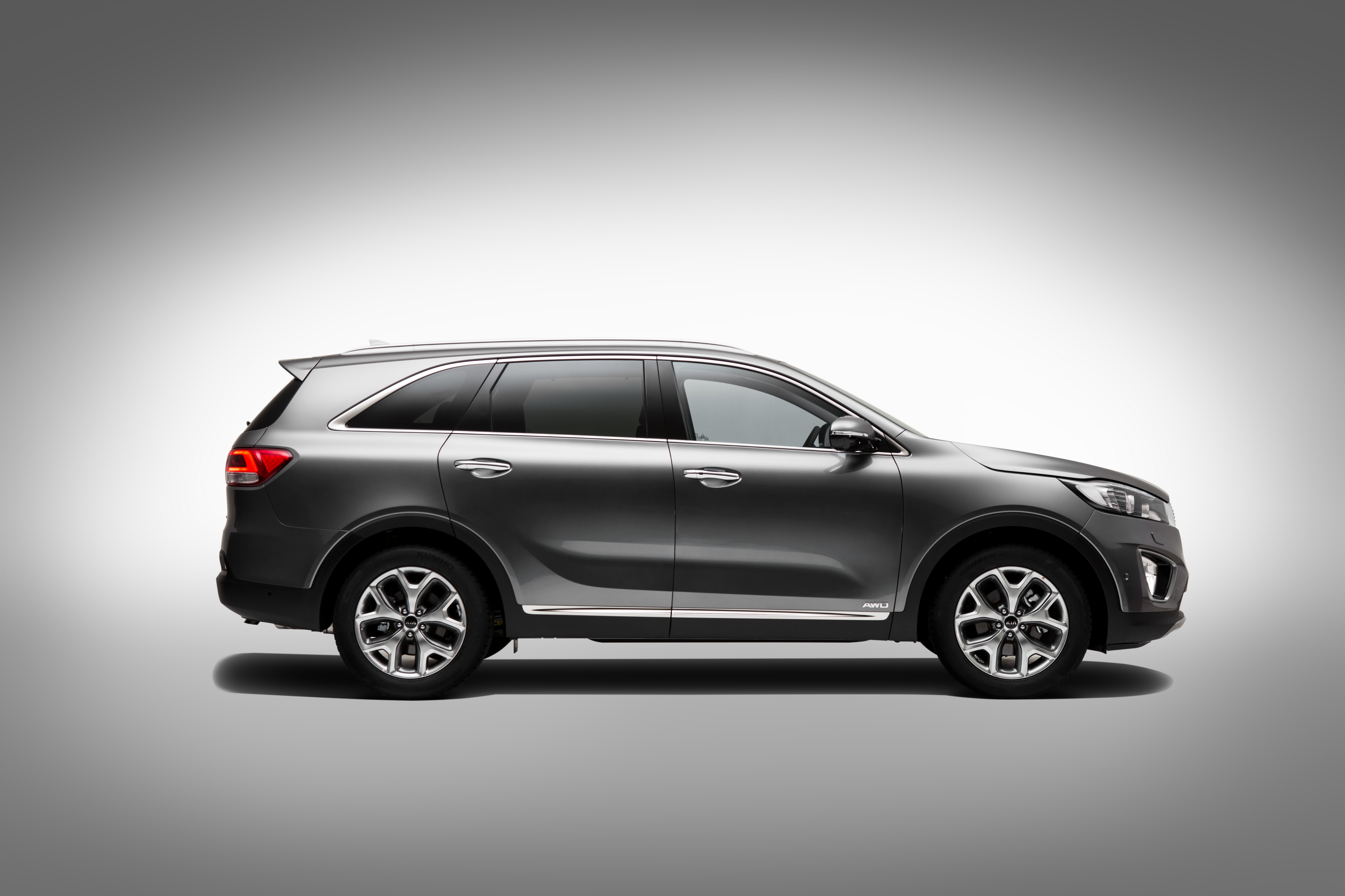 In profile, the new model retains the Kia Sorento’s emblematic elongated hood and characteristic wide D-pillar, although its lowered roofline, raised beltline and more stretched silhouette give it a more imposing, athletic appearance.