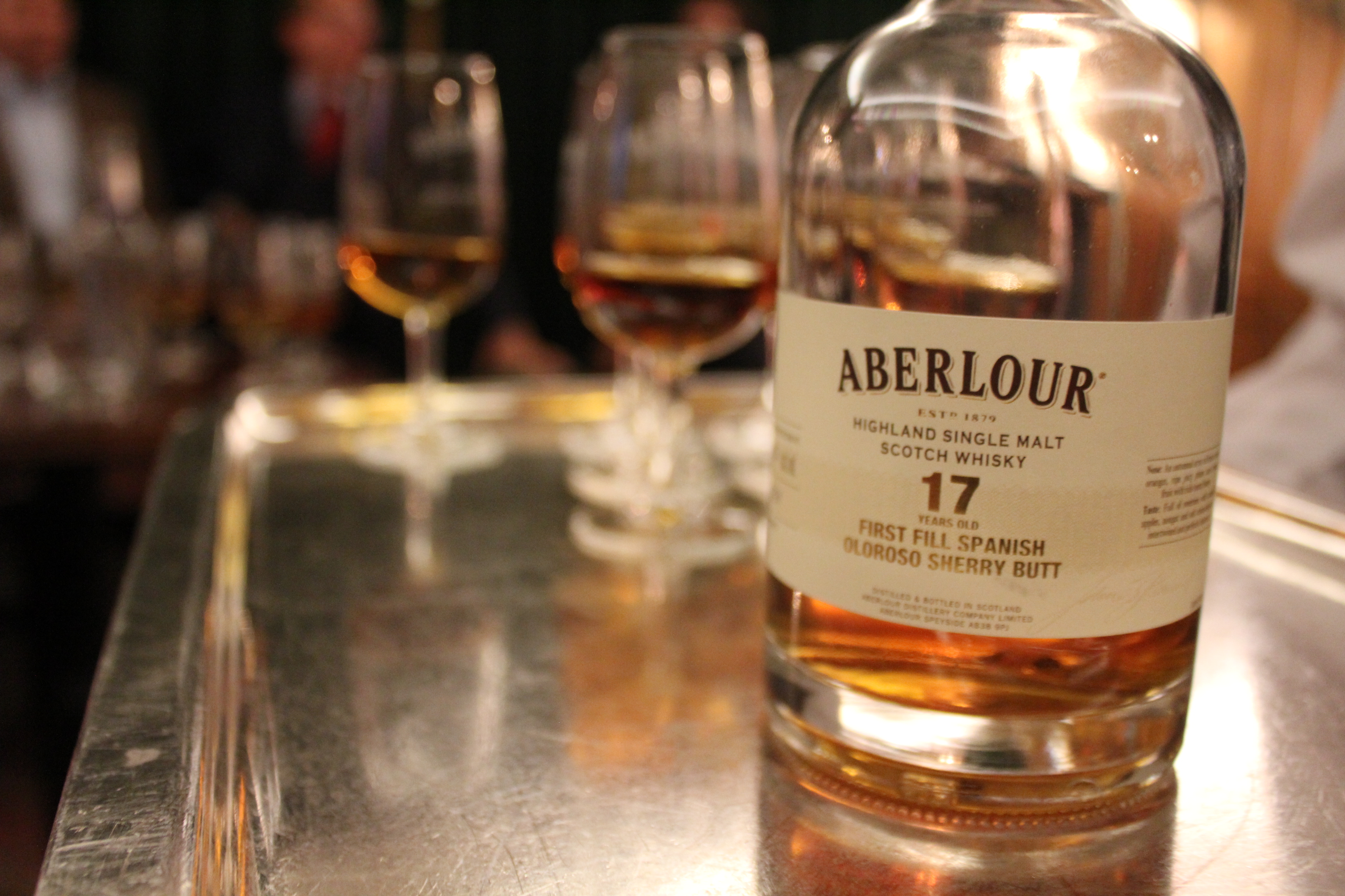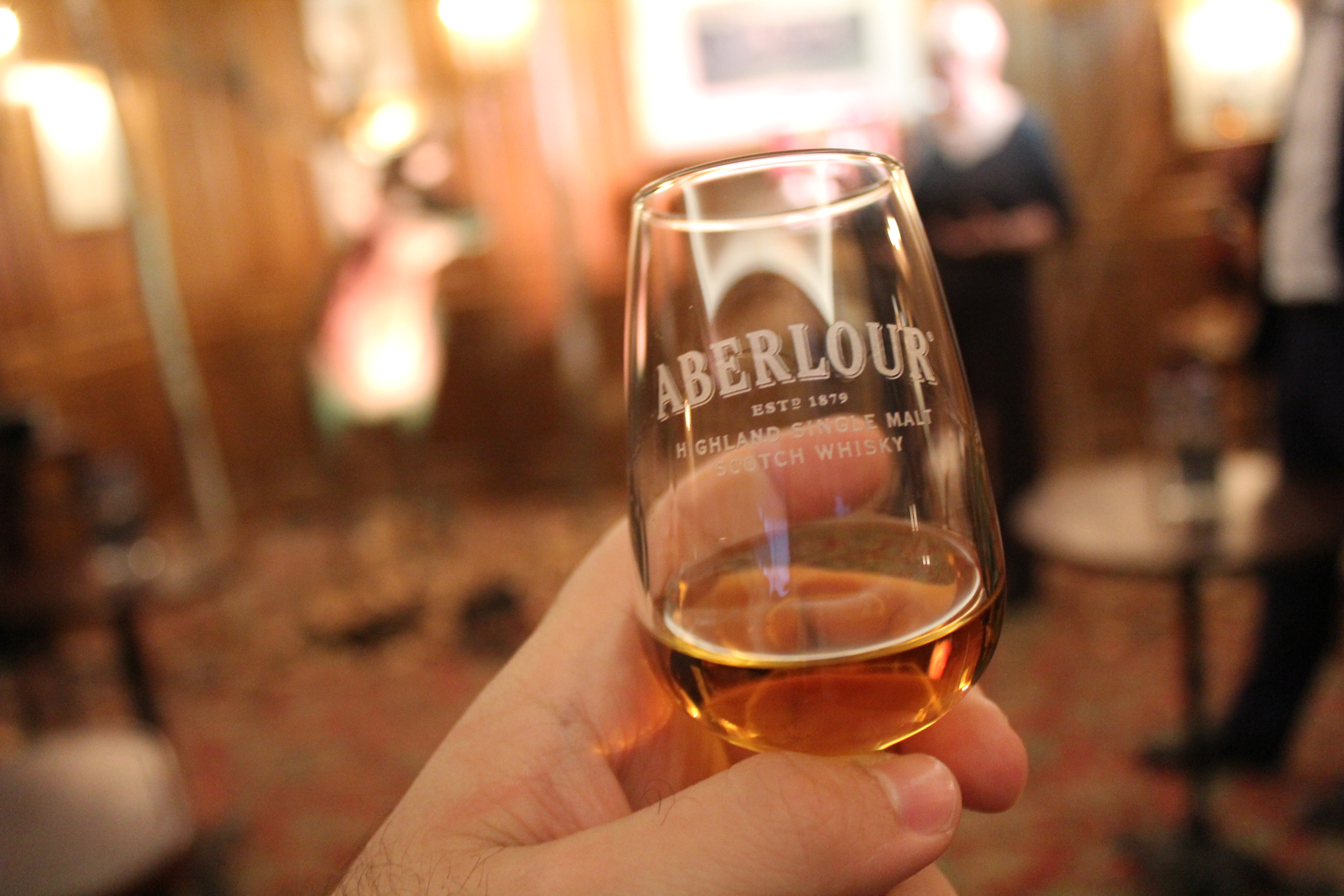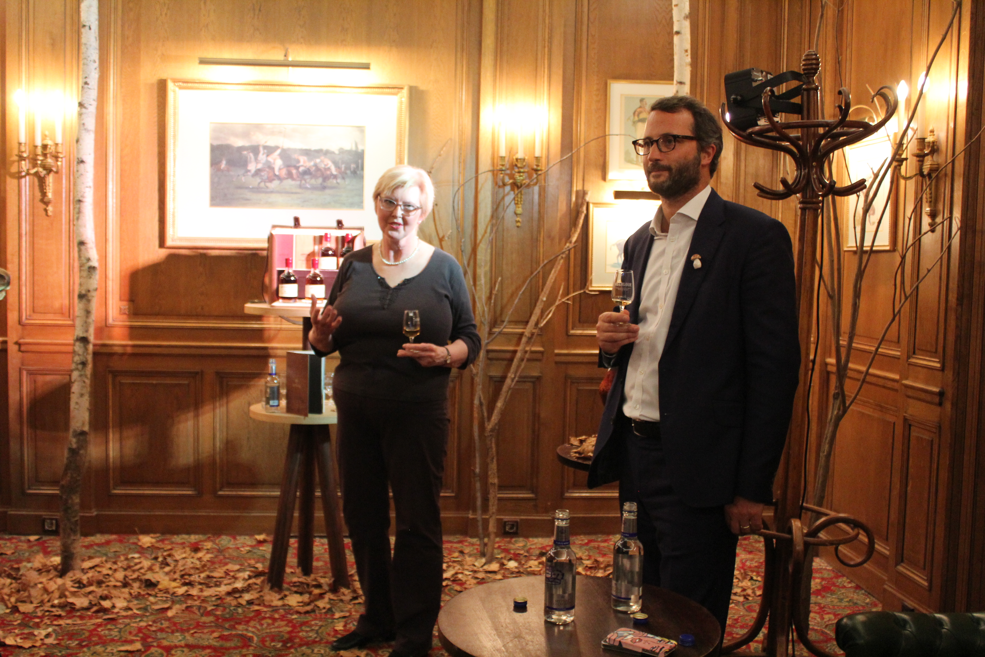 Once inside, we discovered a Polo Club redecorated for the occasion with an autumnal, woodsy theme. We were treated to a magnificent tasting of the house’s great whiskies, and discovered the Aberlour Wood Essence gift set.