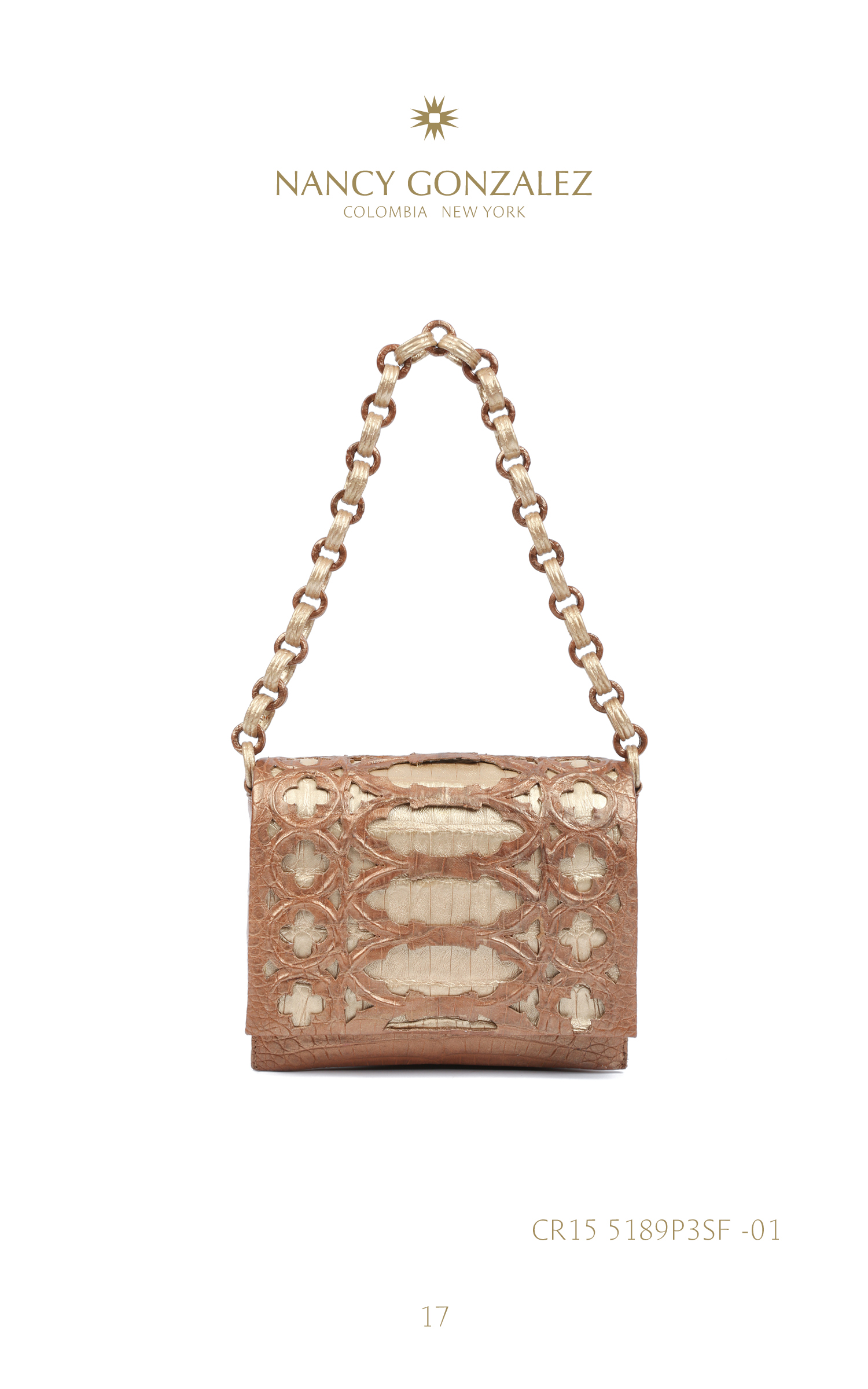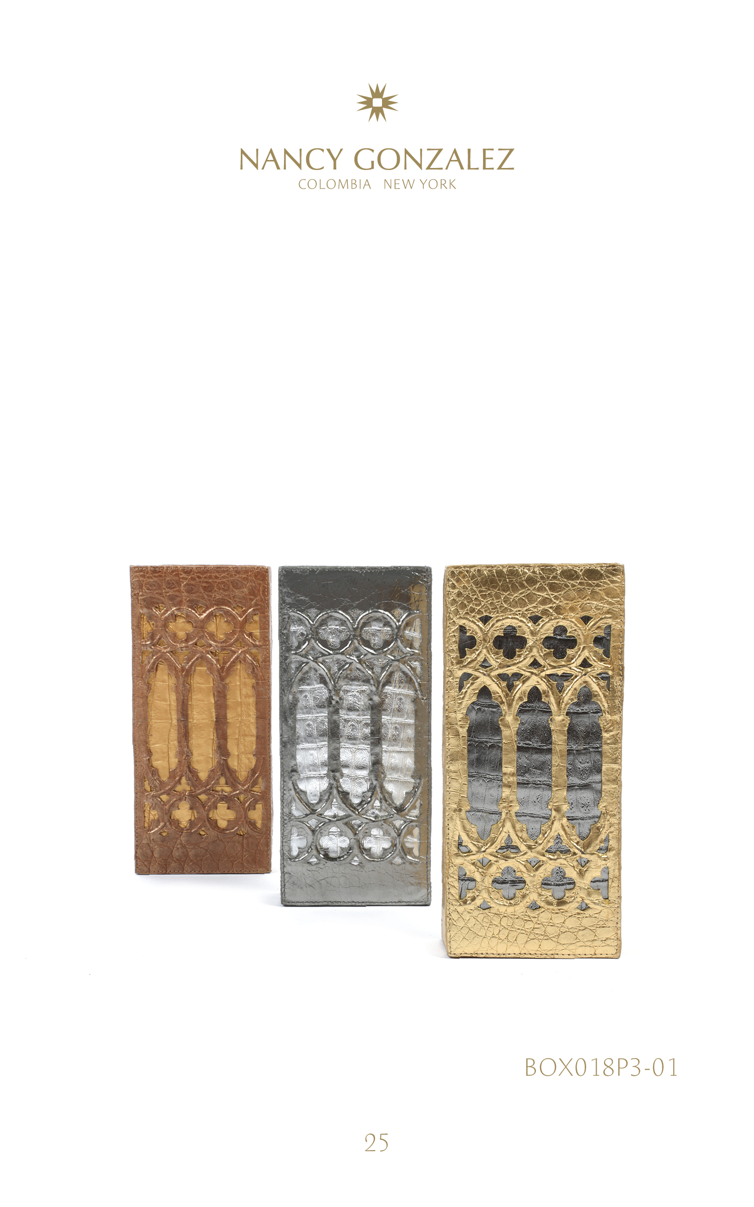 These 100% crocodile bags and clutches with their architectural allure pay homage to the city of Casanova. Warm, vivid colors add a summery touch, while patterns are worked to bring perspective and depth.
