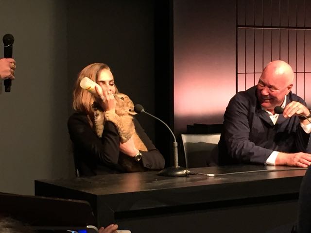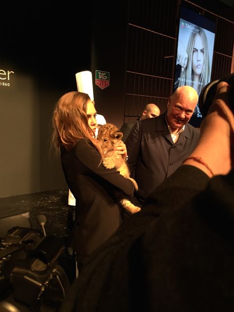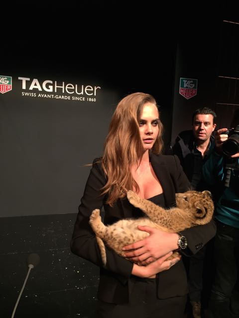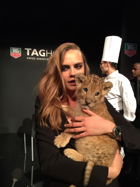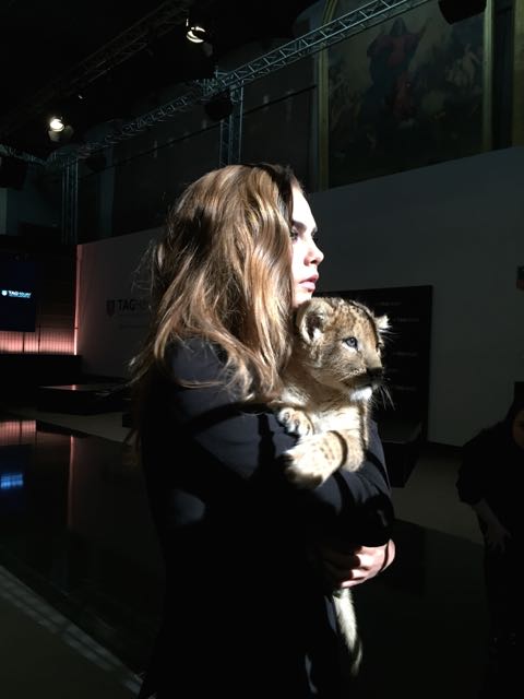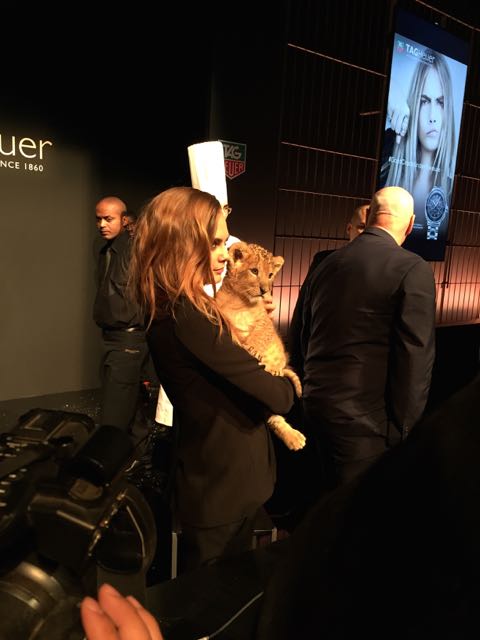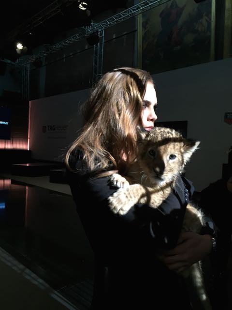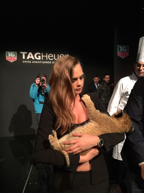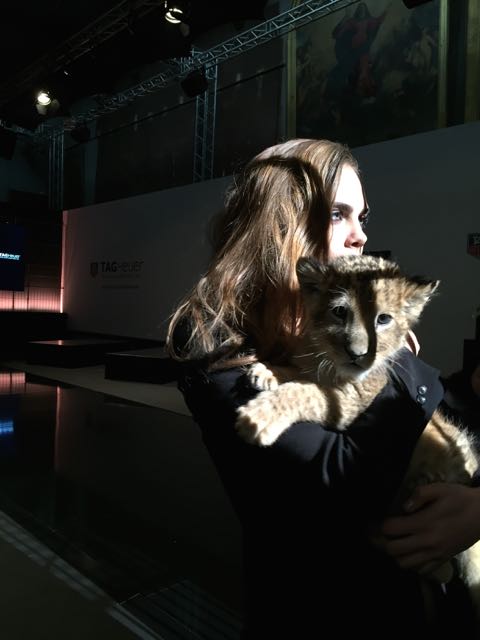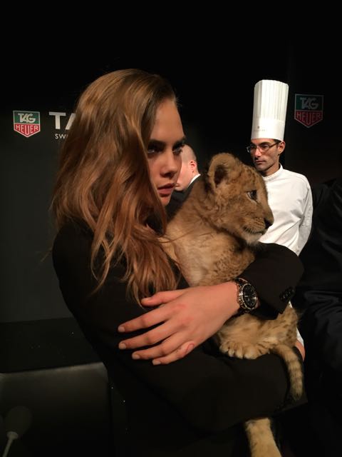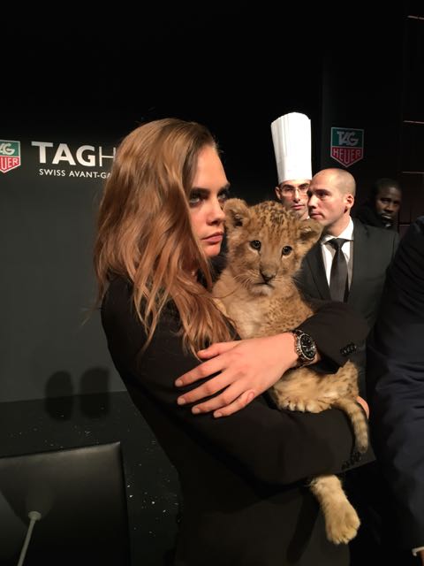 It was in the magnificent setting of the Salle Melpomène at the Ecole Des Beaux Arts de Paris that we were to meet for this unique event. Once inside, we were immediately put in the mood, as a huge cage protected the journalists from the capricious lions who were slow to appear for their circus act. Finally, visibly frightened by the crowd, they made way for another lioness and her cub, Cara Delevingne, who were clearly delighted to be playing with a baby fawn, and who lent themselves to the game of souvenir photos. This was followed by a memorable press conference, featuring a fawn baby sitting and a joke by Jean-Claude Biver, an unconventional figure in the world of watchmaking.