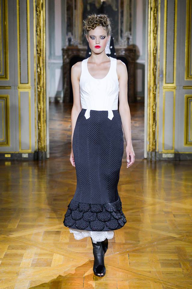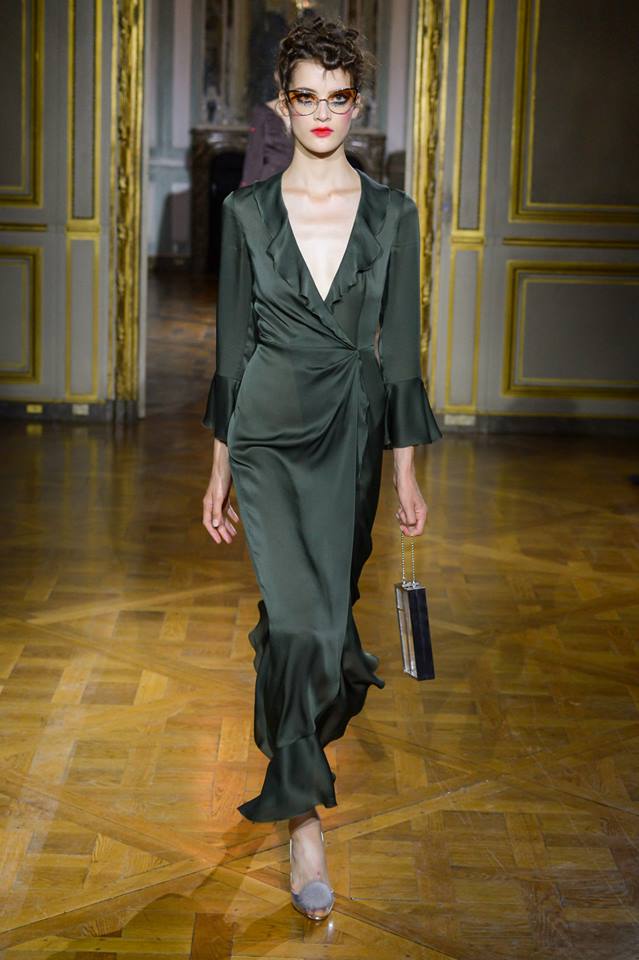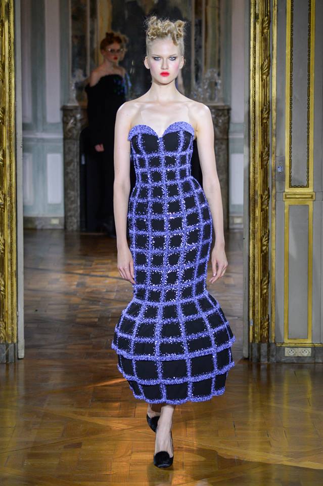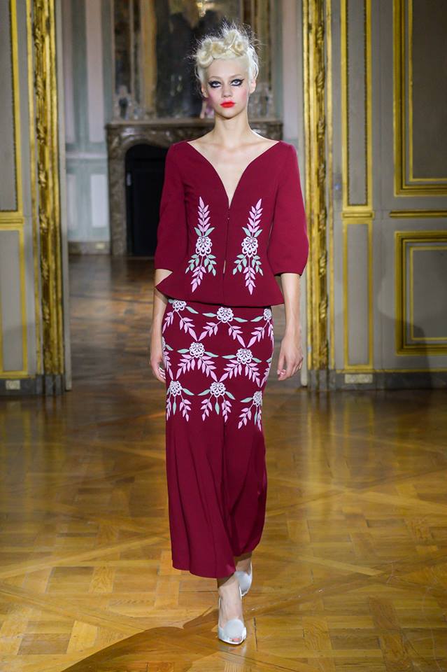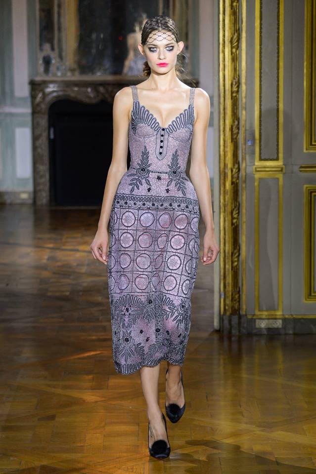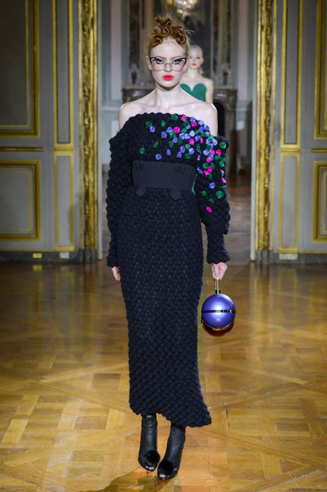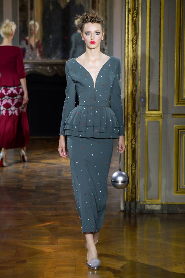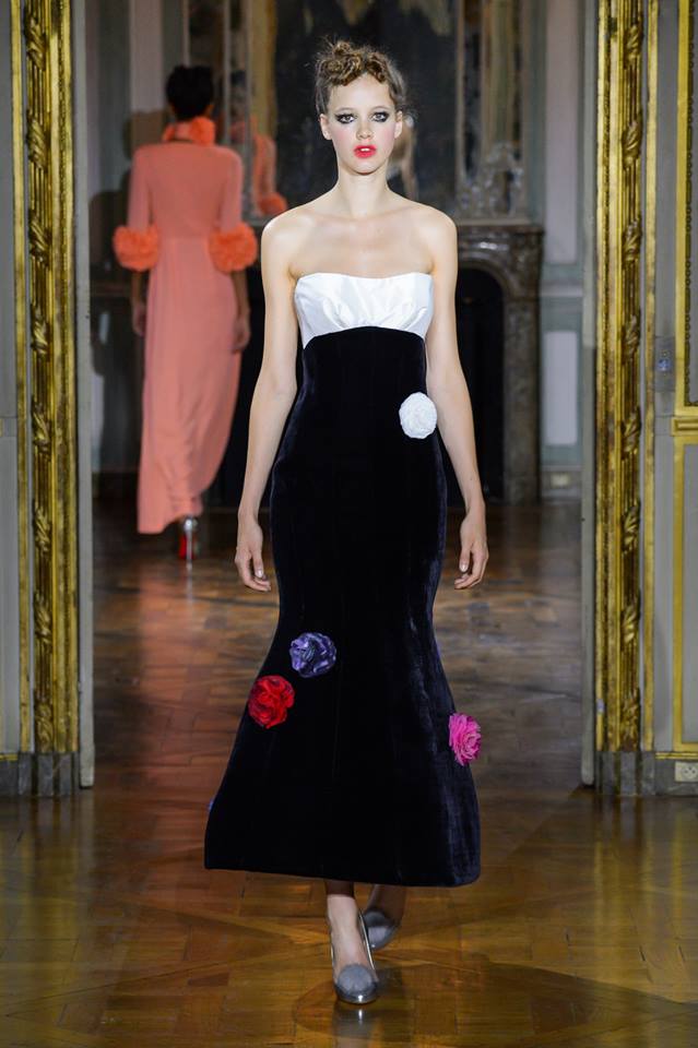 Inviting us to travel to her native Saint Petersburg, Ulyana Sergeenko took us back to the communal apartments of the Soviet era, each piece subtly suggesting the traditional interiors of her childhood: a sofa became a soft fur coat, and a fully embroidered dress evoked the structured silhouette of a lampshade. The designer has made high-flying craftsmanship her trademark, and this season was no exception, from meticulously hand-applied crystals to delicate lace bibs and sumptuous fur coats. Christian Louboutin chose to echo the fur pompoms that punctuated the collection, topping his Youpi 120 in silver metallic leather and his brand-new Dorissima 120 in matte leather with a single fluffy mink pompom. From head to toe, Ulyana Sergeenko paid a vibrant tribute to old-world nostalgia and Haute Couture opulence.