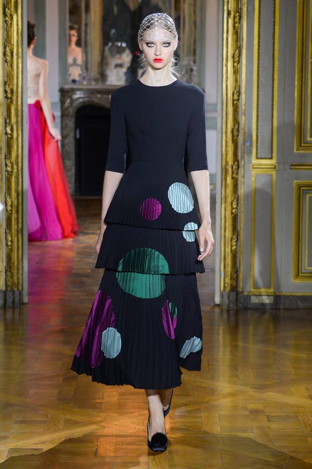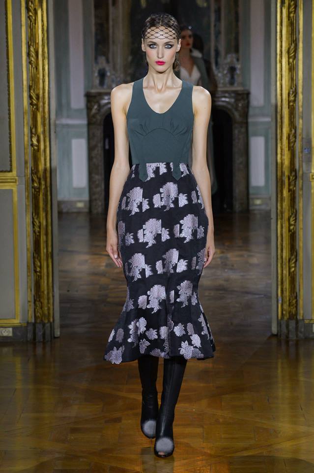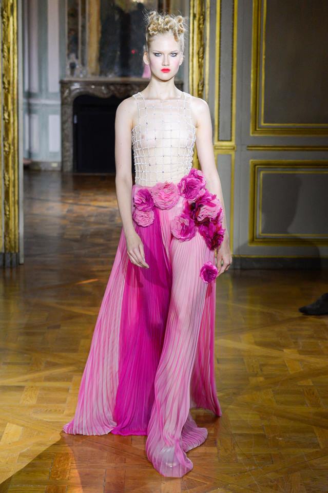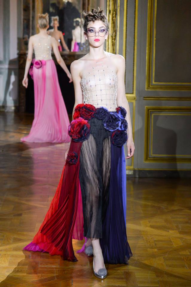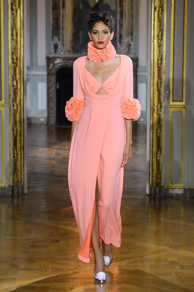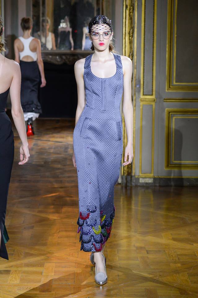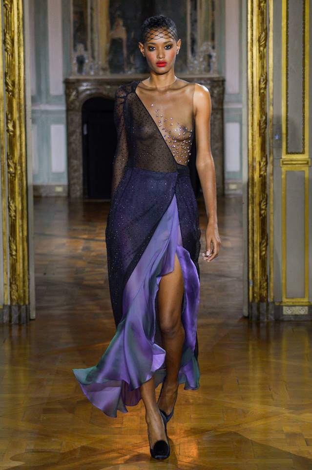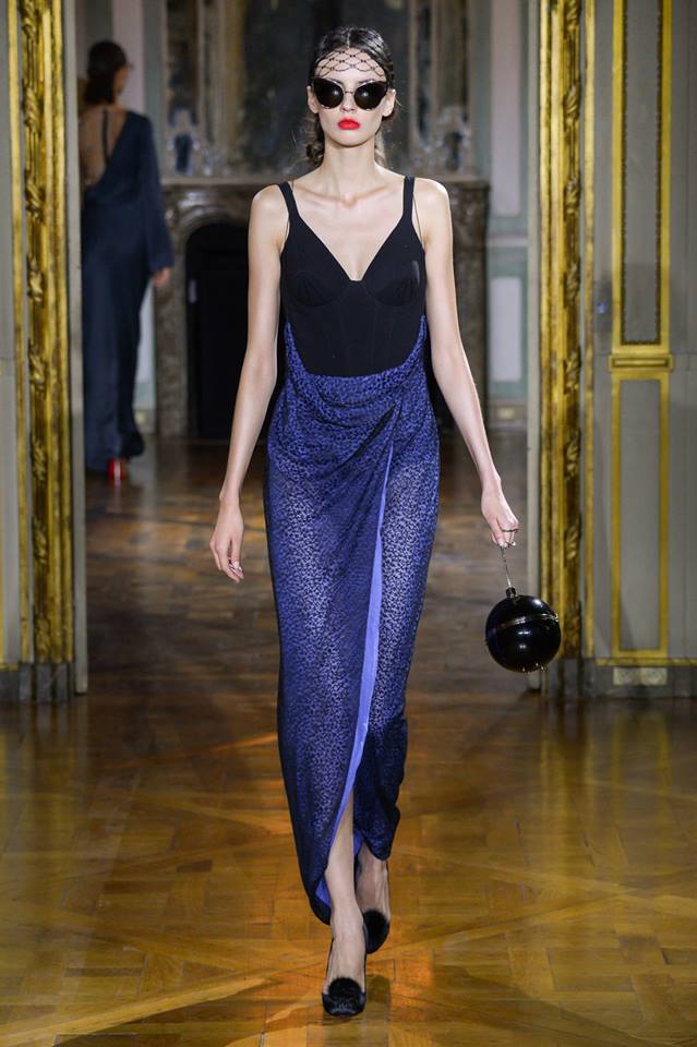 Inviting us to travel to her native Saint Petersburg, Ulyana Sergeenko took us back to the communal apartments of the Soviet era, each piece subtly suggesting the traditional interiors of her childhood: a sofa became a soft fur coat, and a fully embroidered dress evoked the structured silhouette of a lampshade. The designer has made high-flying craftsmanship her trademark, and this season was no exception, from meticulously hand-applied crystals to delicate lace bibs and sumptuous fur coats. Christian Louboutin chose to echo the fur pompoms that punctuated the collection, topping his Youpi 120 in silver metallic leather and his brand-new Dorissima 120 in matte leather with a single fluffy mink pompom. From head to toe, Ulyana Sergeenko paid a vibrant tribute to old-world nostalgia and Haute Couture opulence.