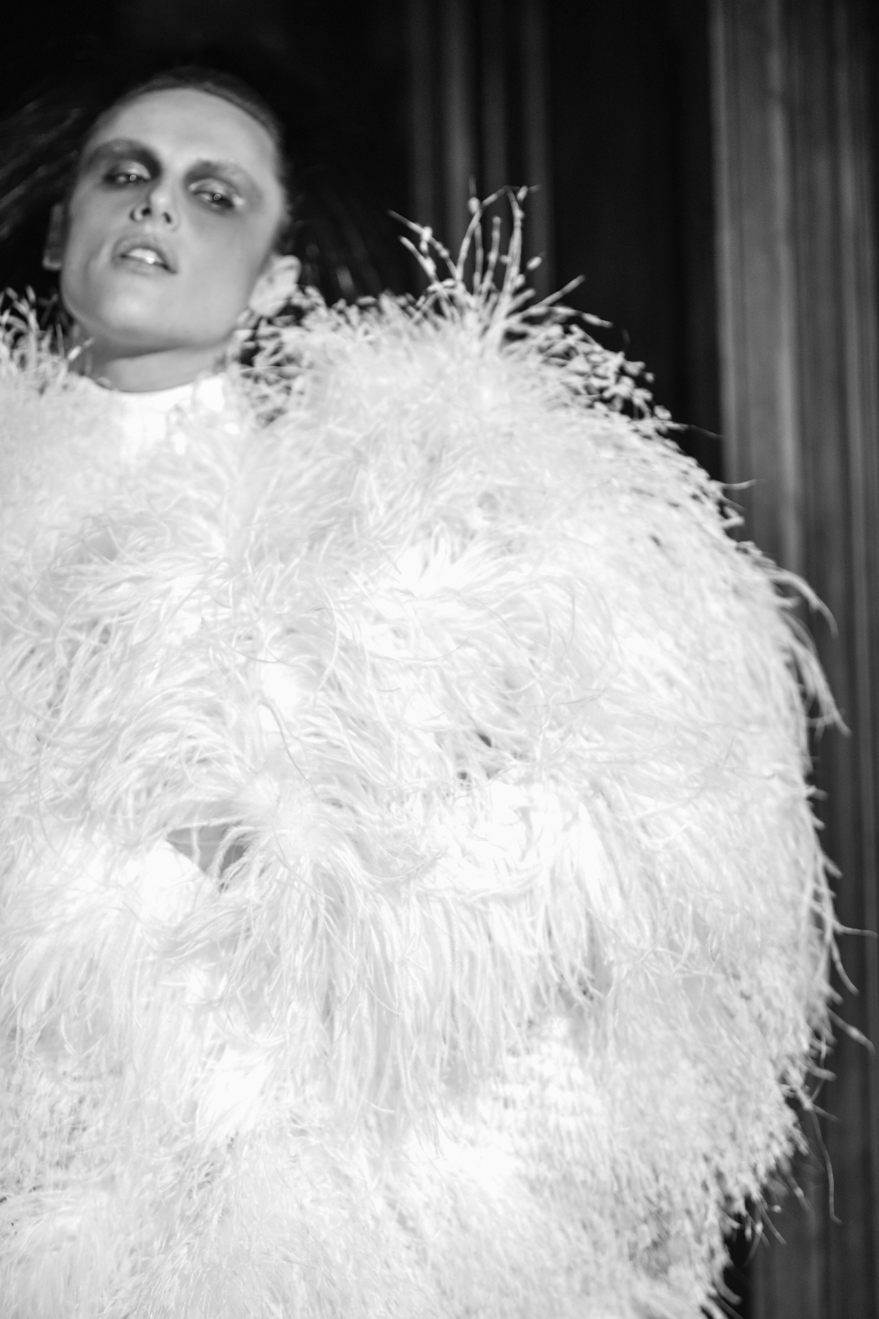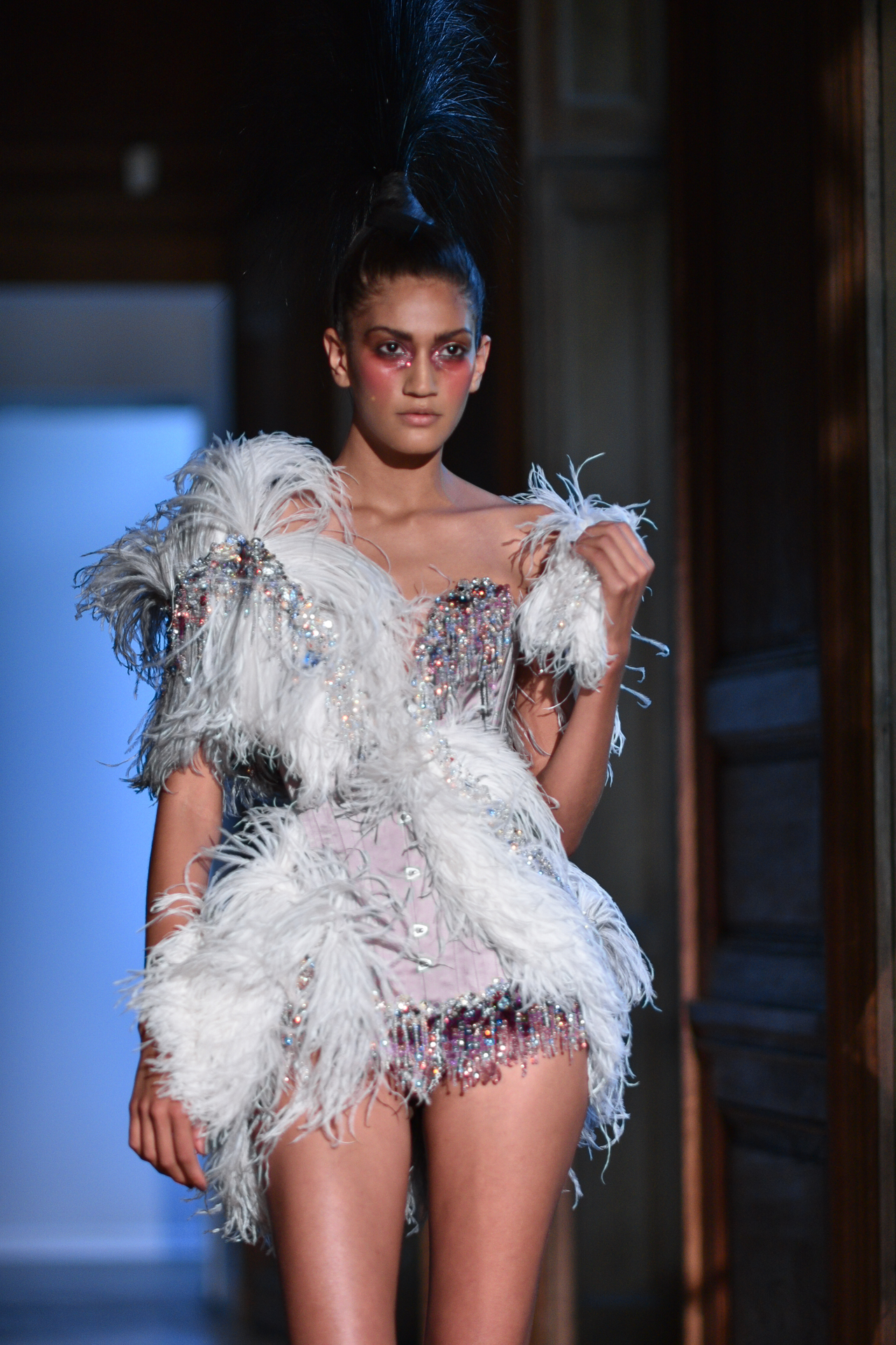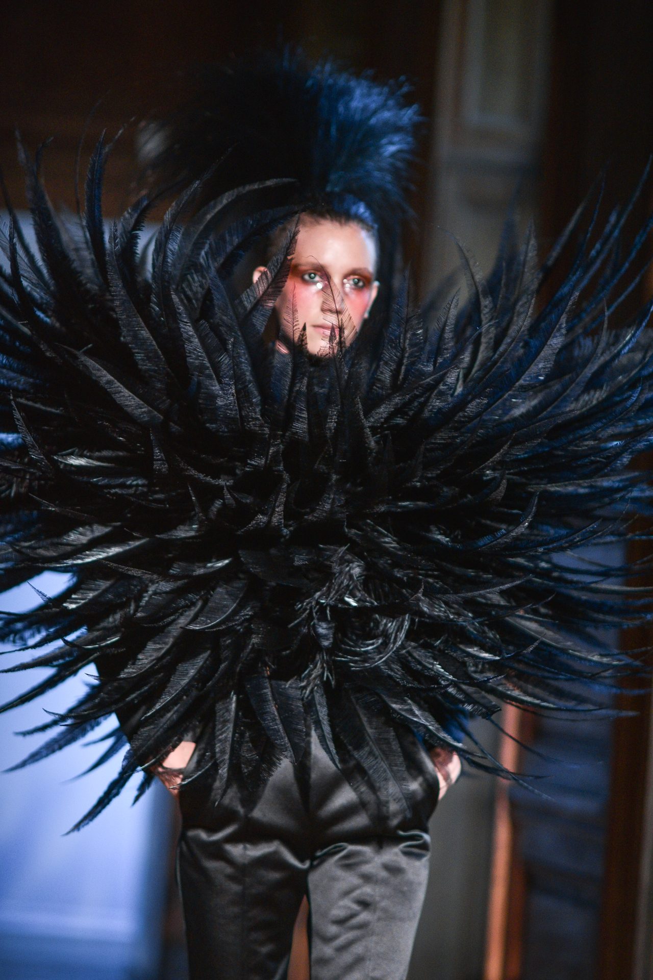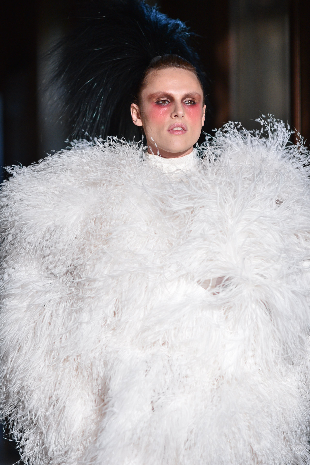 Serkan Cura is undoubtedly one of the worst-kept secrets of Paris Fashion Week. Season after season, Serkan imposes his creative fashion, decorated with magnificent feathers to dress his night birds. True to form, this spectacular collection is adorned with thousands of feathers and swarovski crystals. There are huge feather-covered coats, silk tulle petticoats and corsets embroidered with Swarovski crystals. Eccentricity and creative madness at the service of couture.