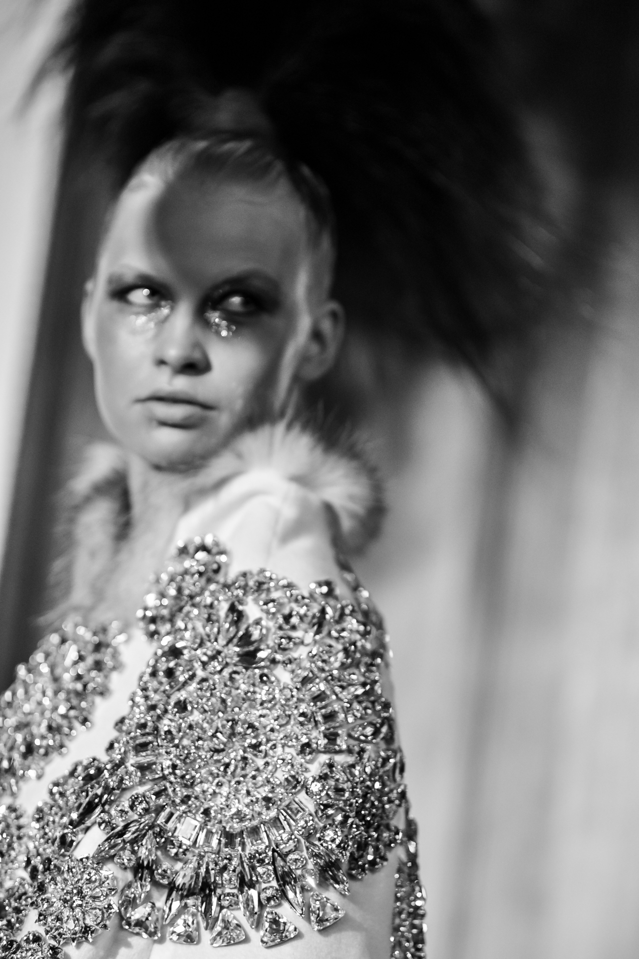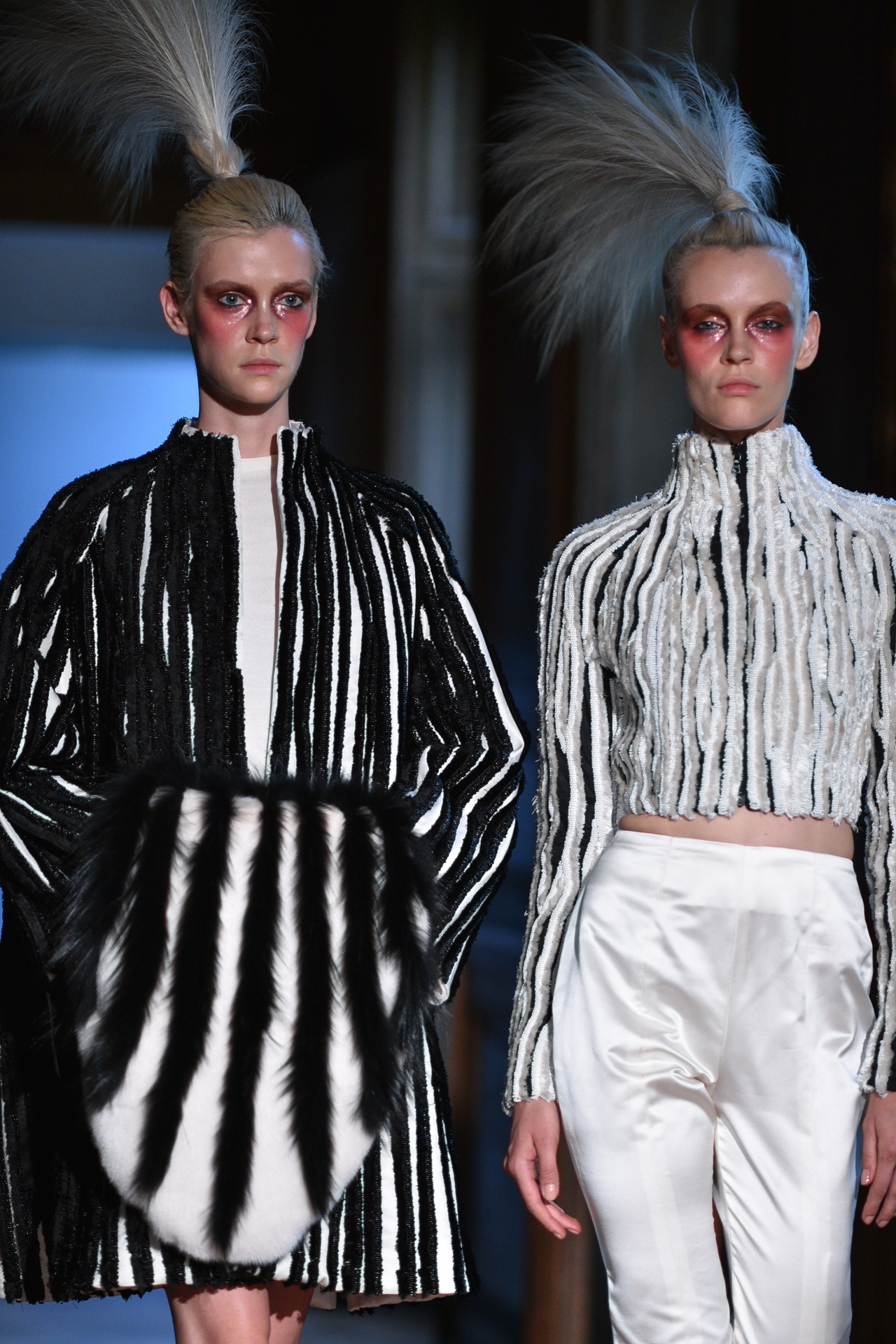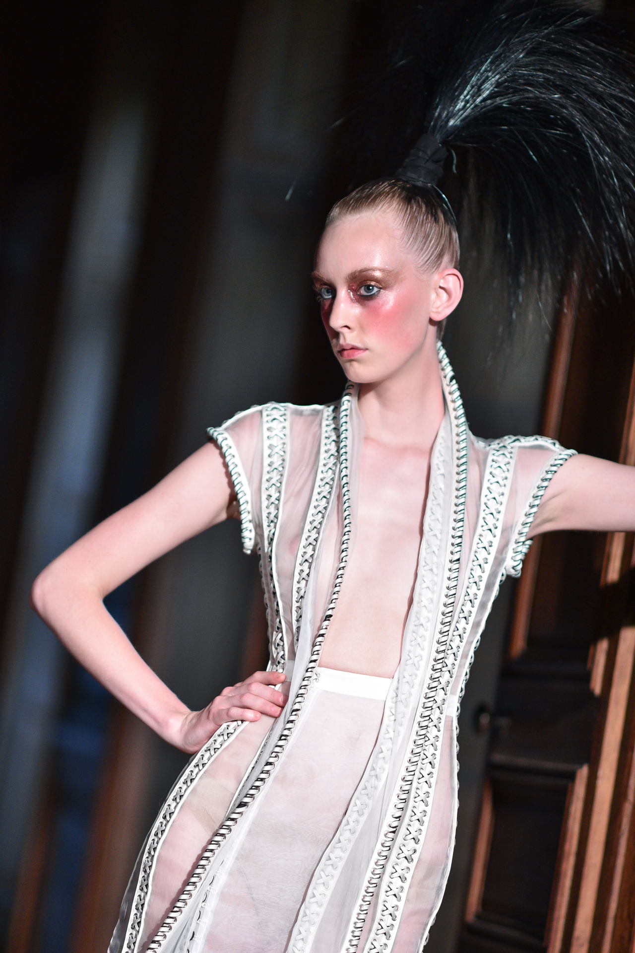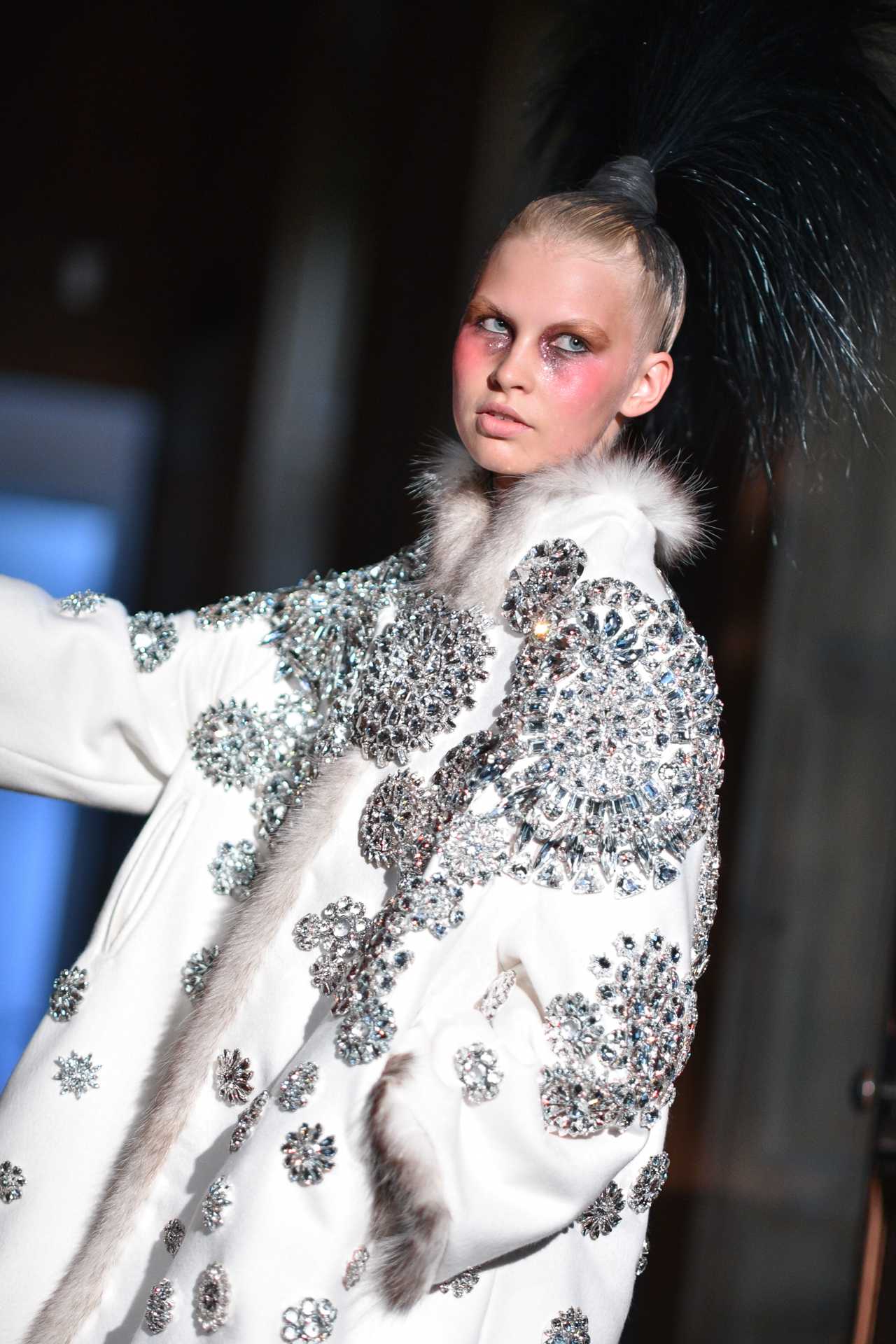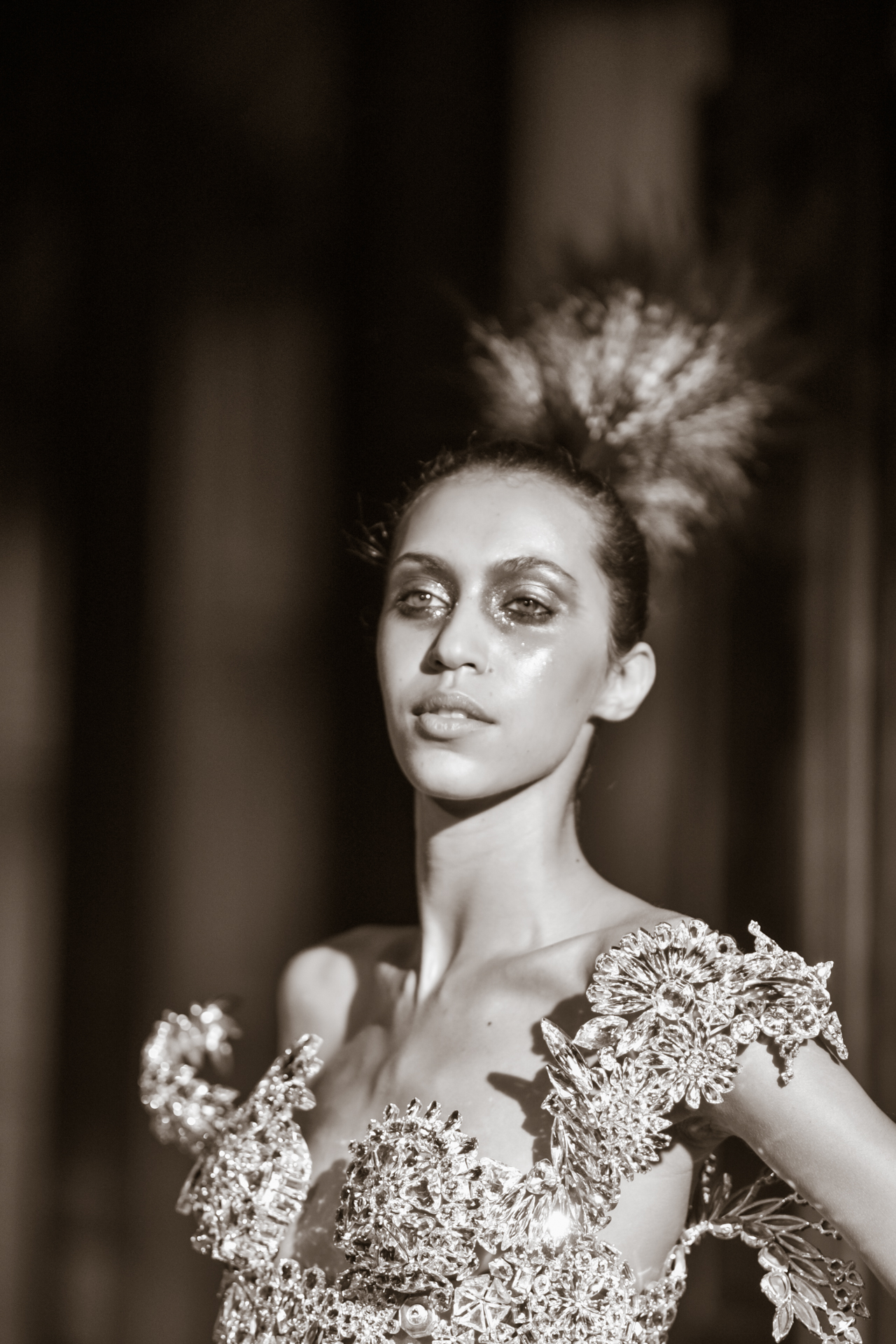 Serkan Cura is undoubtedly one of the worst-kept secrets of Paris Fashion Week. Season after season, Serkan imposes his creative fashion, decorated with magnificent feathers to dress his night birds. True to form, this spectacular collection is adorned with thousands of feathers and swarovski crystals. There are huge feather-covered coats, silk tulle petticoats and corsets embroidered with Swarovski crystals. Eccentricity and creative madness at the service of couture.