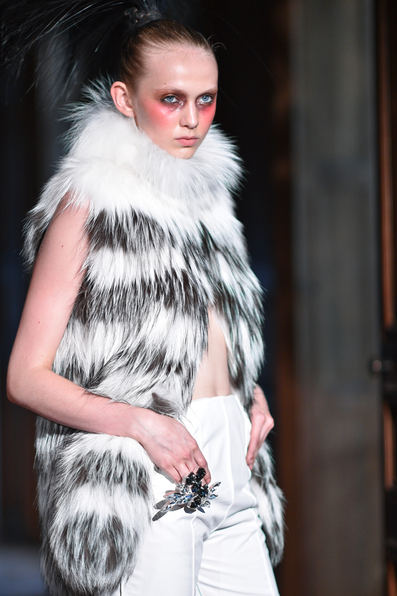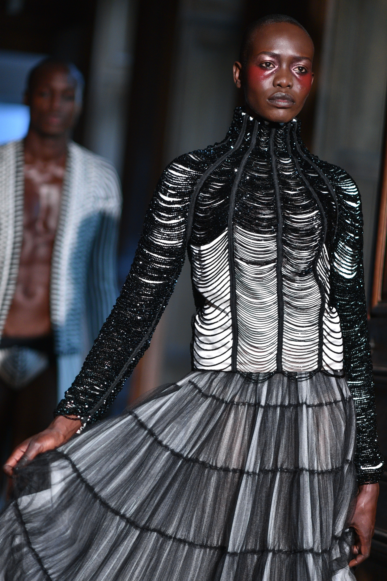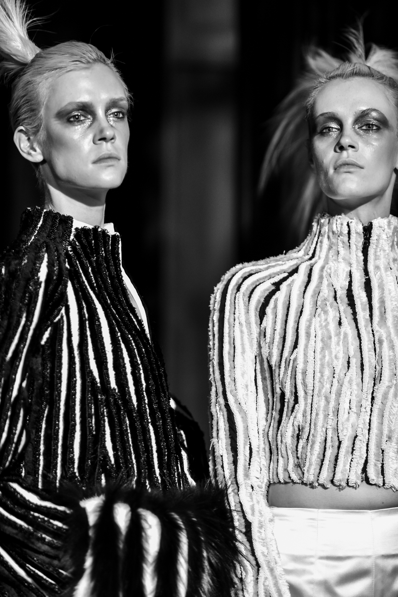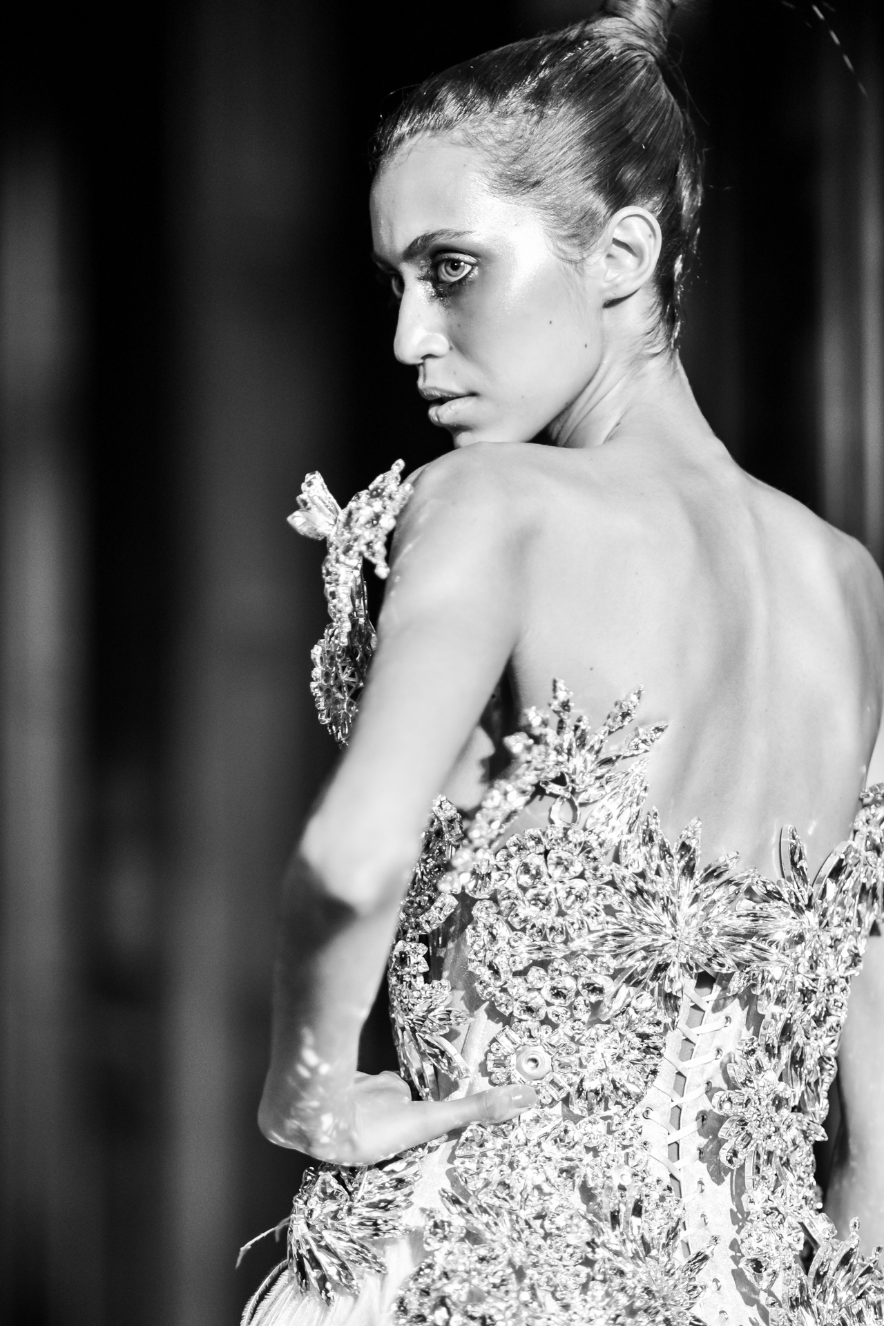 Serkan Cura is undoubtedly one of the worst-kept secrets of Paris Fashion Week. Season after season, Serkan imposes his creative fashion, decorated with magnificent feathers to dress his night birds. True to form, this spectacular collection is adorned with thousands of feathers and swarovski crystals. There are huge feather-covered coats, silk tulle petticoats and corsets embroidered with Swarovski crystals. Eccentricity and creative madness at the service of couture.