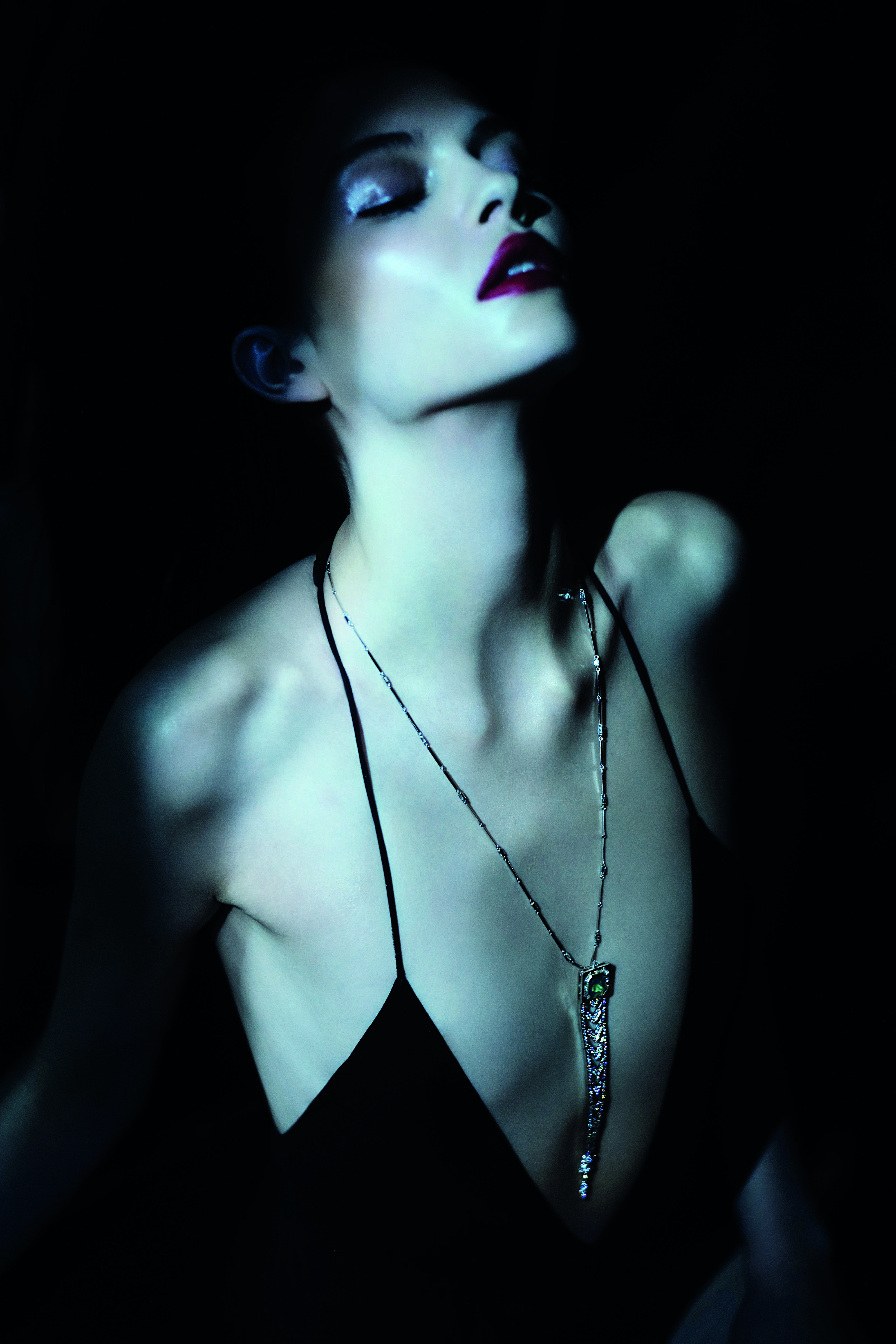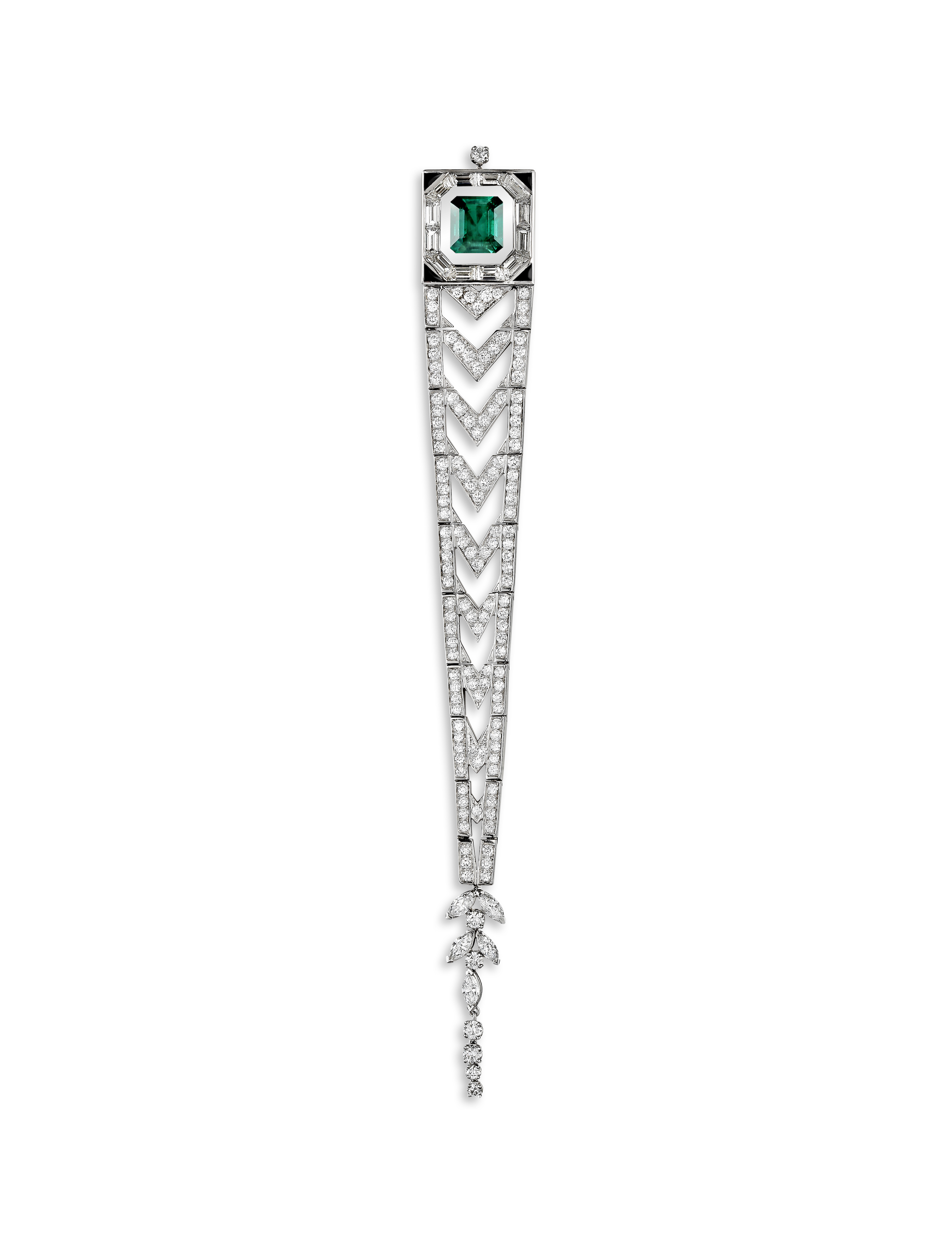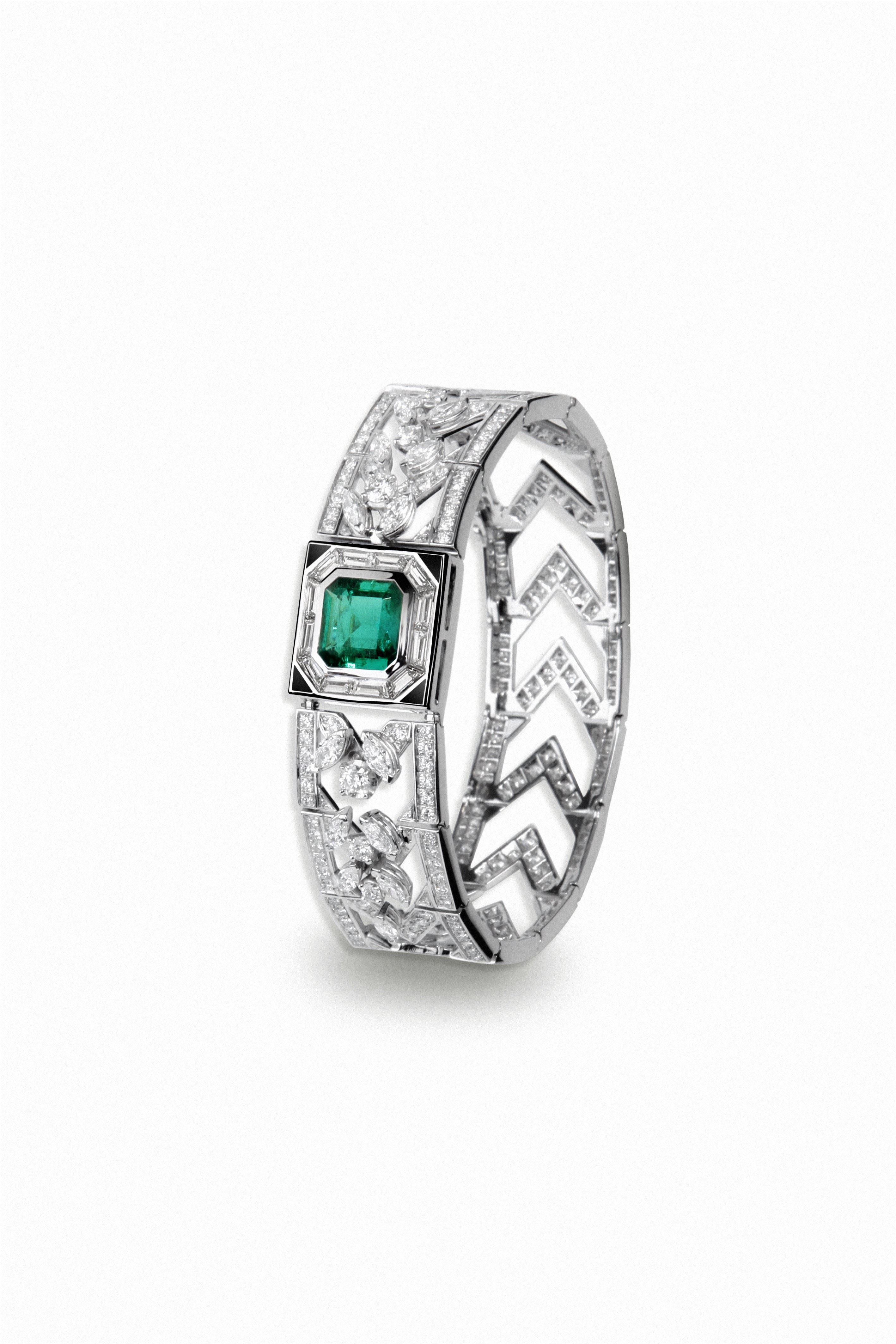 Fascinated by the emerald, Mellerio’s fetish stone, Alexandre Vauthier wanted to make it the “green” thread of the collection. Resolutely elegant, graphic and contemporary, this collection highlights the precision of the designer’s style and the savoir-faire of Maison Mellerio: supple, mobile and transformable jewelry. Structured as a vanishing line, the links of the pieces in the Haute Joaillerie collection form a succession of “Vs”, the designer’s initial. It was only when the pieces were being made by the head of the workshop that the “V” was revealed to form the “M” of Mellerio, marking a predestined collaboration!