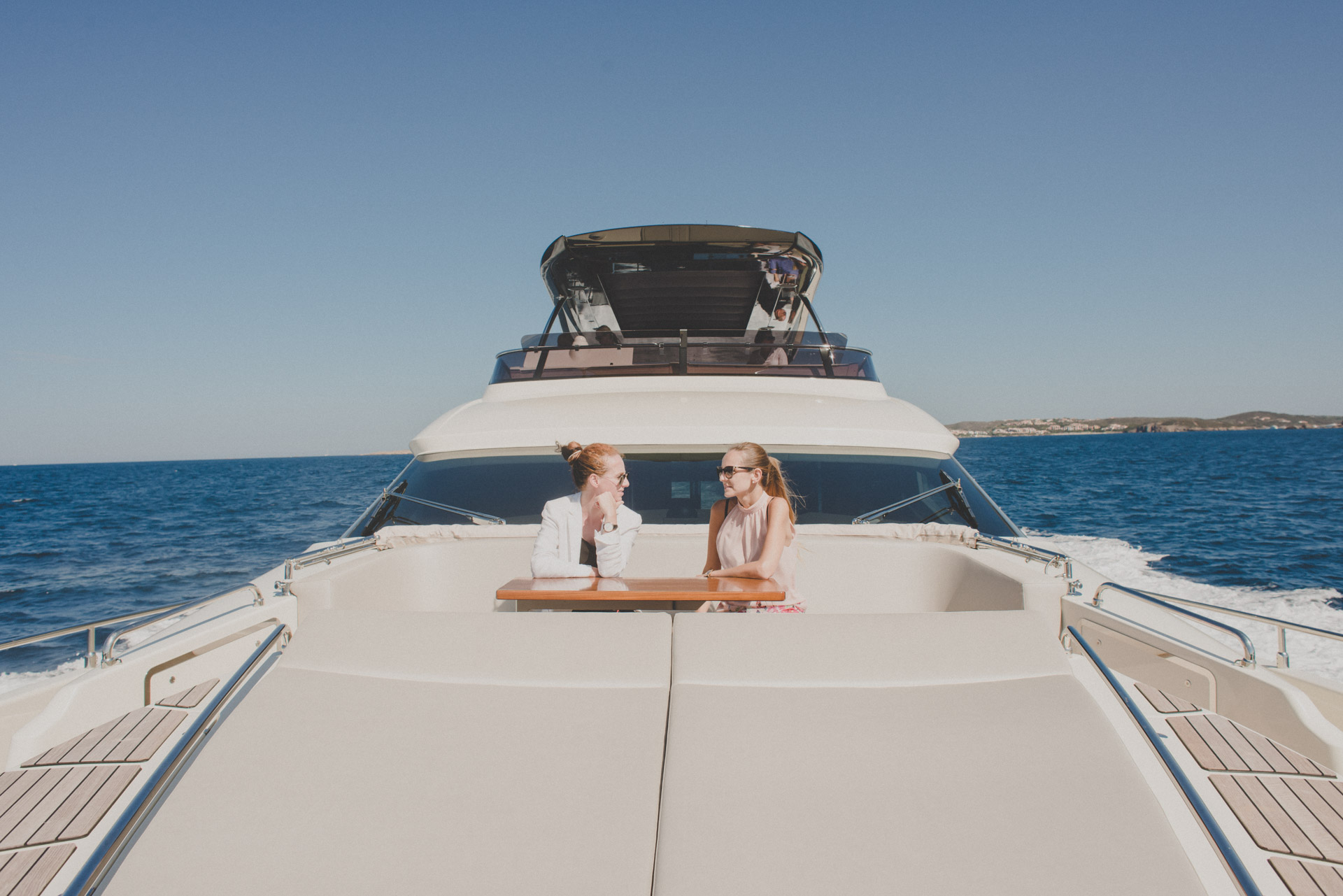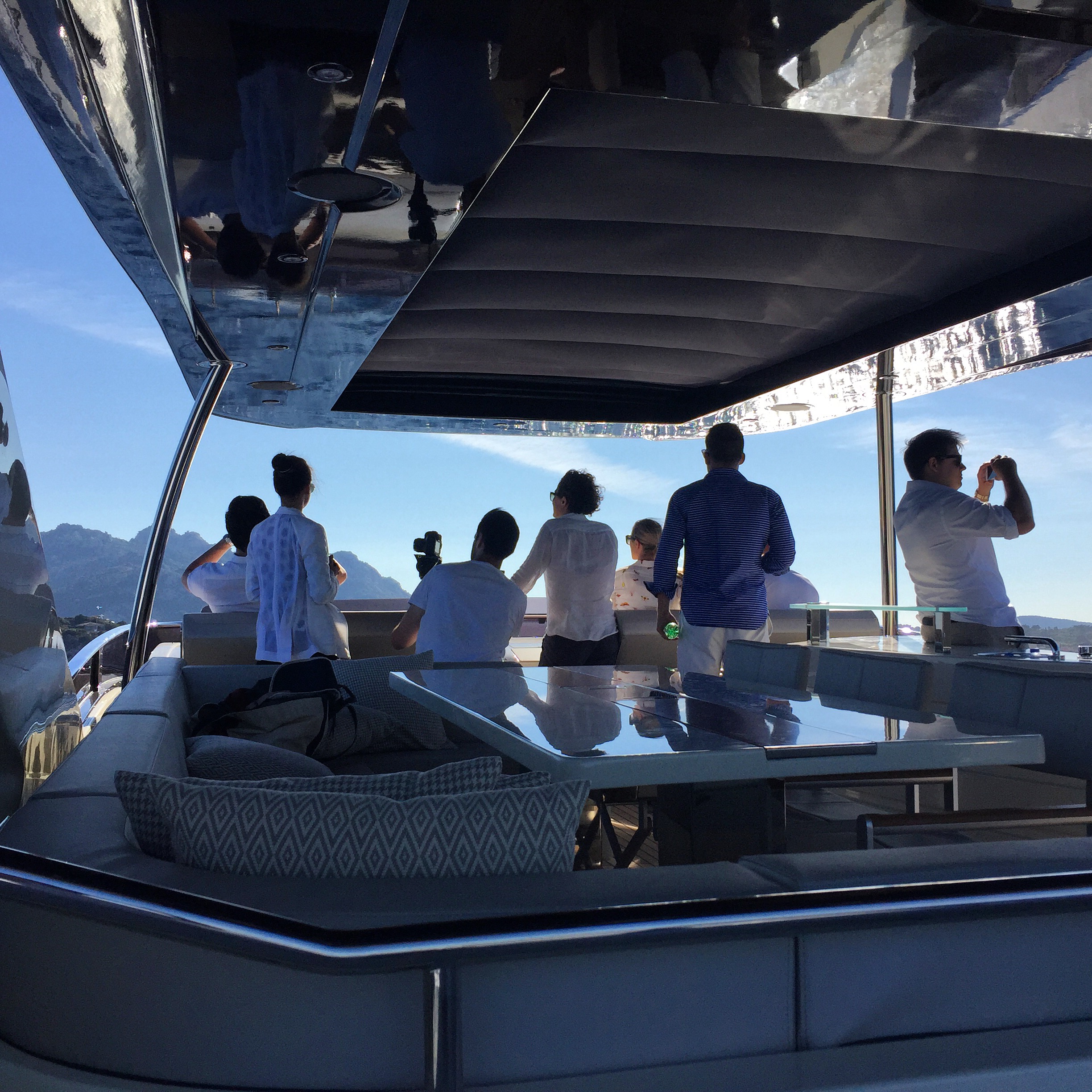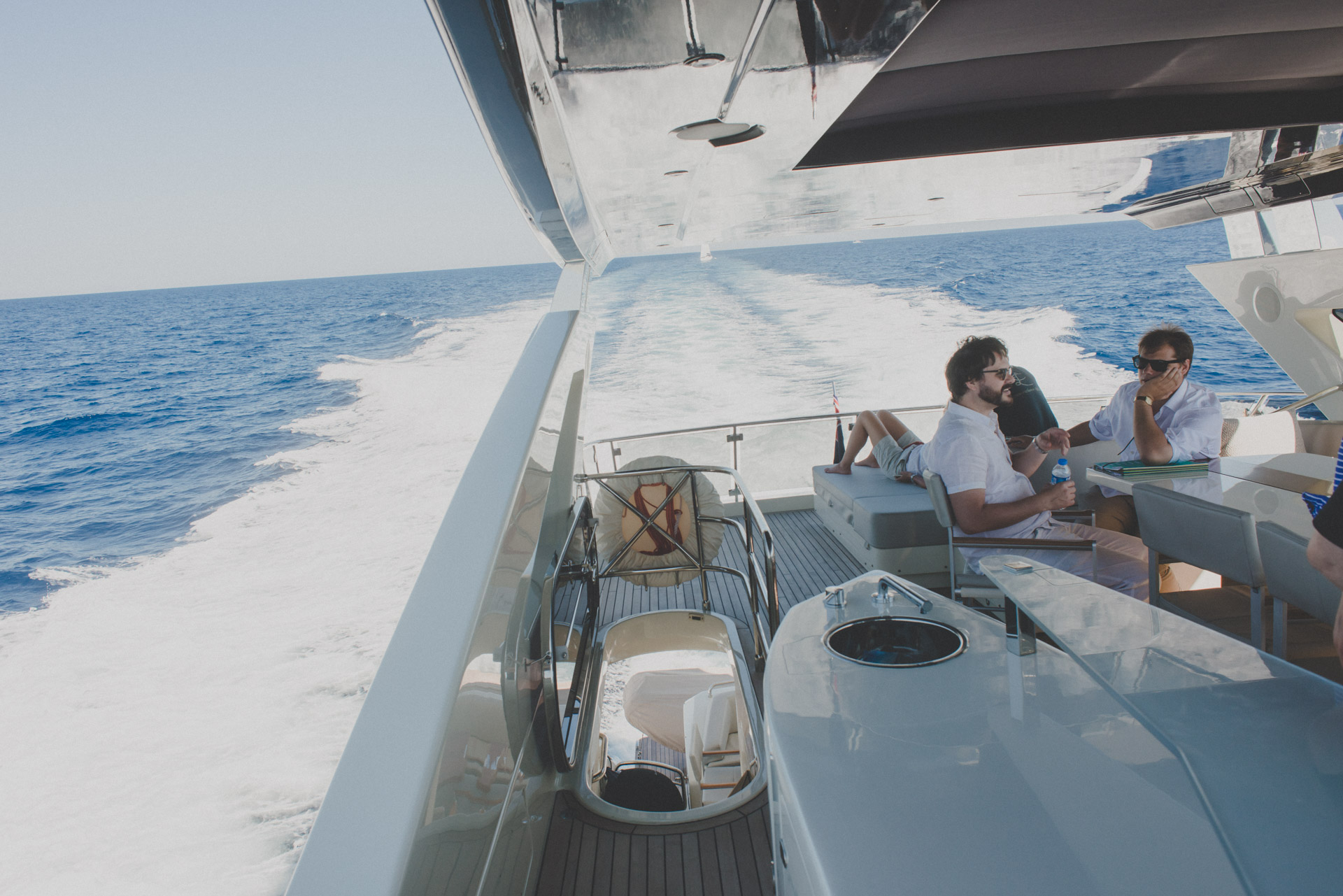 But who says Porto Cervo says yacht? The bay of Porto Cervo is a natural harbour, home to some of the most exceptional yachts (or even liners) in the Mediterranean. So it’s only natural that we should board a magnificent Dominator. Dominator is a family-run brand run by passionate people. They offer exceptional, fully customized yachts, reminiscent of the Rolls-Royce brand’s commitment to customization and excellence.