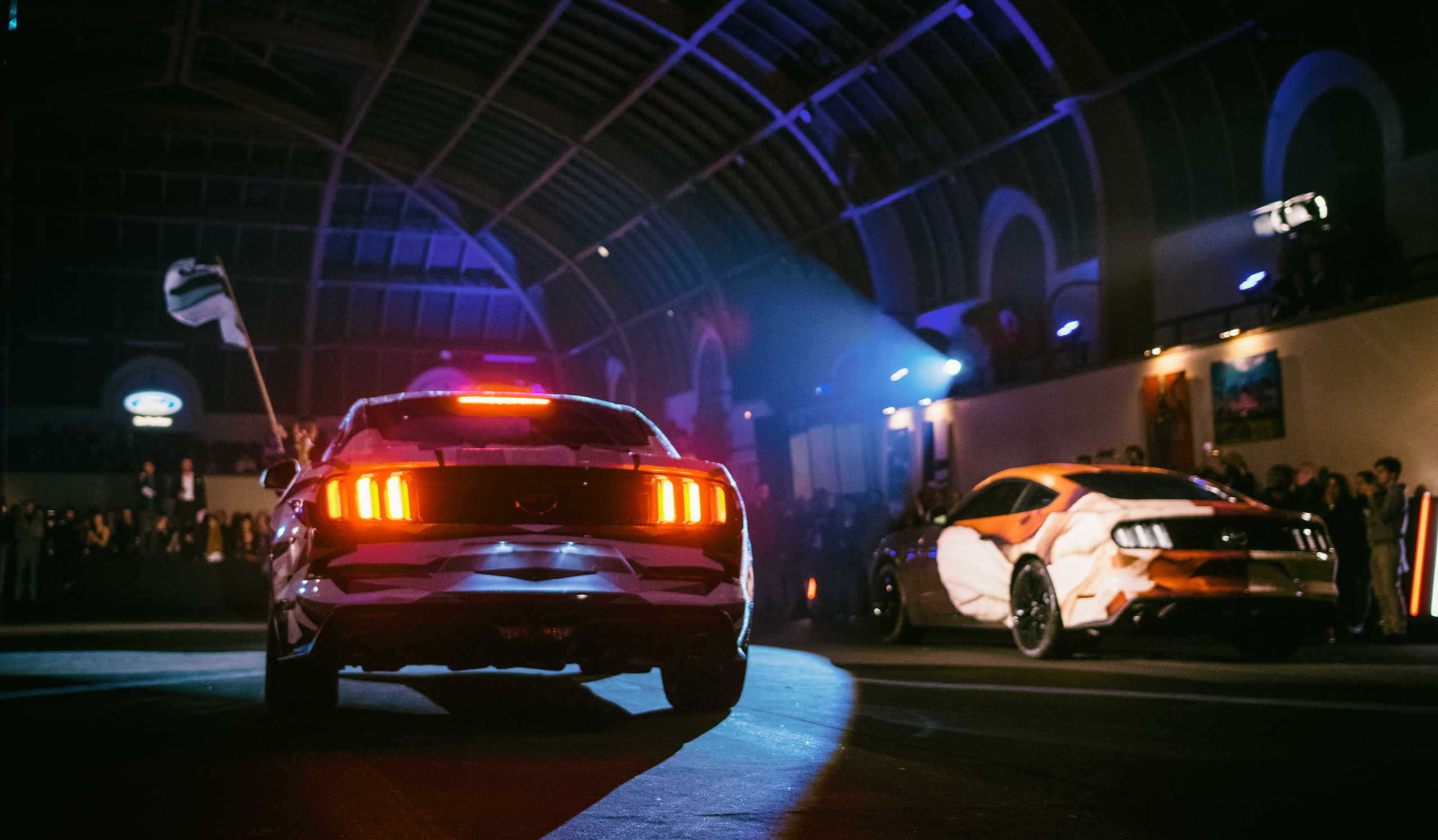 The six Ford Mustangs that became “art cars” under the leadership of artists Mathieu César, Thomas Lélu, Noé Duchaufour Lawrance, Alexandre Vauthier, from L’Encrerie, not to mention Morgan Grosset, winner of the Design Boom contest, paraded under the