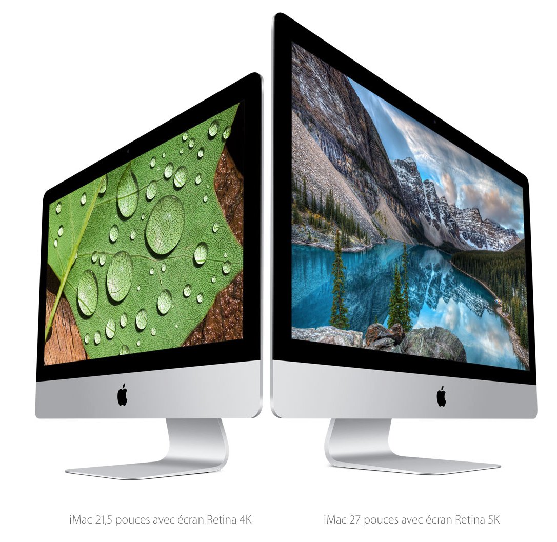 Apple has updated the entire iMac range, integrating for the first time a spectacular new Retina 4K display on the 21.5-inch iMac, as well as the Retina 5K display on all 27-inch iMacs. Thanks to an expanded gamut and stunning image quality, the new Retina displays make photos and videos more immersive and faithful. The updated iMacs also feature more powerful processors and graphics, two Thunderbolt 2 ports and new storage options that make the high-performance Fusion Drive even more affordable.