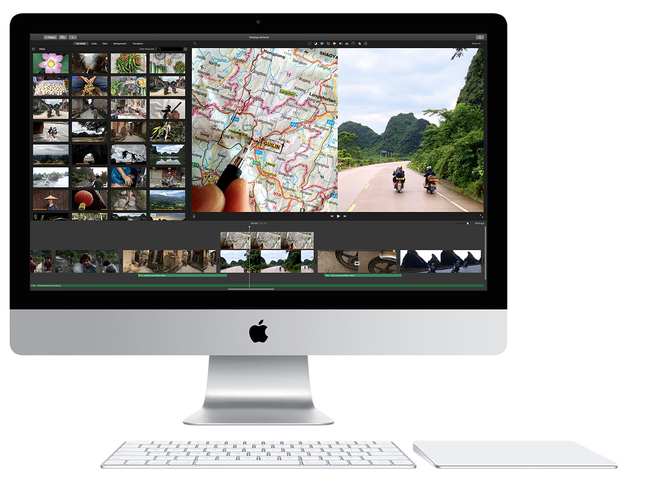 iMovie, GarageBand and all iWork apps are delivered free with every new iMac. The iMovie app, which has been updated today to support 4K video, lets you make beautiful movies with ease, while you can use GarageBand to compose music or learn to play the piano or guitar. The iWork suite of applications, comprising Pages, Numbers and Keynote, lets everyone create, edit and share documents, spreadsheets and superb presentations. And with Pages, Numbers and Keynote for iCloud, create a document on your iPhone or iPad, edit it on your Mac and collaborate with friends and family, including those on PCs.