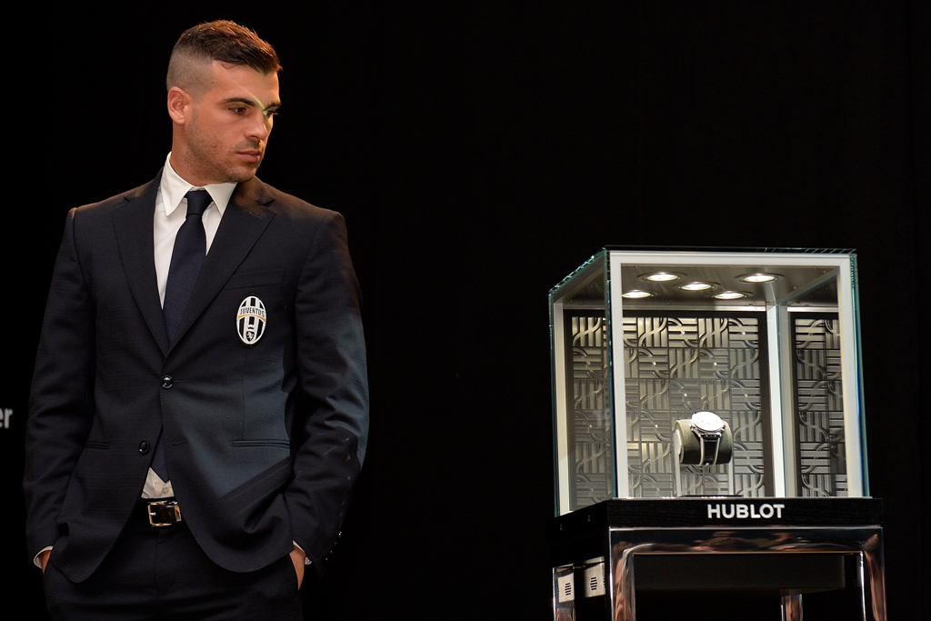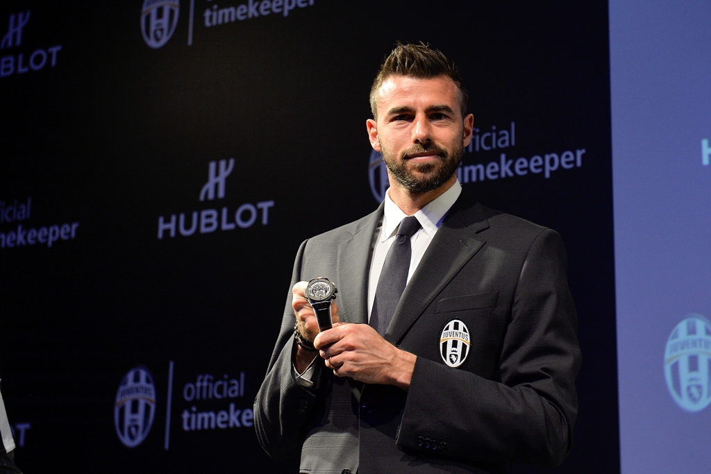 The official presentation of the new Big Bang Unico Bi-Retrograde Juventus took place in an exceptional setting, the prestigious Club Gianni e Umberto Agnelli at Turin’s Juventus Stadium, in the presence of Augusto Capitanucci, Brand Director at Hublot Italy, David Trezeguet, President of the Juventus Legends, and Giorgio Ricci, Juventus Head of International Partnerships and Corporate Revenue, as well as two first-team players, Stefano Sturaro and Andrea Barzagli.