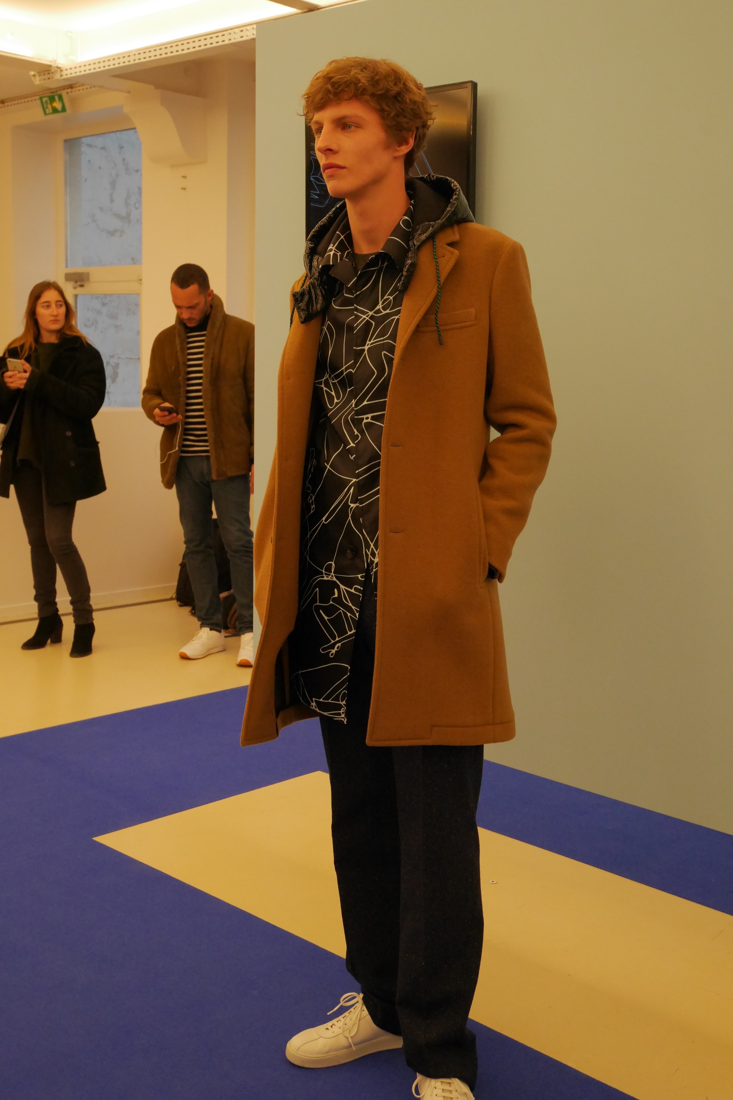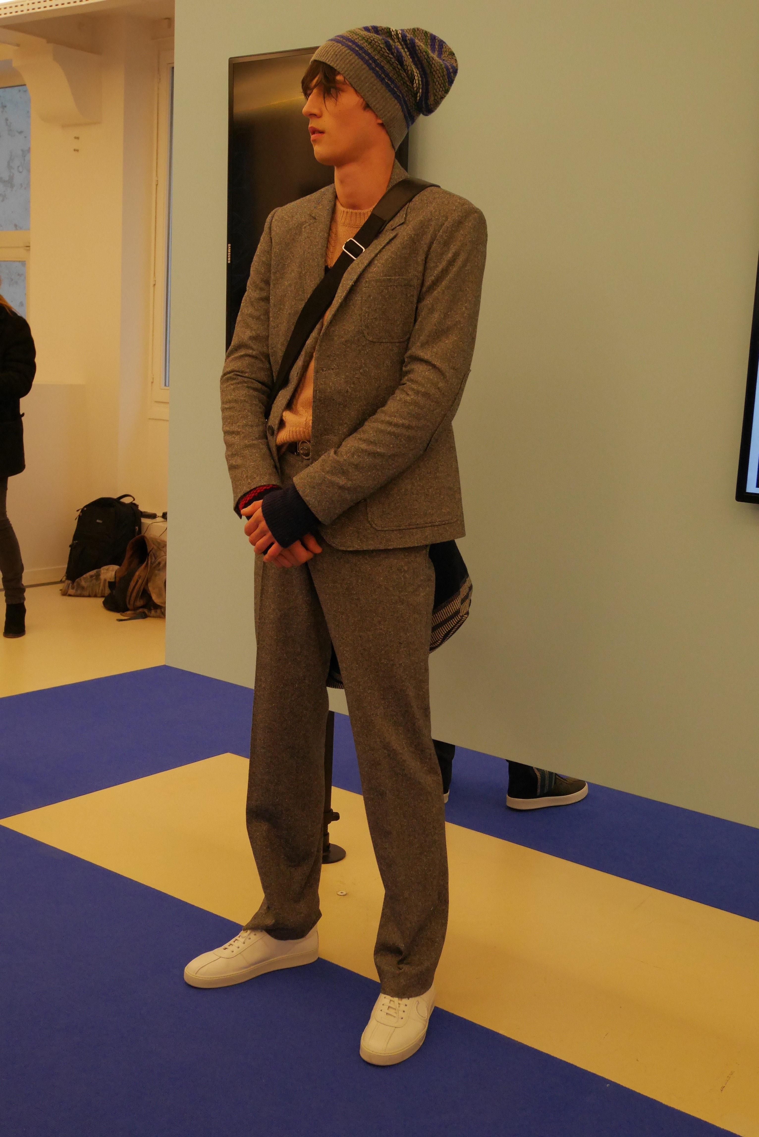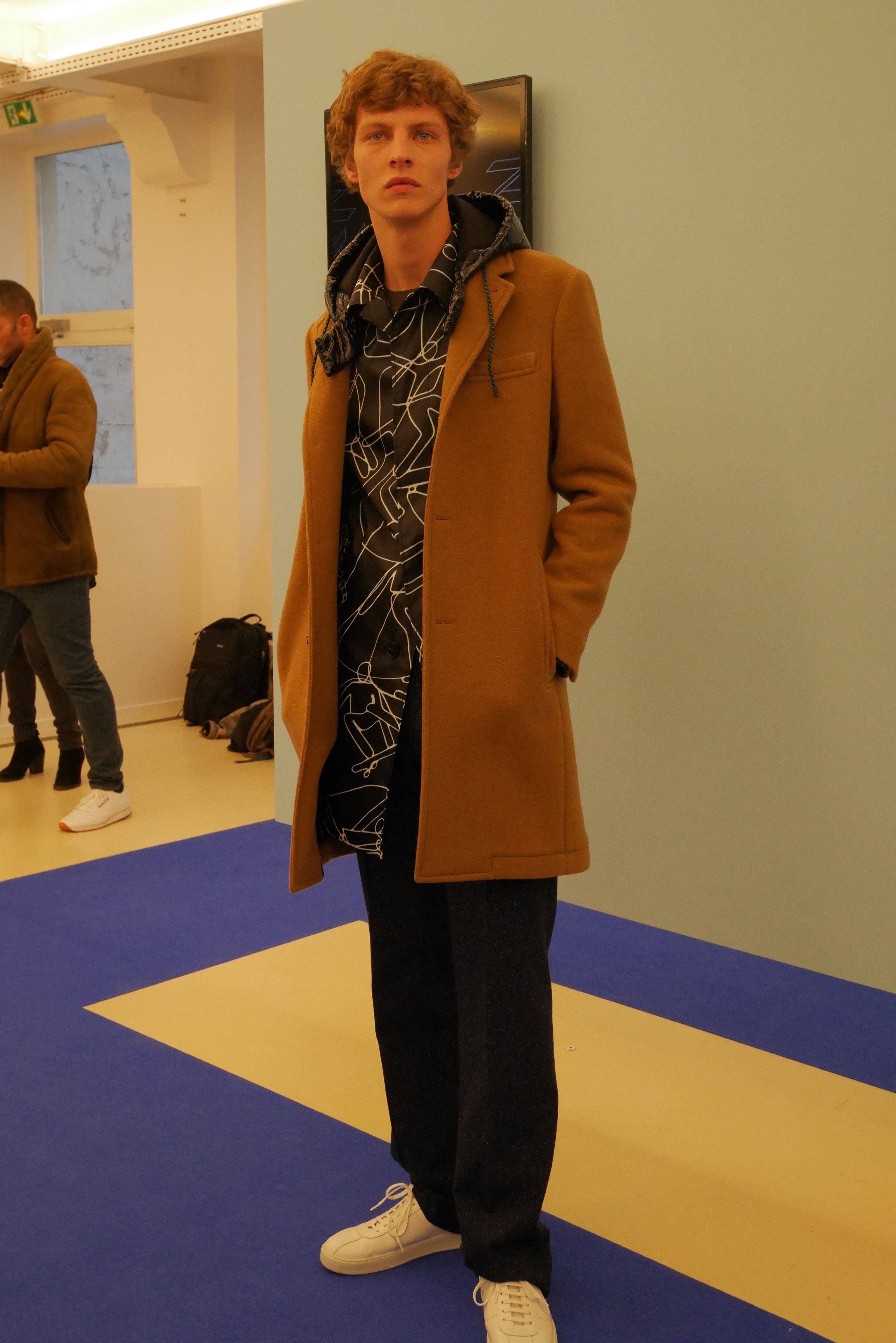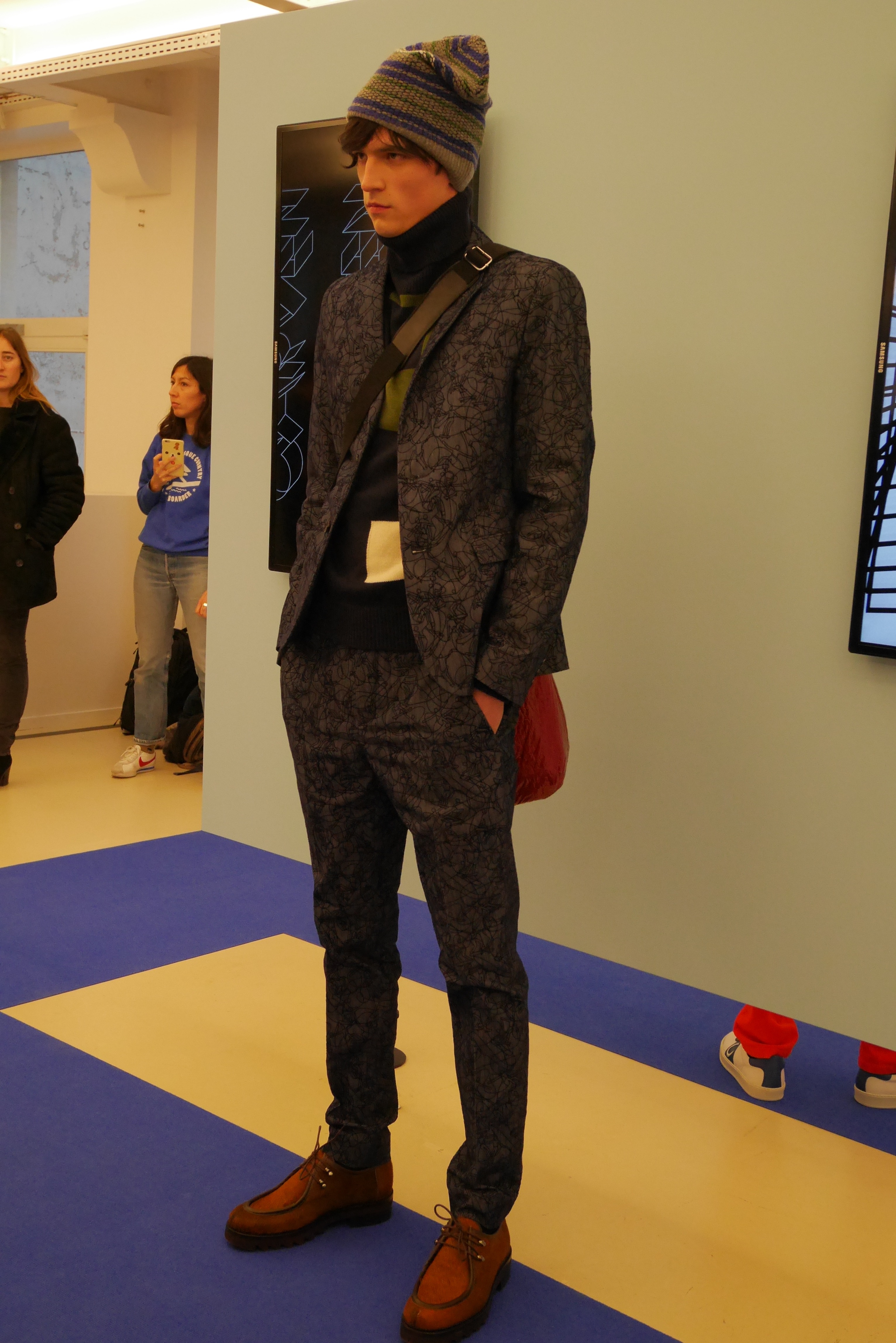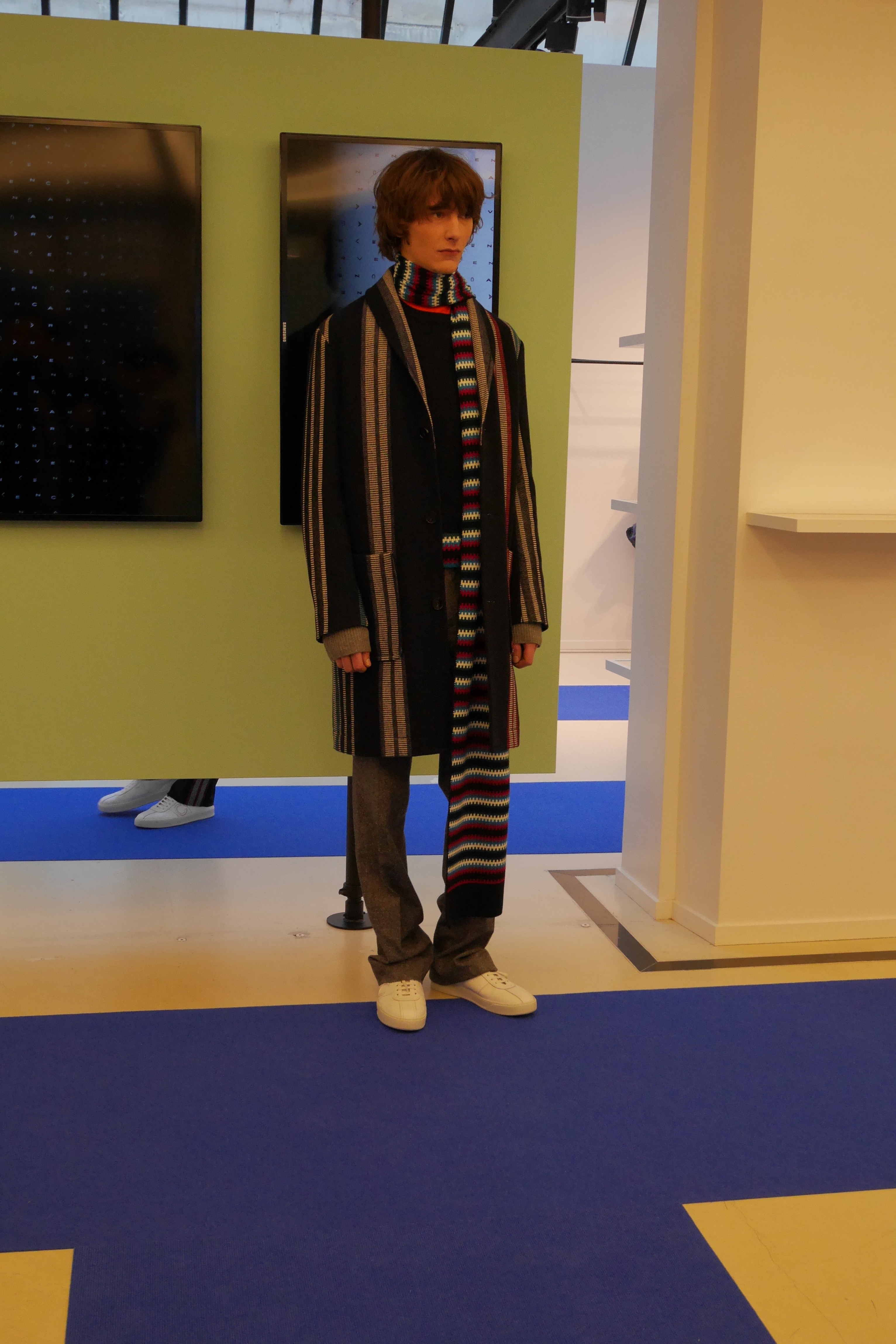 The Carven look gives men a modern, contemporary allure. It’s truly a collection that can be worn every day. The silhouettes are deeply “so British”, casual/sport chic, with a color palette that includes strong oranges, fir green, red, hard blue, gray and mustard yellow. In terms of materials and patterns, we mainly feature chunky knits and stripes.