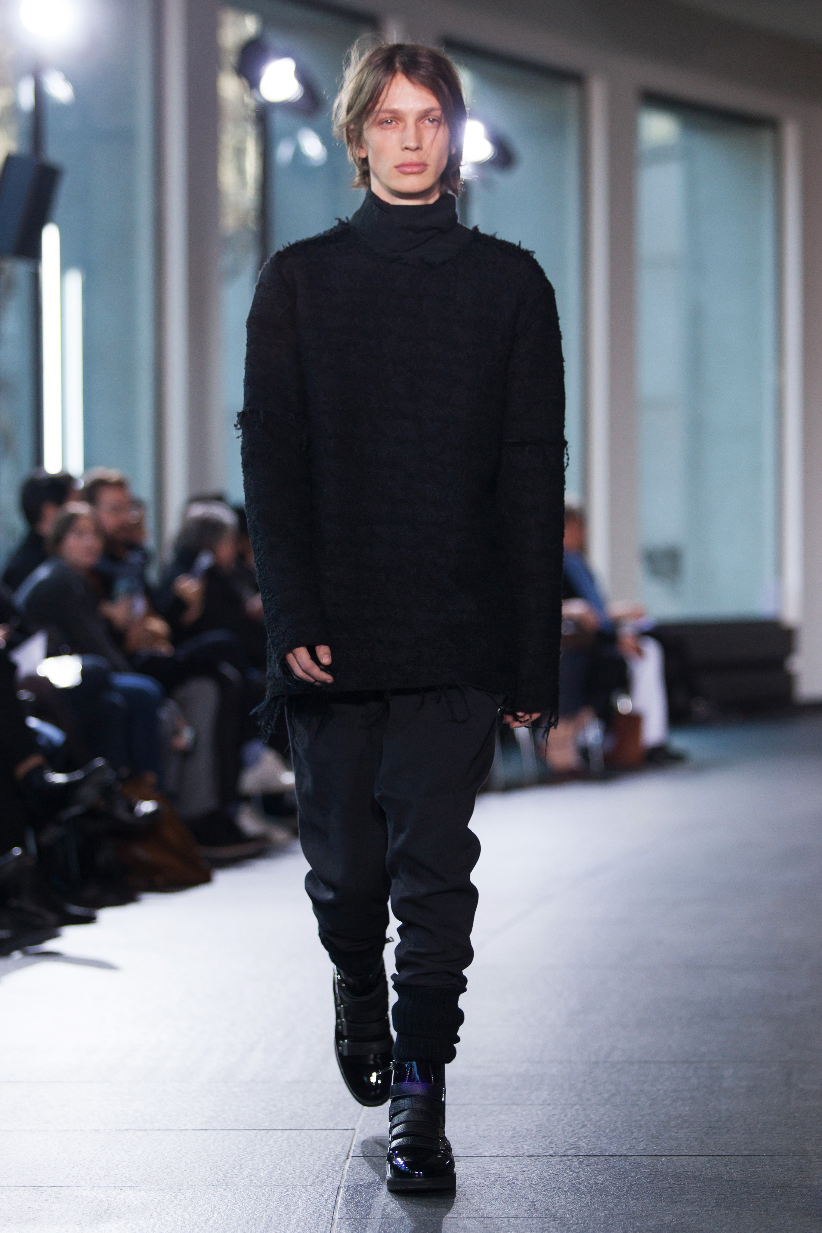 The brand is associated with “The Woolmark Company”, a global benchmark for quality wool. The wool used here is Merino. 3D work was carried out to create a jacquard knit, a first for the brand. Black wool is graphically positioned on oversized sweaters with very long sleeves and turtlenecks, and there’s also some devoured wool work on the sweaters. Colors range from khaki green to black, gray, white, midnight blue, purple and red.