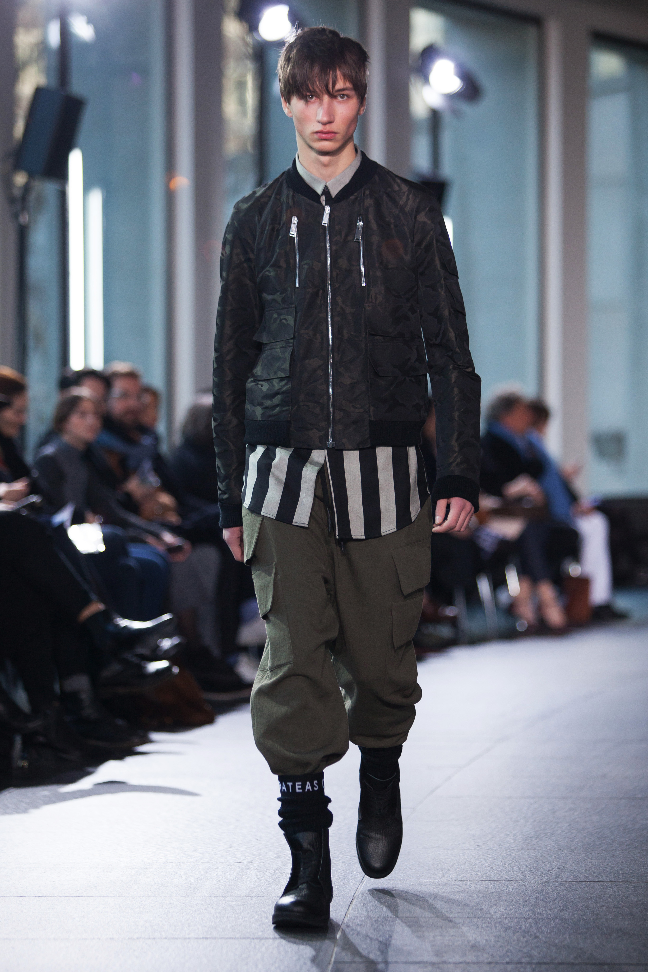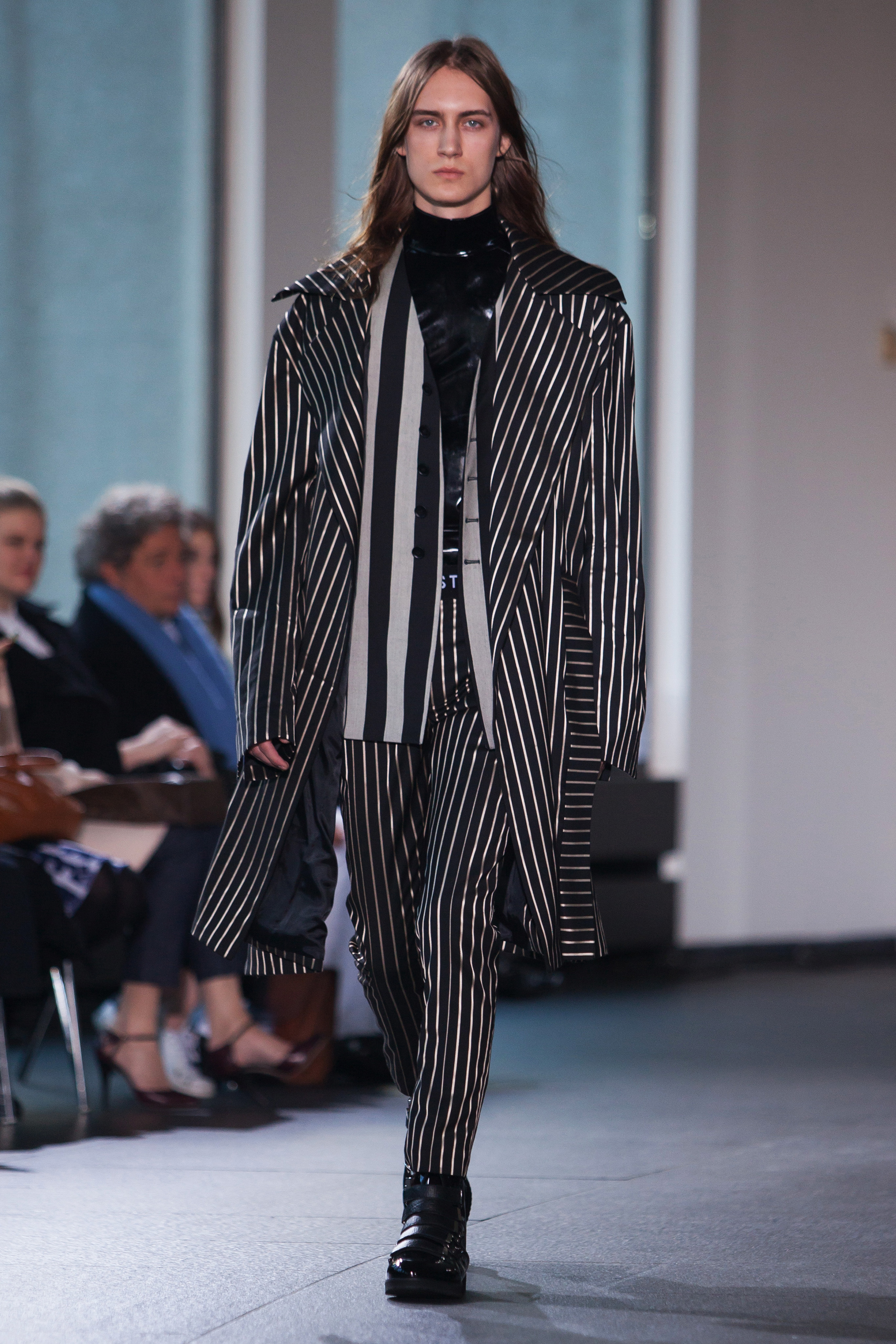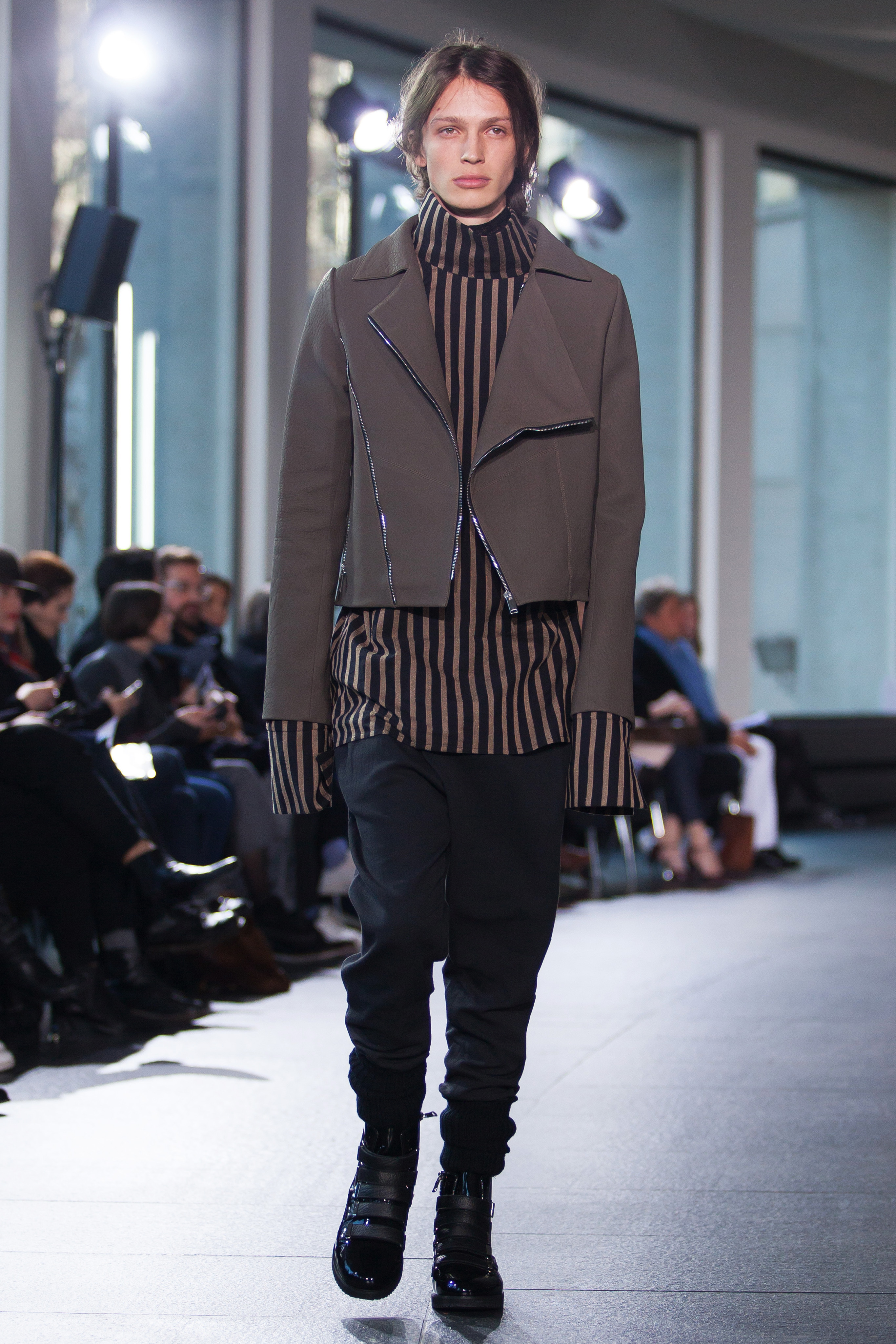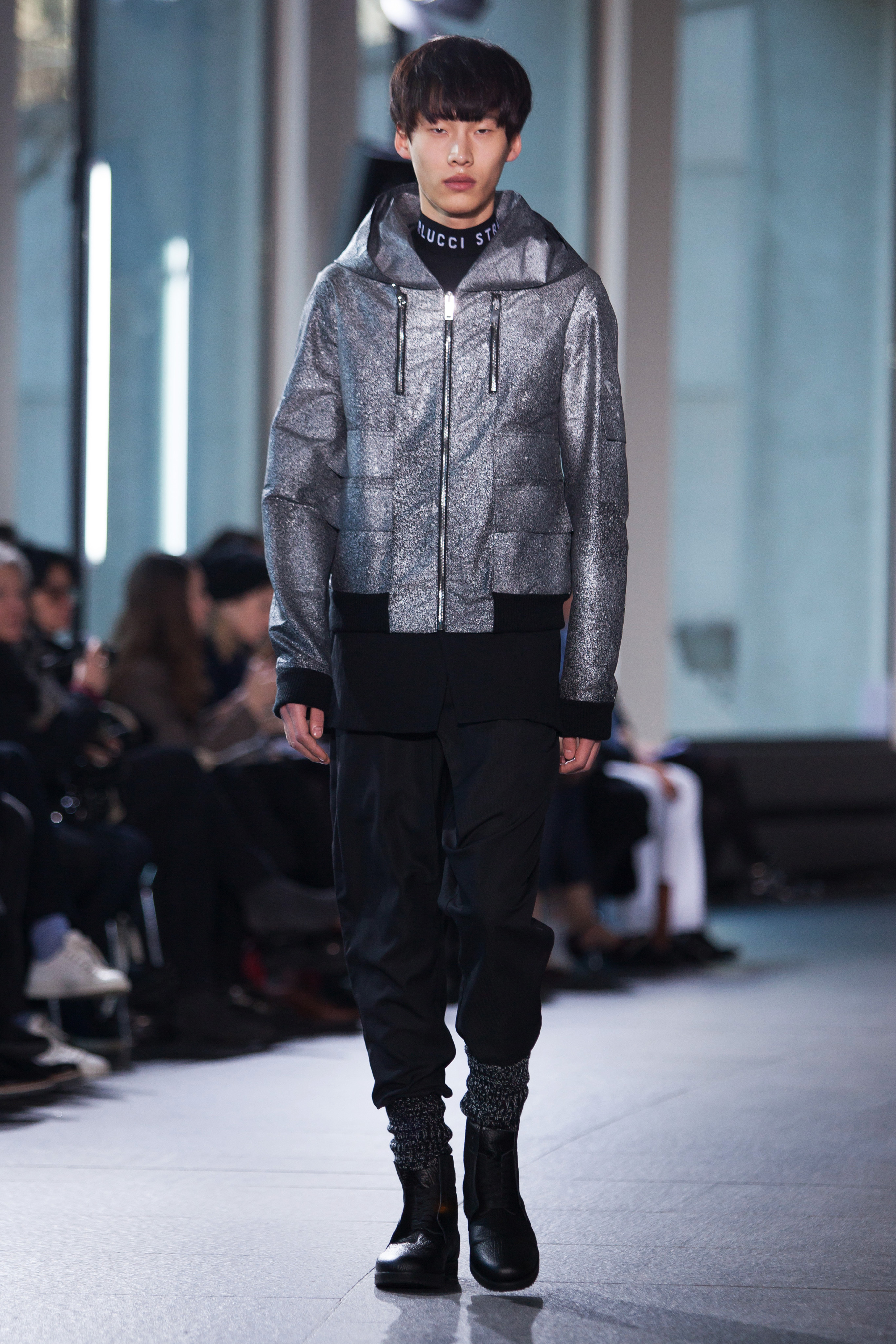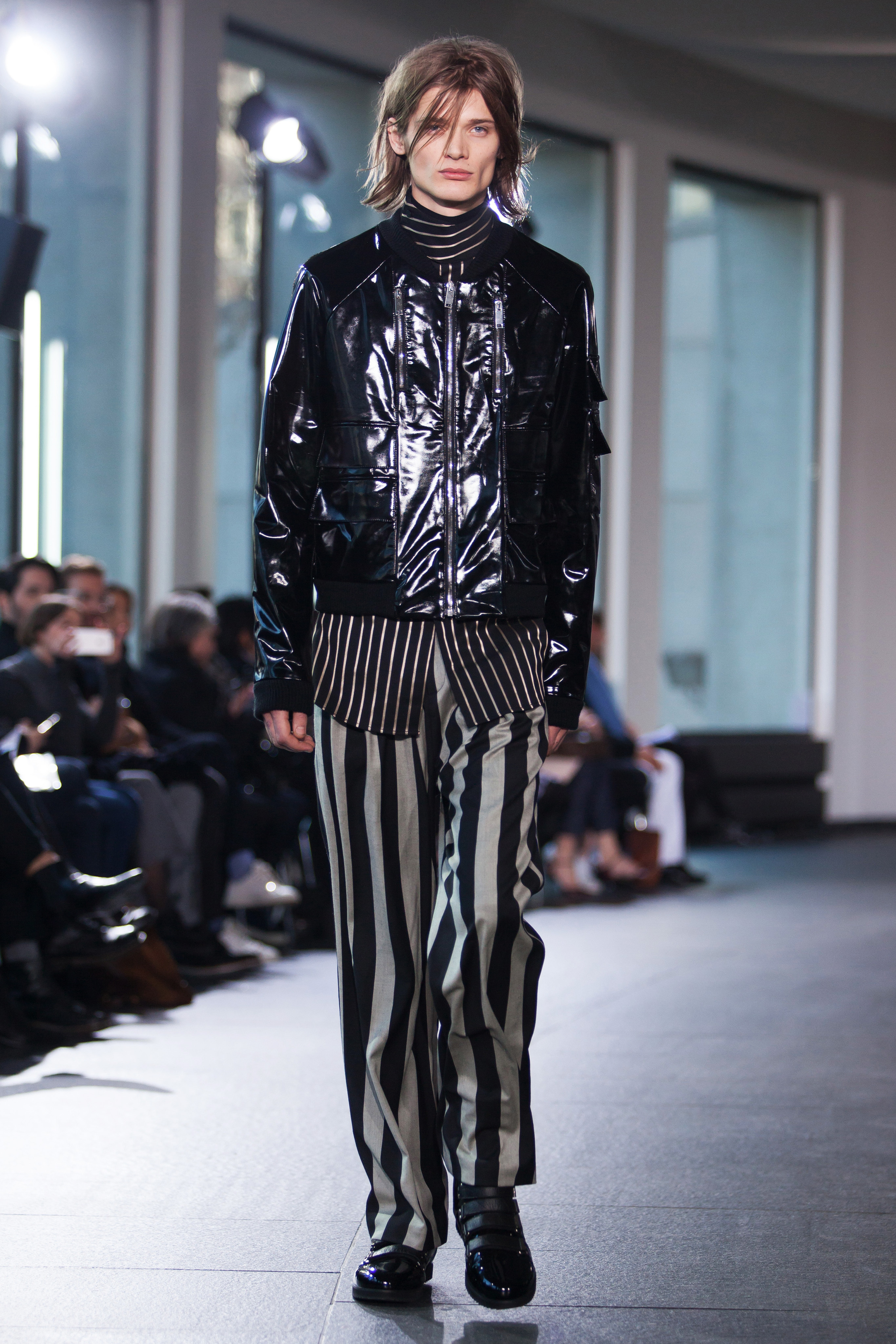The collection is a combination of sportswear and luxury tailoring. The style of the collection is quite androgynous. The pieces are nevertheless sophisticated yet urban. Coats are straight and well-tailored, while pants are looser and tightened at the ankle. Elastic ribbons flocked with the brand’s name are present on virtually every piece.