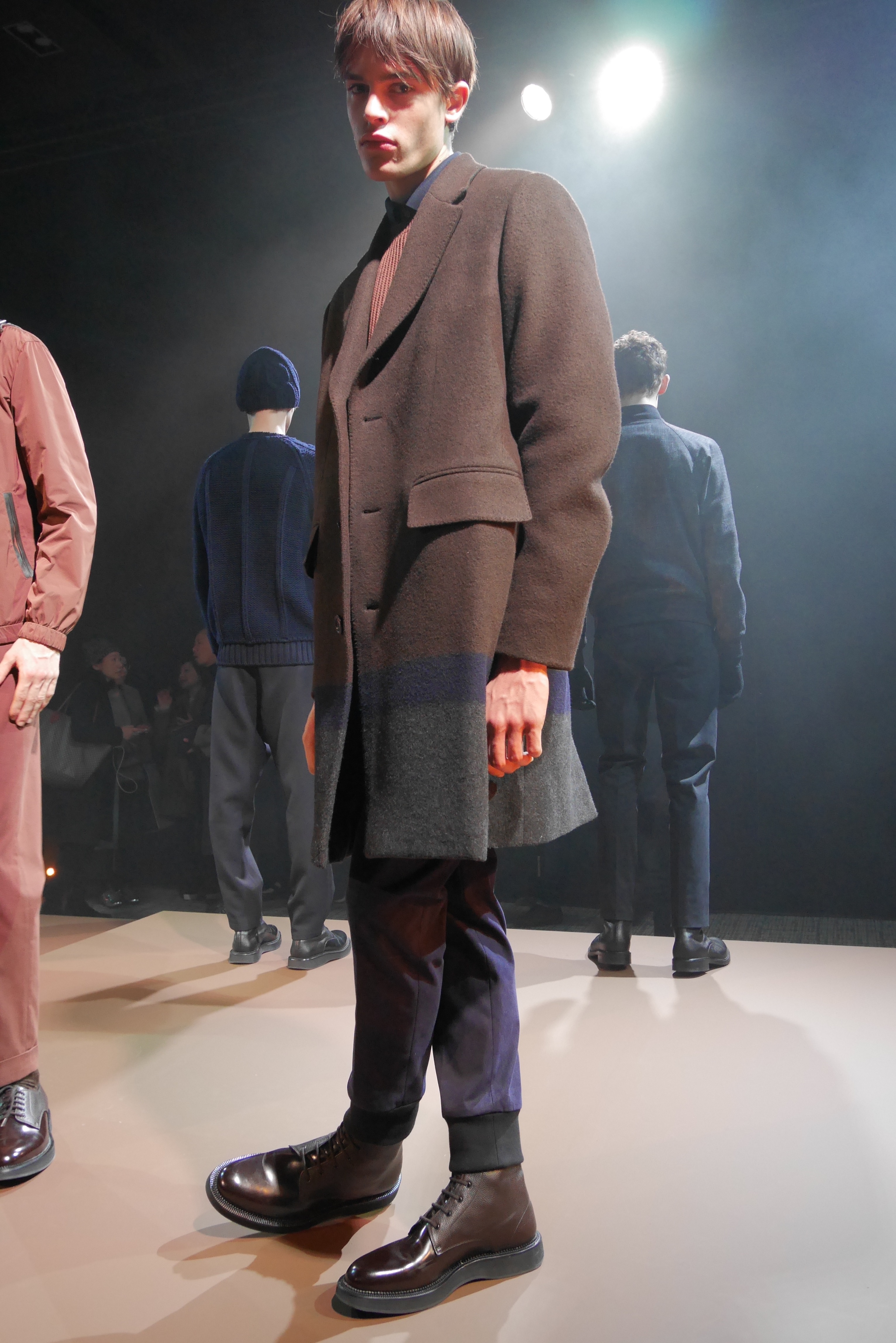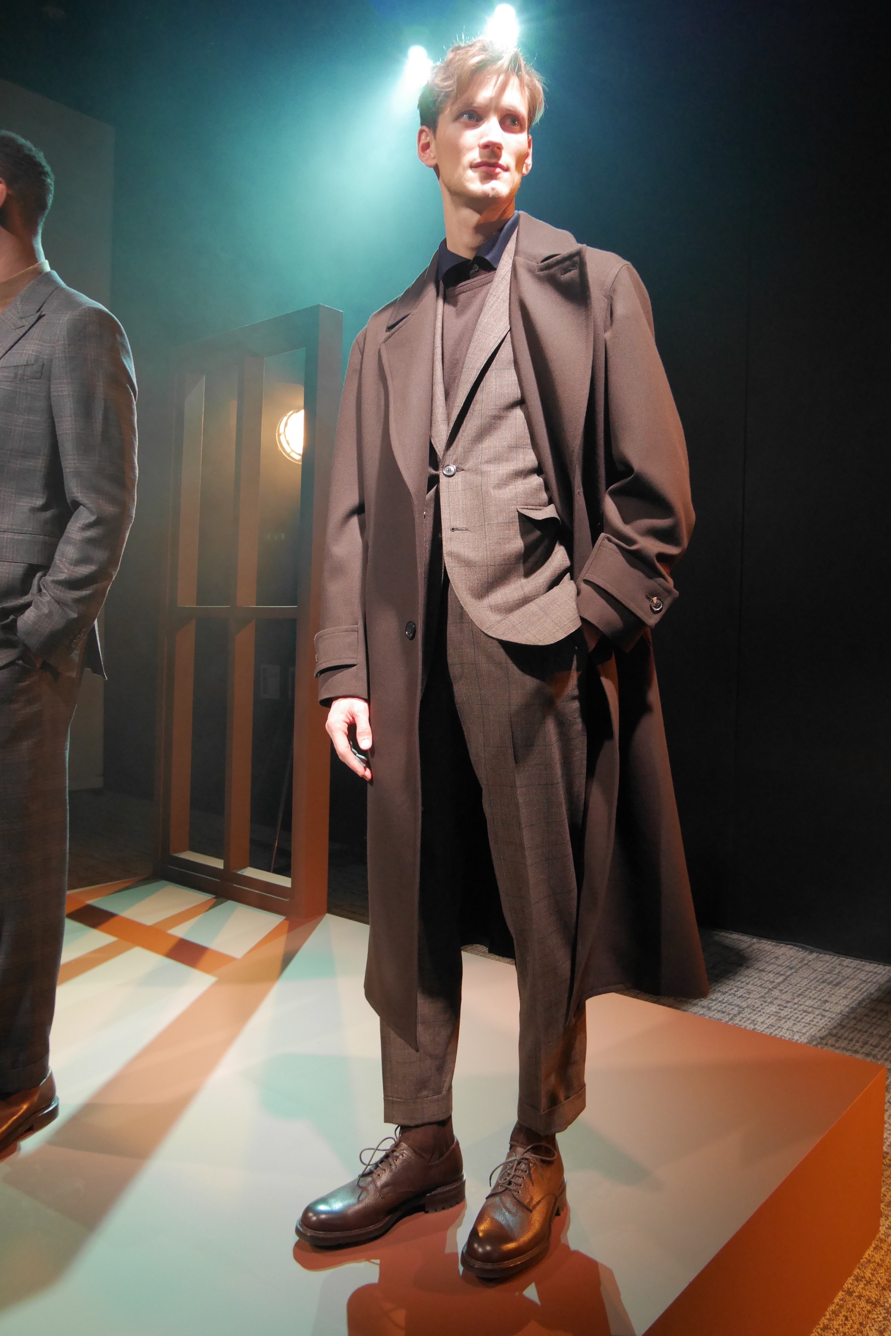 In the collection, we find many three-quarter coats or jackets that are a little more “sporty”. Pants are straight-cut, but tightened at the ankle. Nevertheless, we retain the brand’s tailoring side, with tailored suits and blazers.