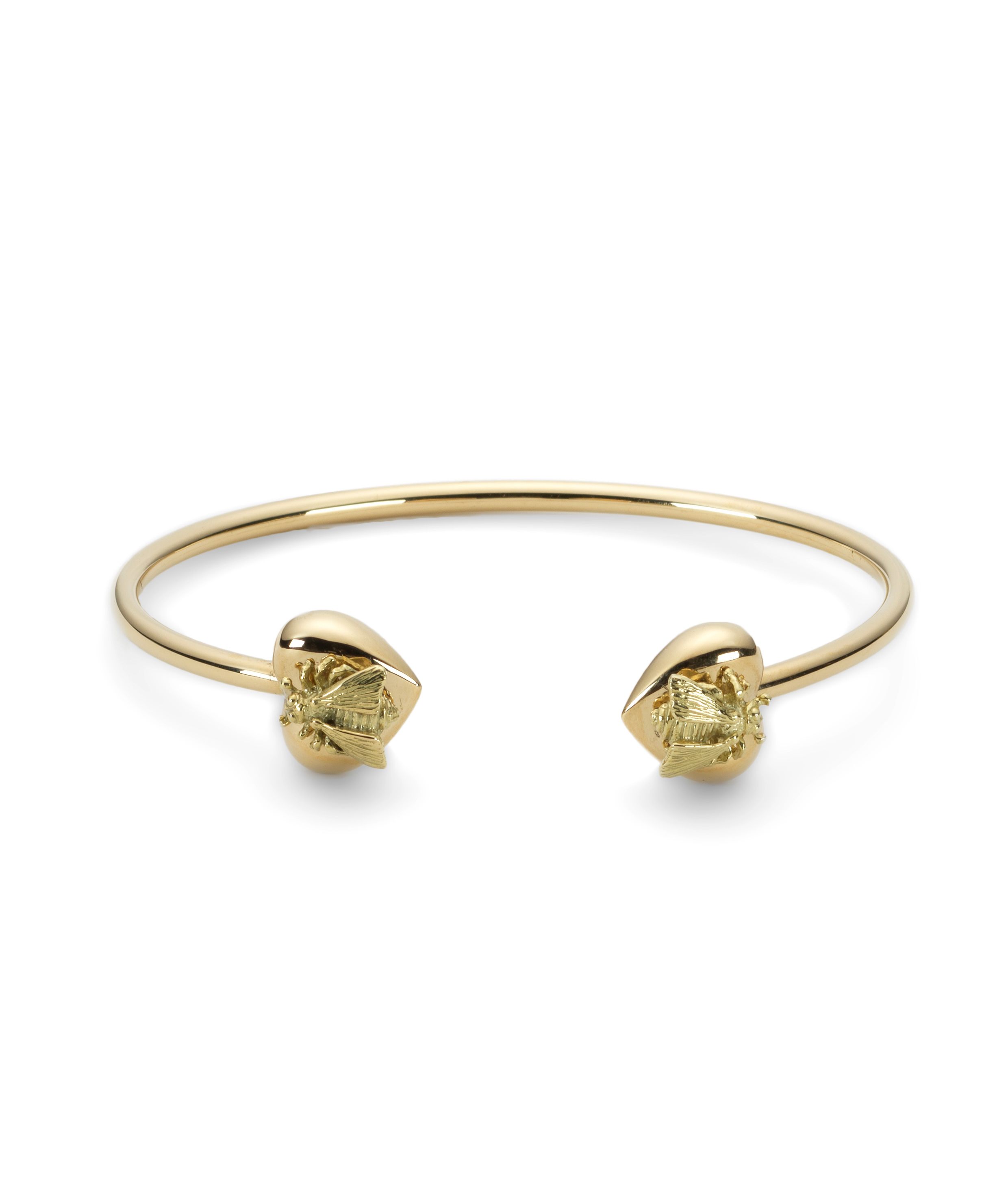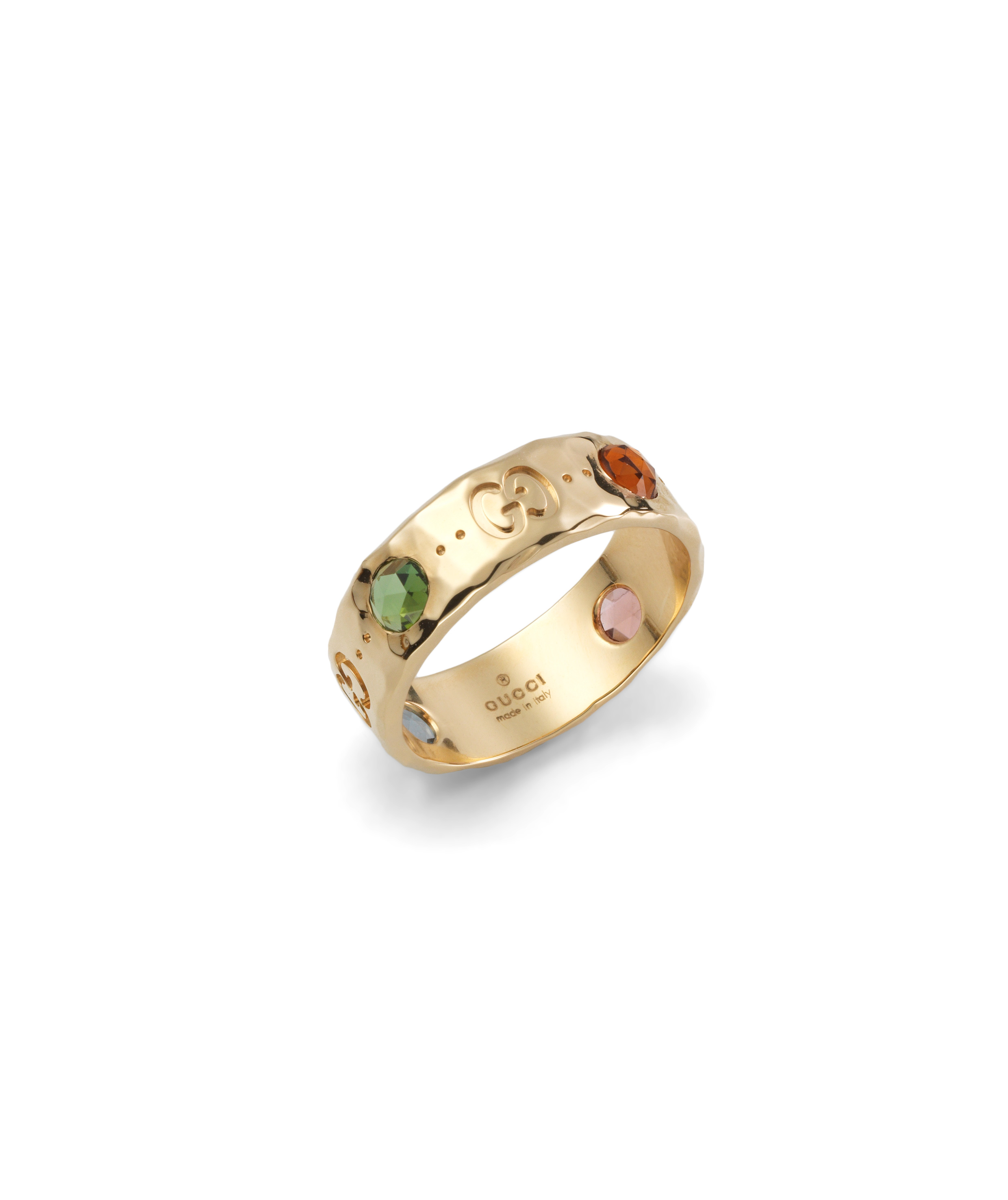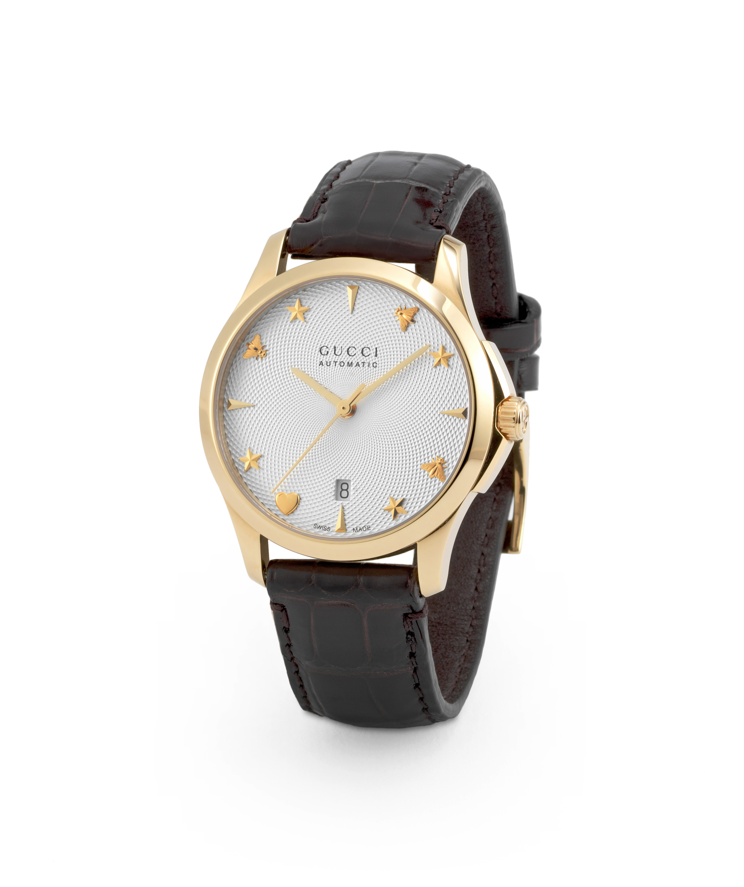 To mark the occasion, Gucci unveiled its new G-Timeless Automatic watch, which we were able to admire on Florence Welch’s wrist. This creation features an eclectic assortment of decorative motifs such as bees, a heart and stars. Combining Alessandro Michele’s astonishing, overflowing creativity with Swiss luxury watchmaking expertise, the G-Timeless Automatic watch showcases the new motifs the designer is developing for Gucci’s watchmaking universe. To express her personal taste for eclecticism, Florence Welch also chose a bracelet and several rings from Gucci’s Icon, Le Marché des Merveilles and Flora jewelry collections. She wears rings in 18-carat yellow and pink gold, all set with gemstones, diamonds or the House’s new motifs, which she pairs with a rigid bracelet in yellow gold decorated with a bee. The juxtaposition of rings and different metals creates a vintage look that perfectly matches Florence Welch’s eccentric style.