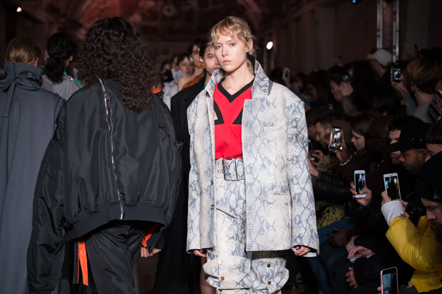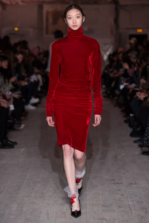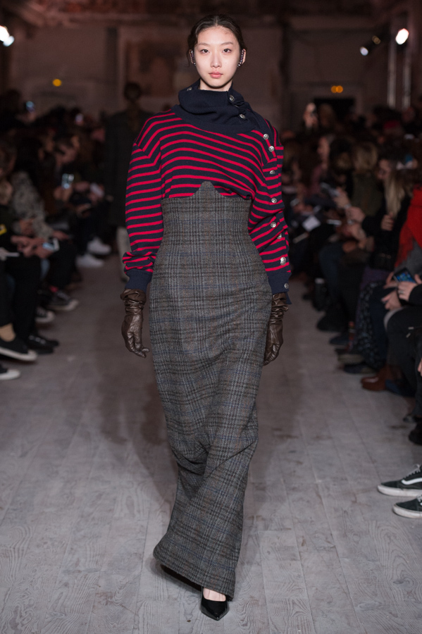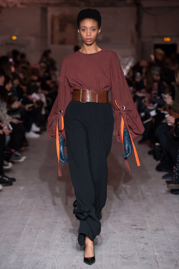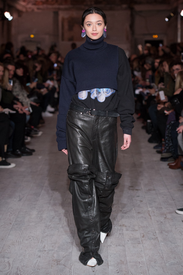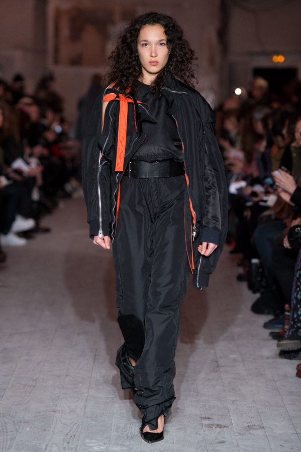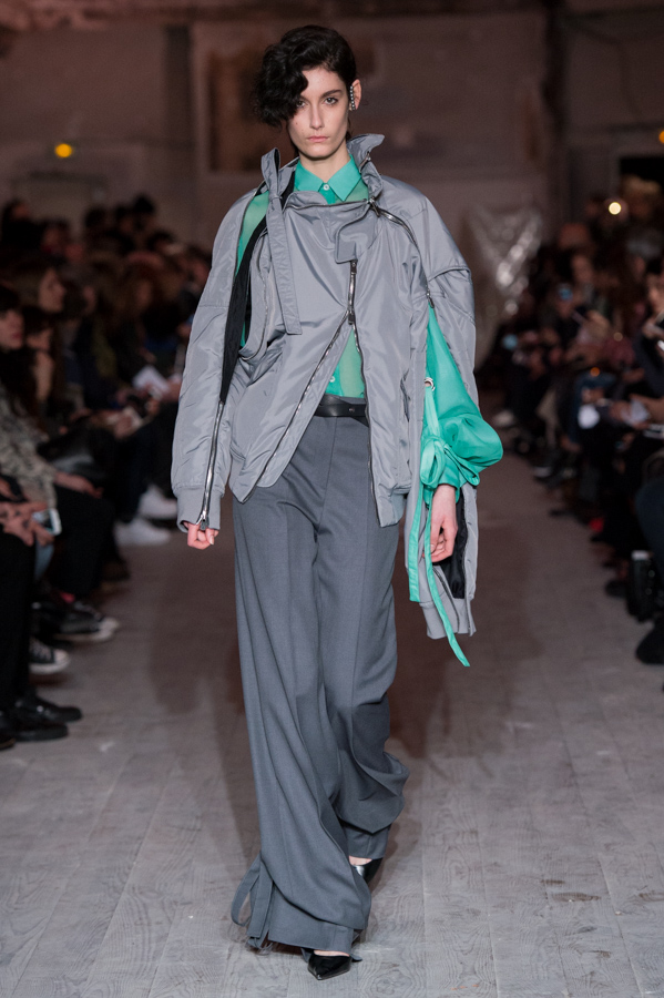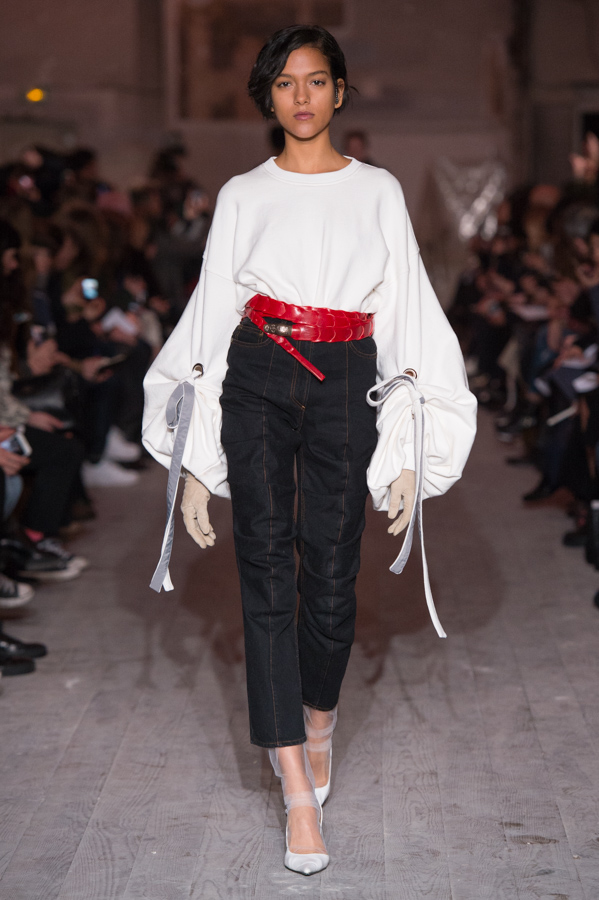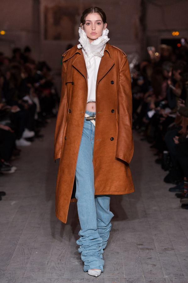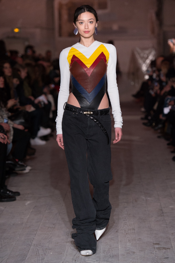First women’s collection for Glenn Martens. A strong collection which marks the spirits by its industrial side but so feminine. Inspired by the subculture, he plays with the shapes of his jackets, he plays with the size of his jeans and sleeves. An elegant, feminine yet underground collection. The color palette is wide: gray, pastels, white but also red and yellow.