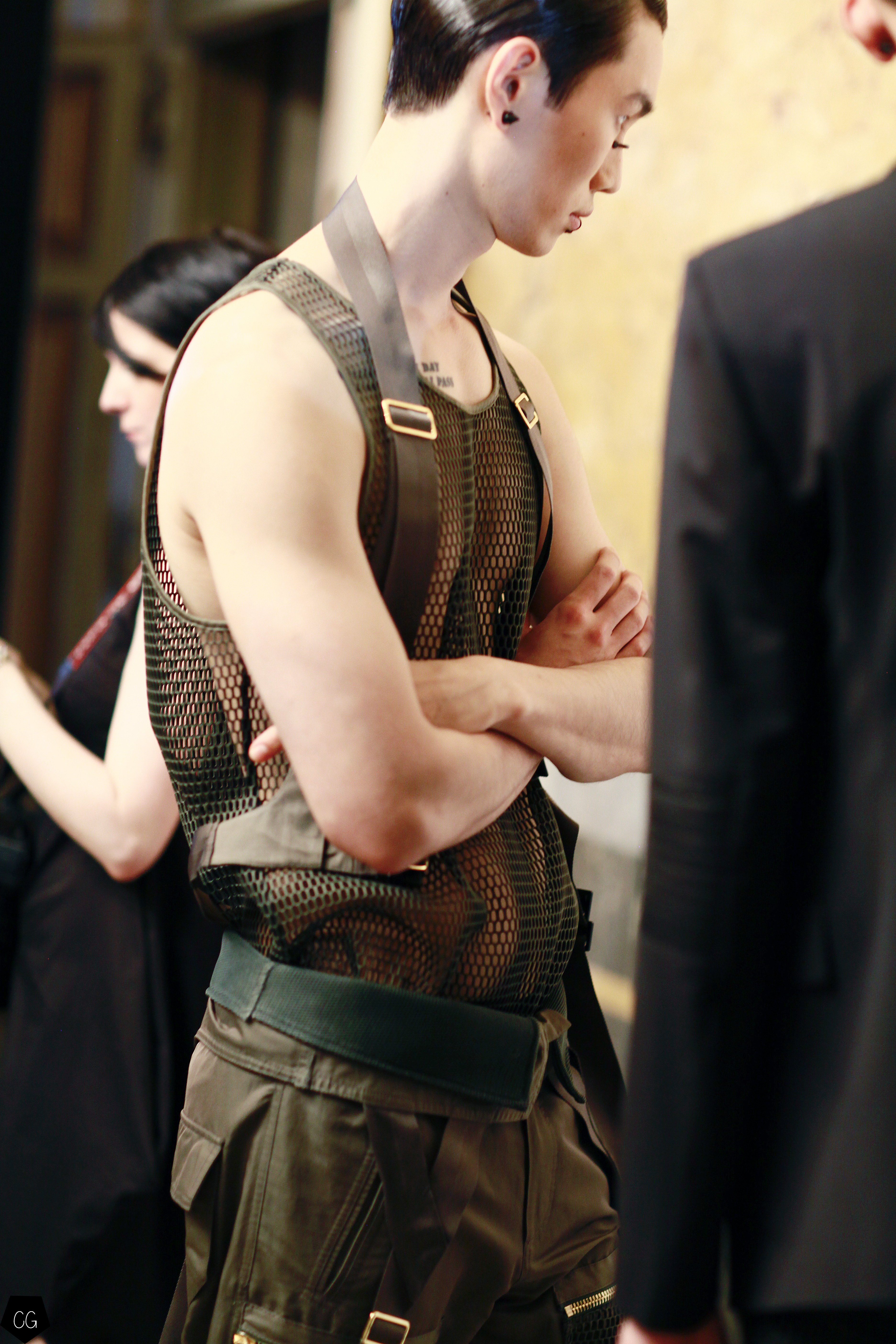 Pants are short with large pockets to suit subtropical forests. Trompe l’oeil decorations are used. Accessories and jewelry are tribal or military.