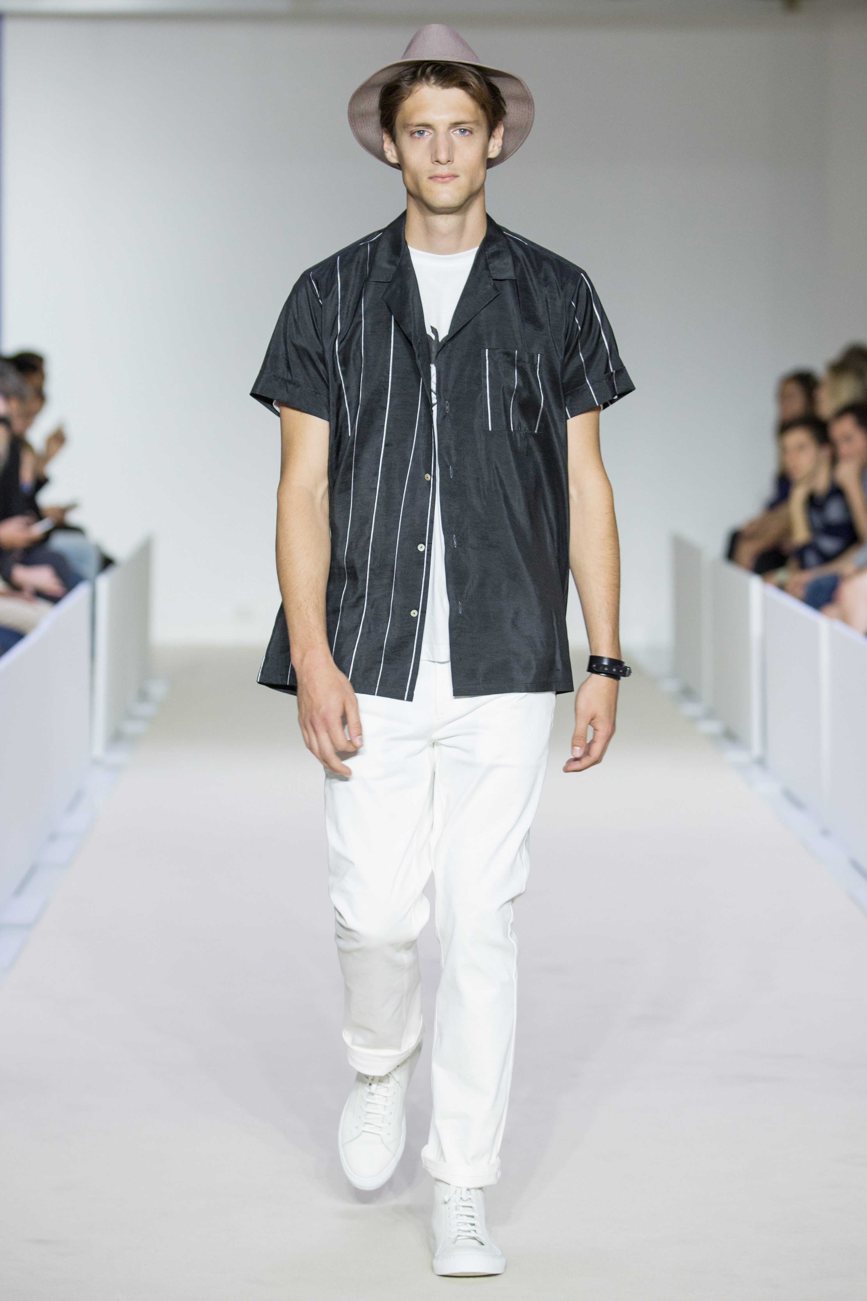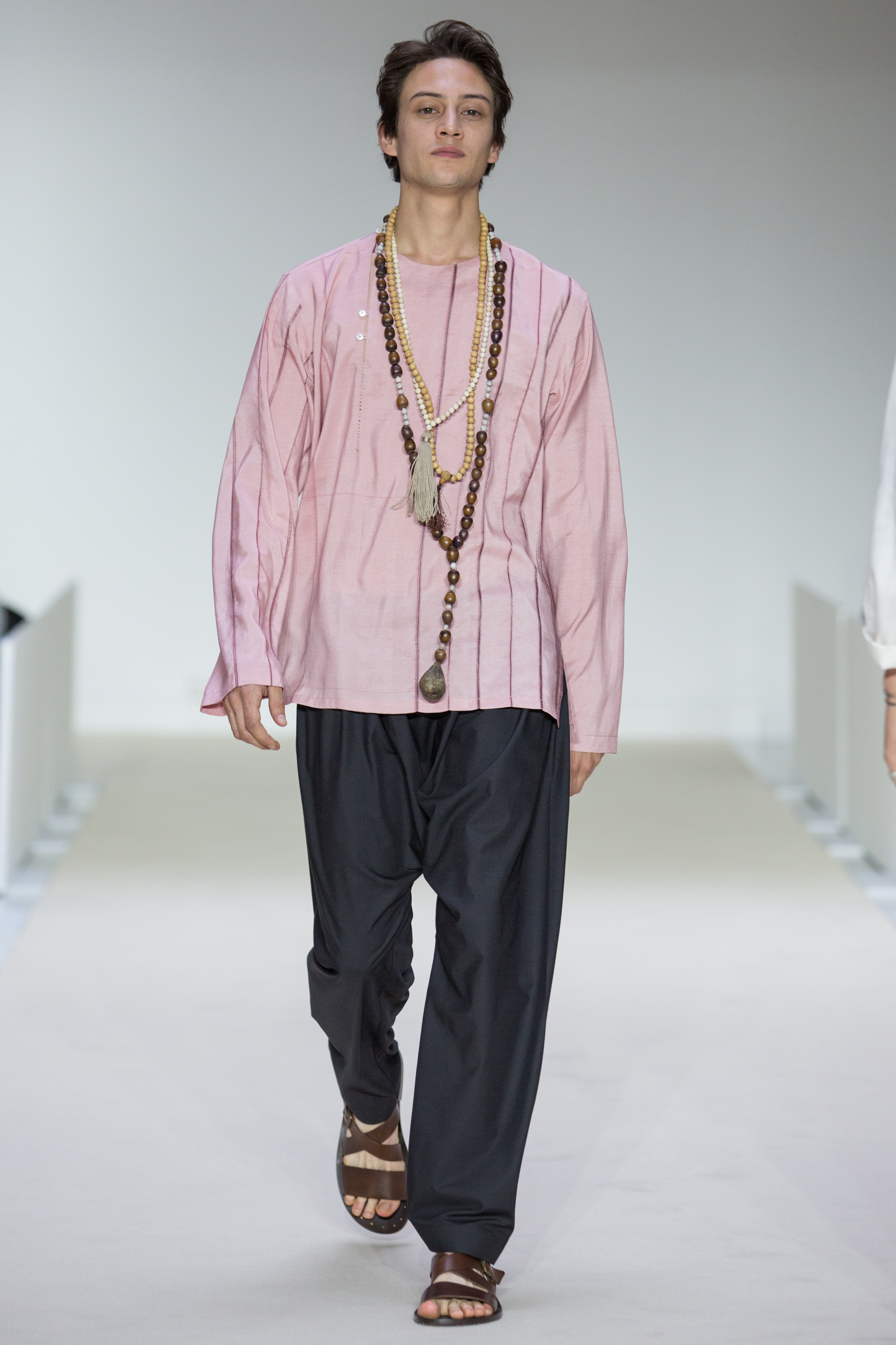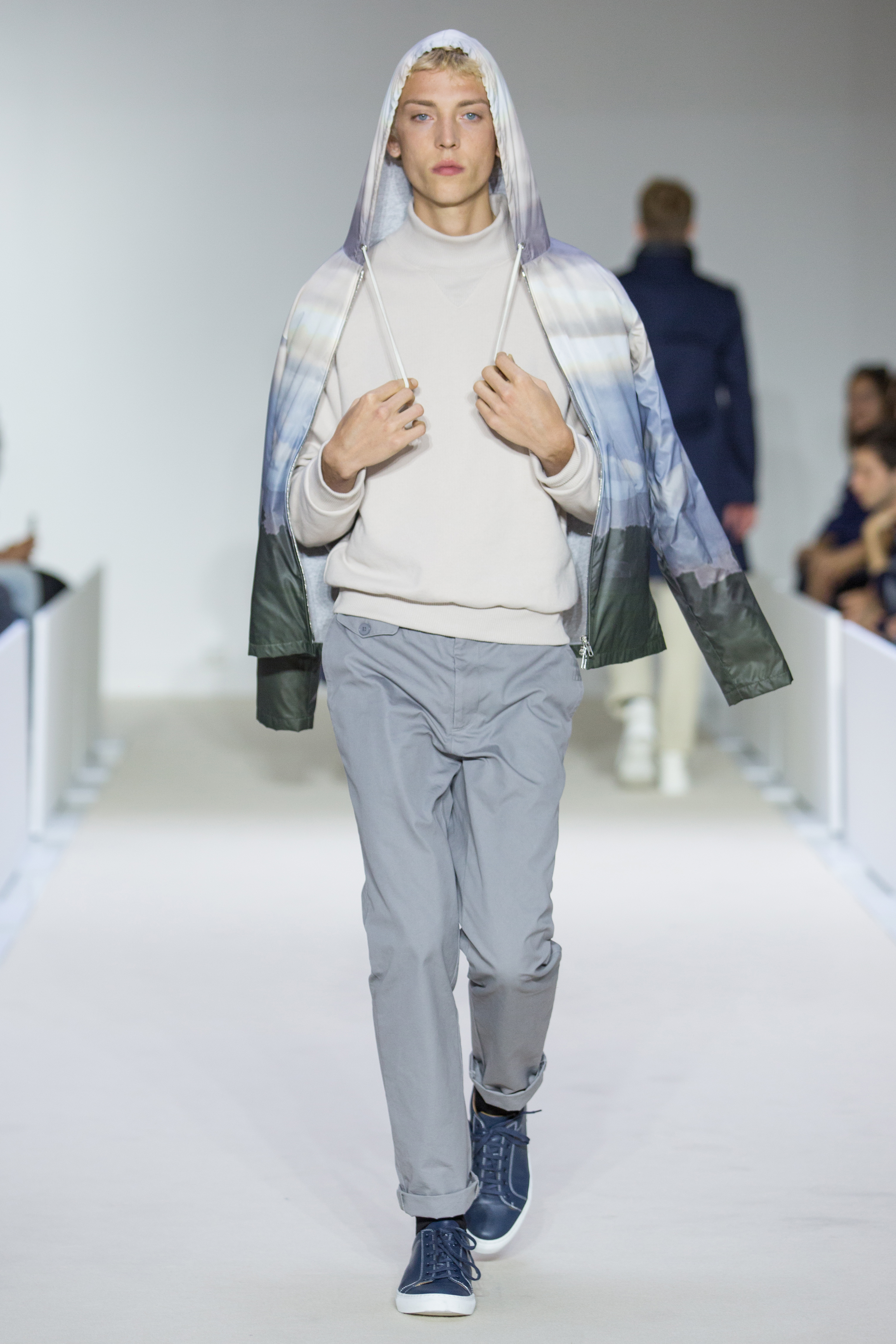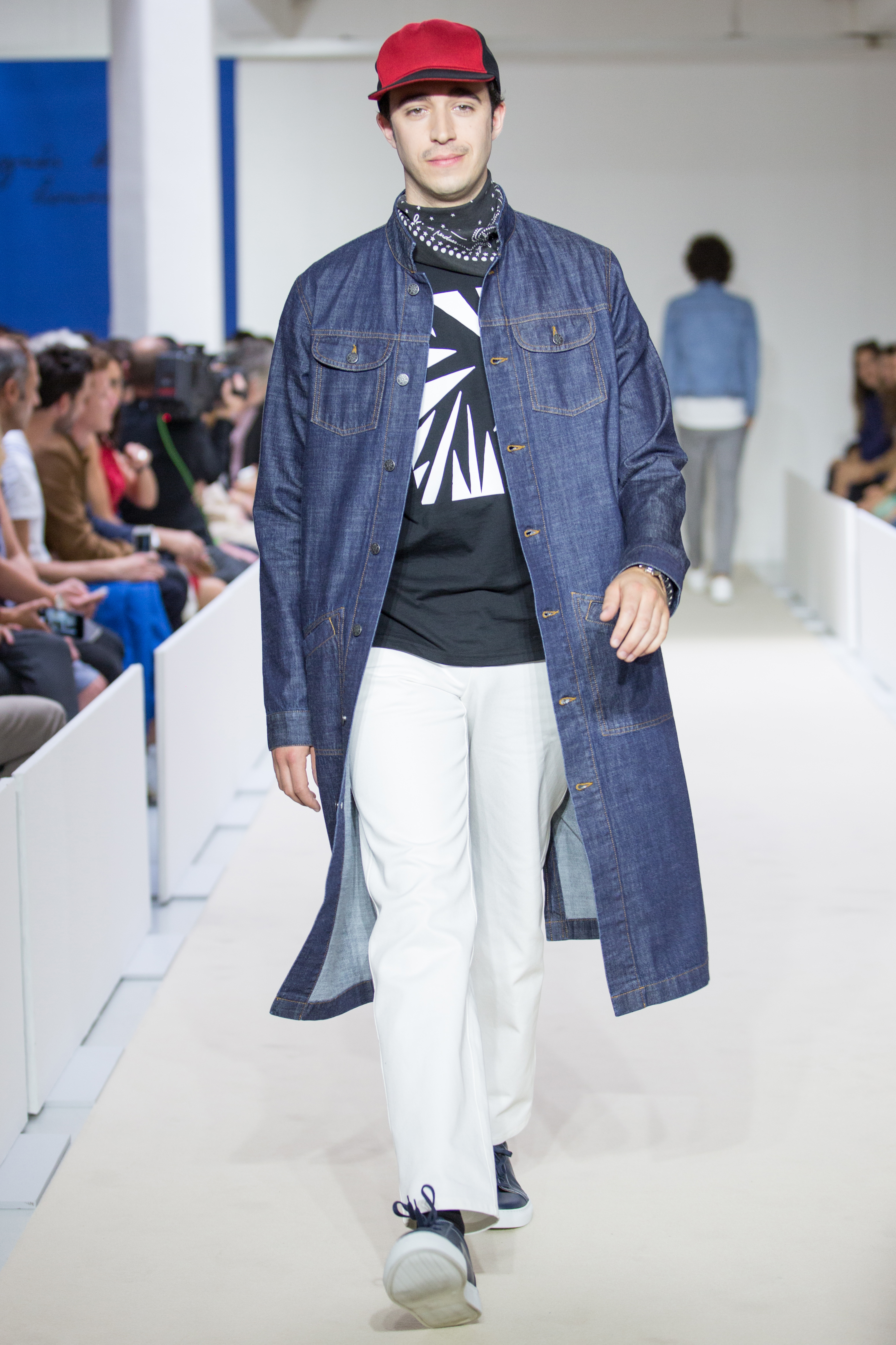 Agnès B presents a multi-influenced Spring Summer 2017 men’s collection true to its designer. The first part is dedicated to the brand’s collaboration with Afghan designer Zolaykha Sherzad, who proposes a contemporary theme inspired by local traditions. Through this partnership, Agnès B is committed to supporting this young fashion house, which employs women and men in Afghanistan. We then return to Paris with a second, very urban movement. Here we find the Parisian: cynical, kind, nasty, moody. For the third part, we’re thrown right into the Wild West with cowboy-inspired outfits signed in partnership with Adrien Beau.