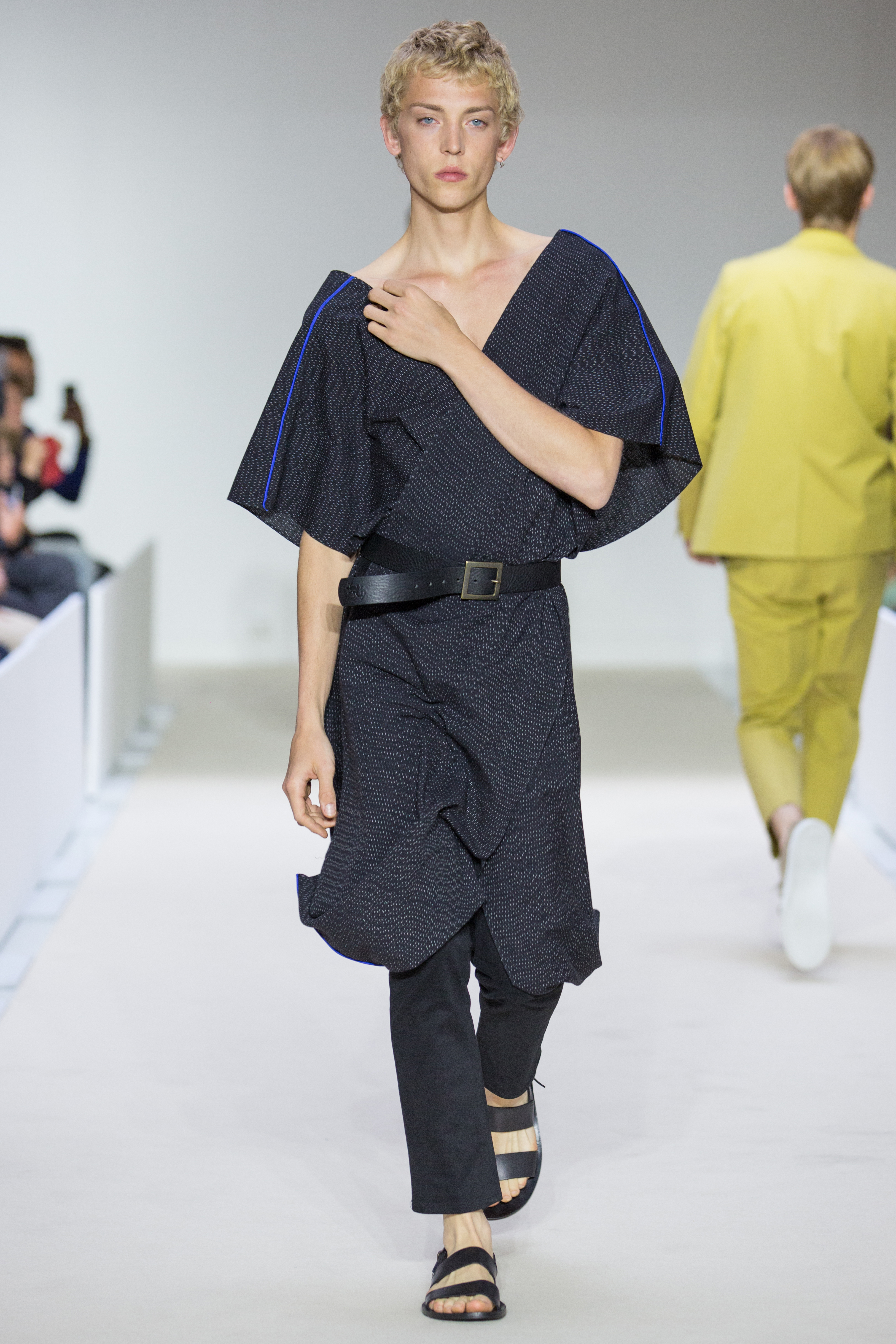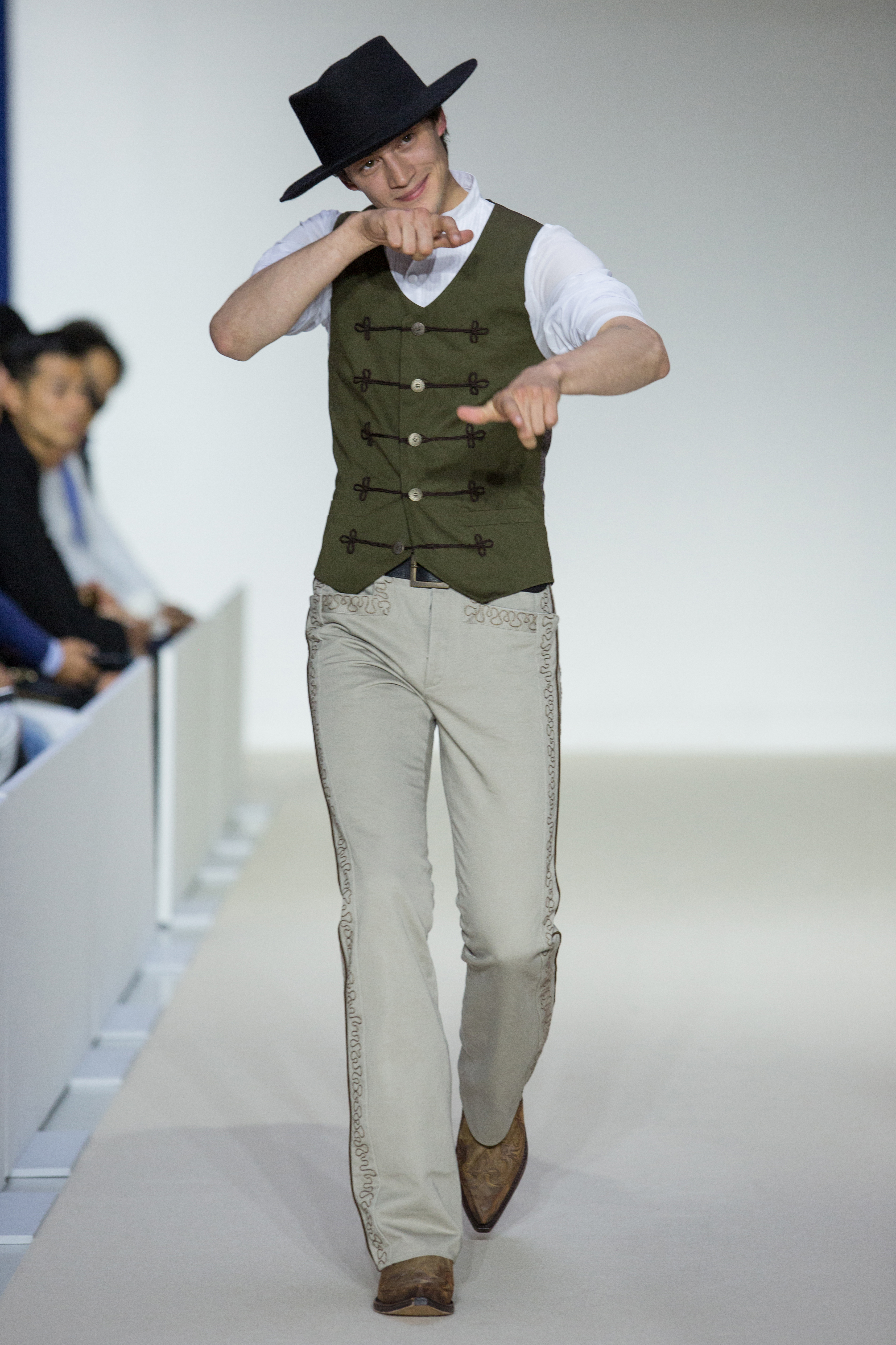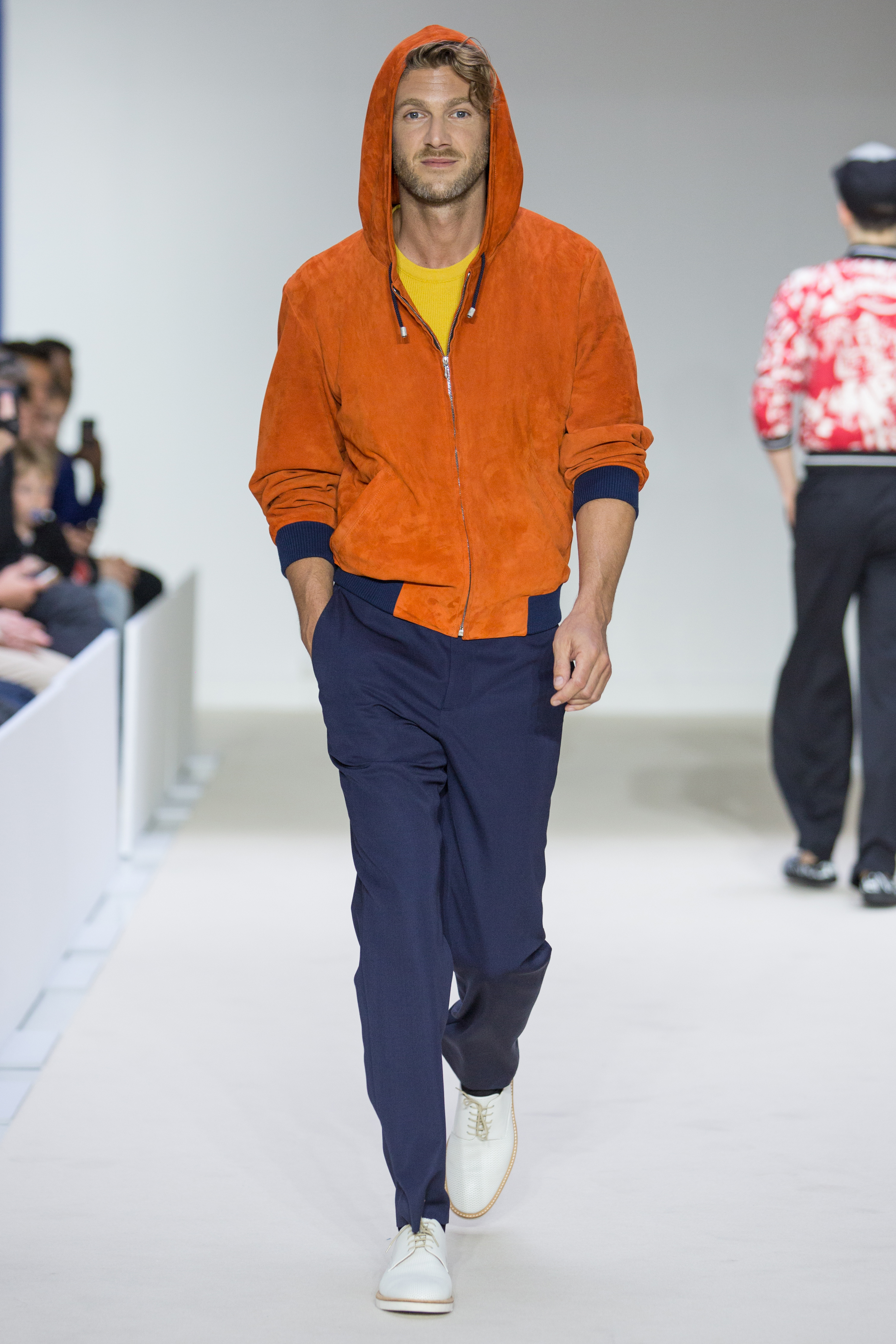 Agnès B presents a multi-influenced Spring Summer 2017 men’s collection true to its designer. The first part is dedicated to the brand’s collaboration with Afghan designer Zolaykha Sherzad, who proposes a contemporary theme inspired by local traditions. Through this partnership, Agnès B is committed to supporting this young fashion house, which employs women and men in Afghanistan. We then return to Paris with a second, very urban movement. Here we find the Parisian: cynical, kind, nasty, moody. For the third part, we’re thrown right into the Wild West with cowboy-inspired outfits signed in partnership with Adrien Beau.