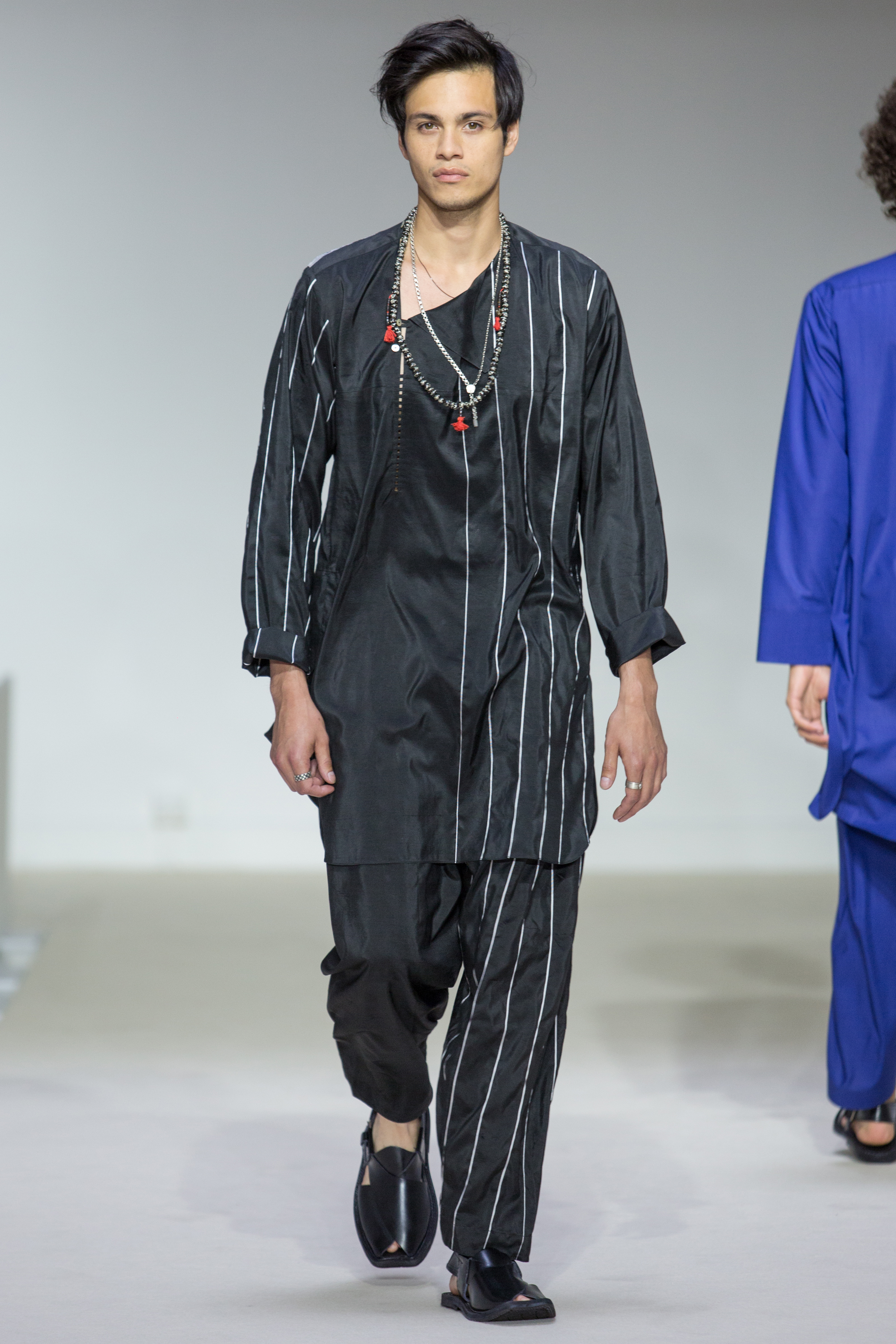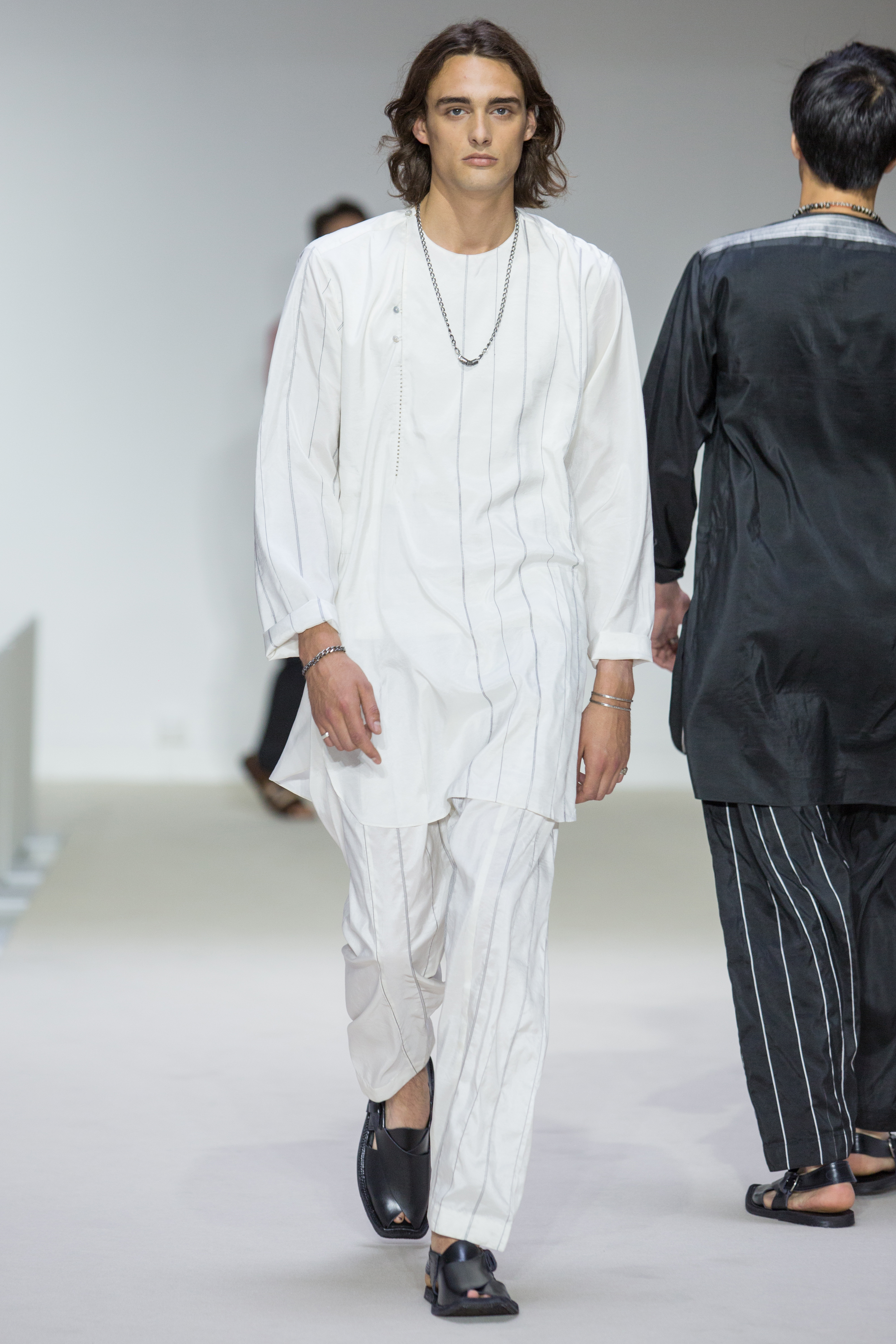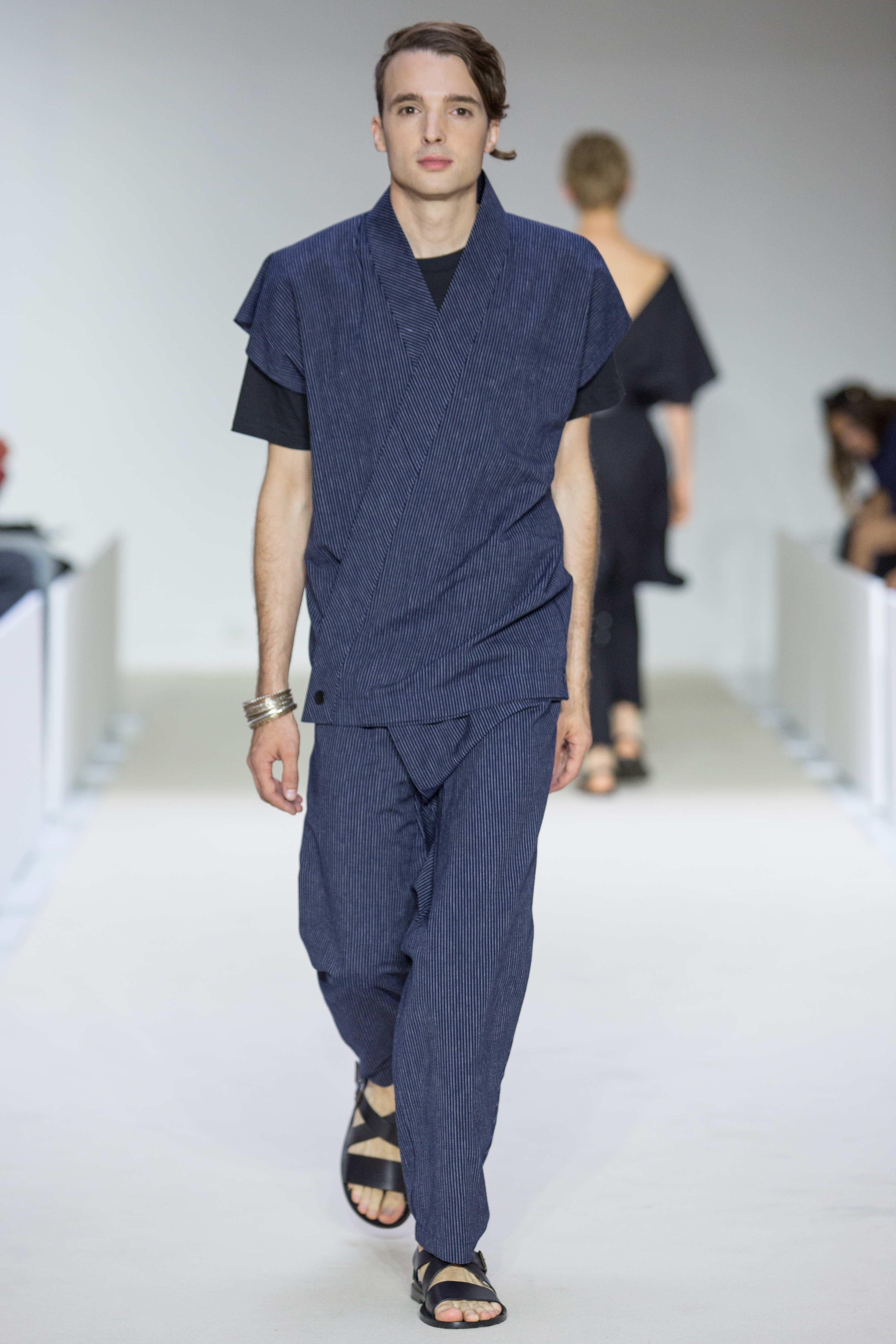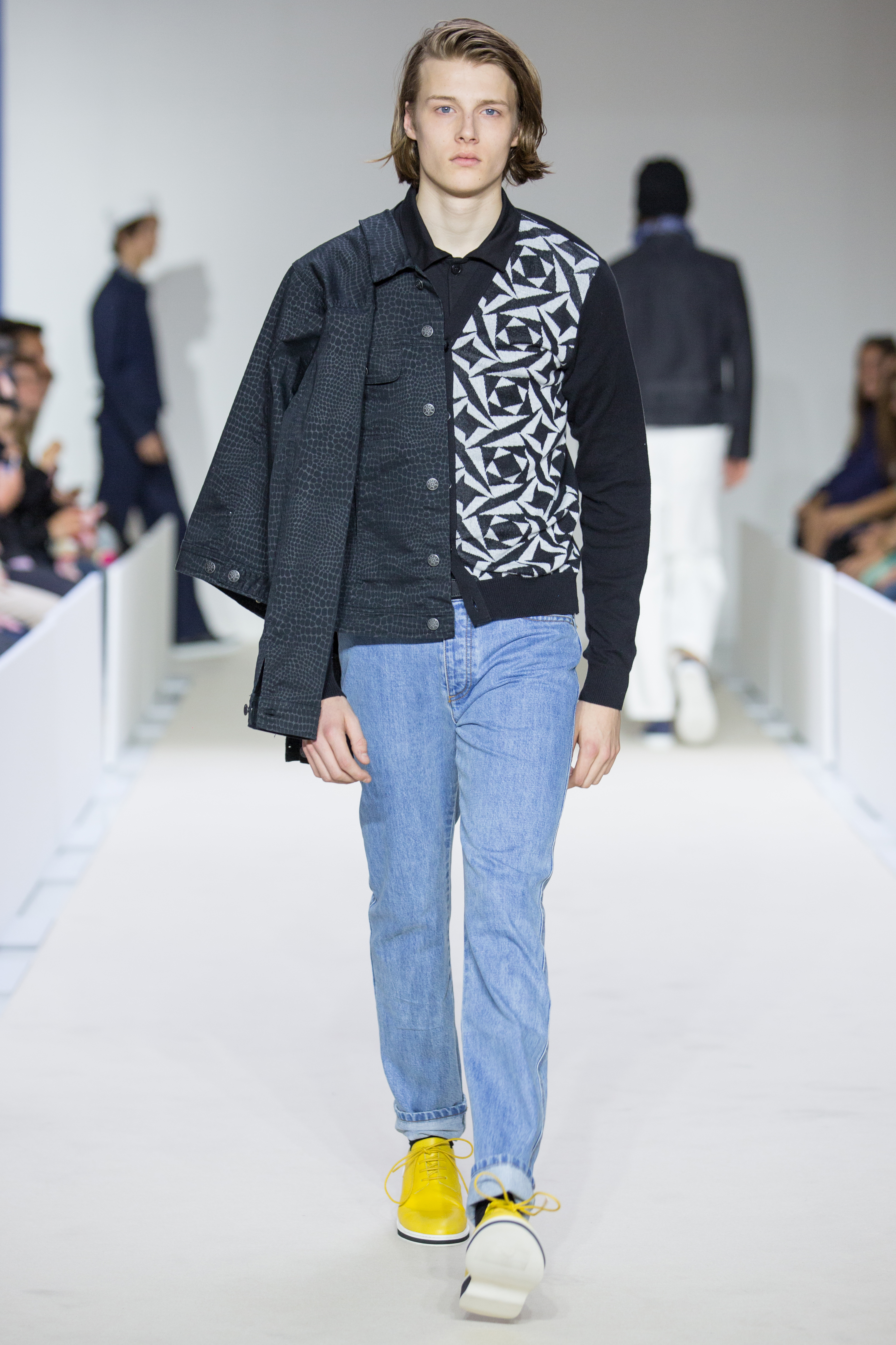 Agnès B presents a multi-influenced Spring Summer 2017 men’s collection true to its designer. The first part is dedicated to the brand’s collaboration with Afghan designer Zolaykha Sherzad, who proposes a contemporary theme inspired by local traditions. Through this partnership, Agnès B is committed to supporting this young fashion house, which employs women and men in Afghanistan. We then return to Paris with a second, very urban movement. Here we find the Parisian: cynical, kind, nasty, moody. For the third part, we’re thrown right into the Wild West with cowboy-inspired outfits signed in partnership with Adrien Beau.