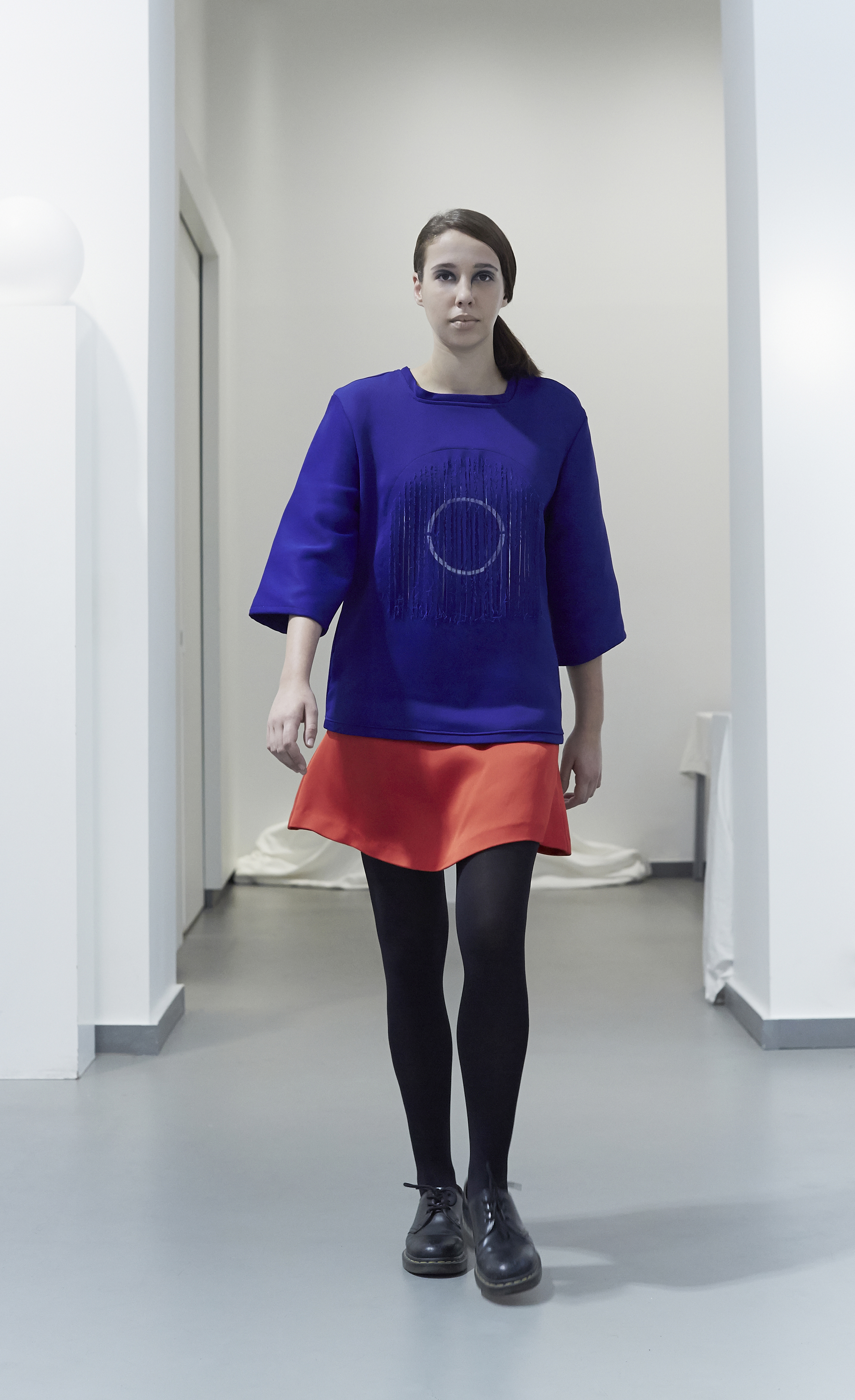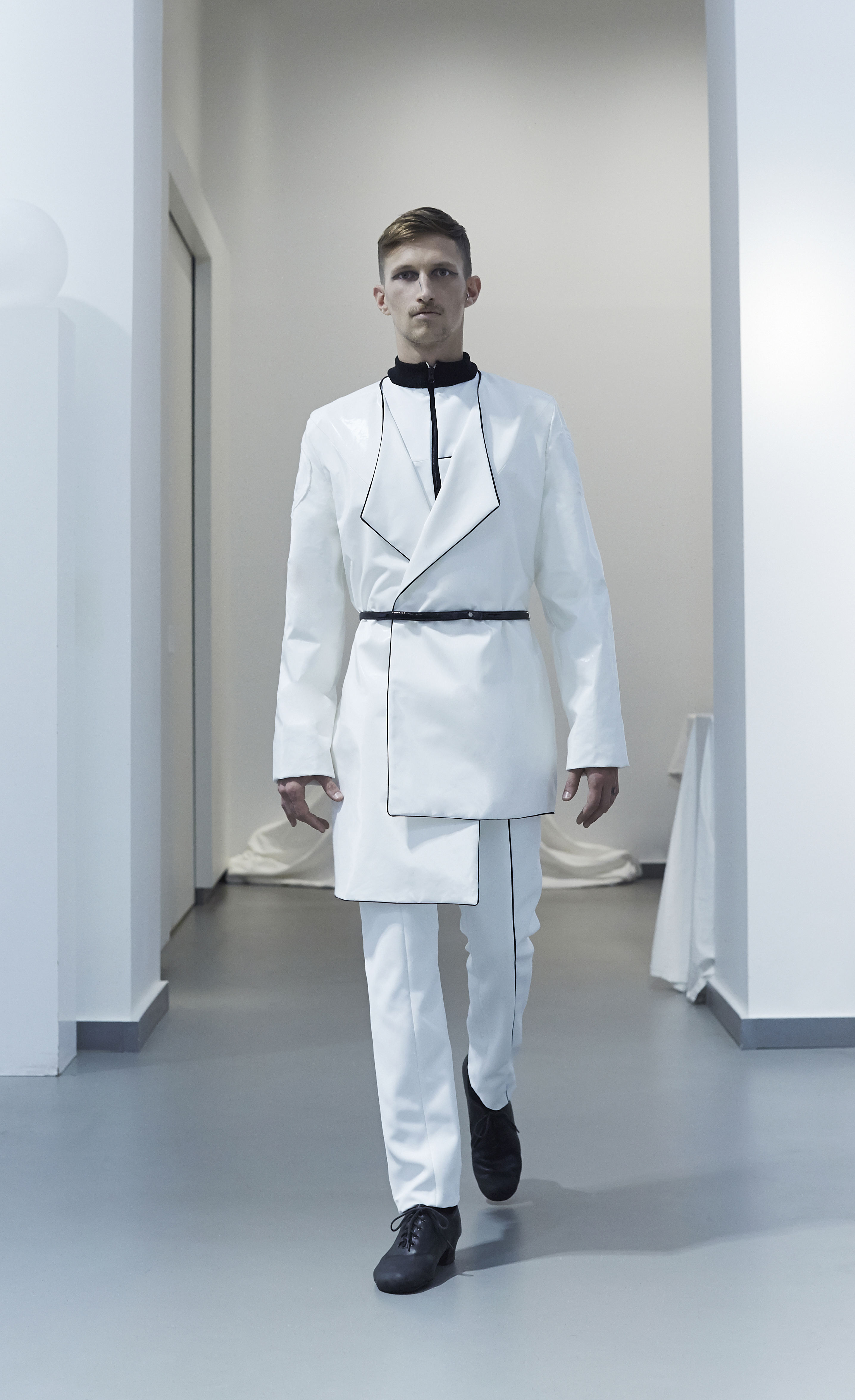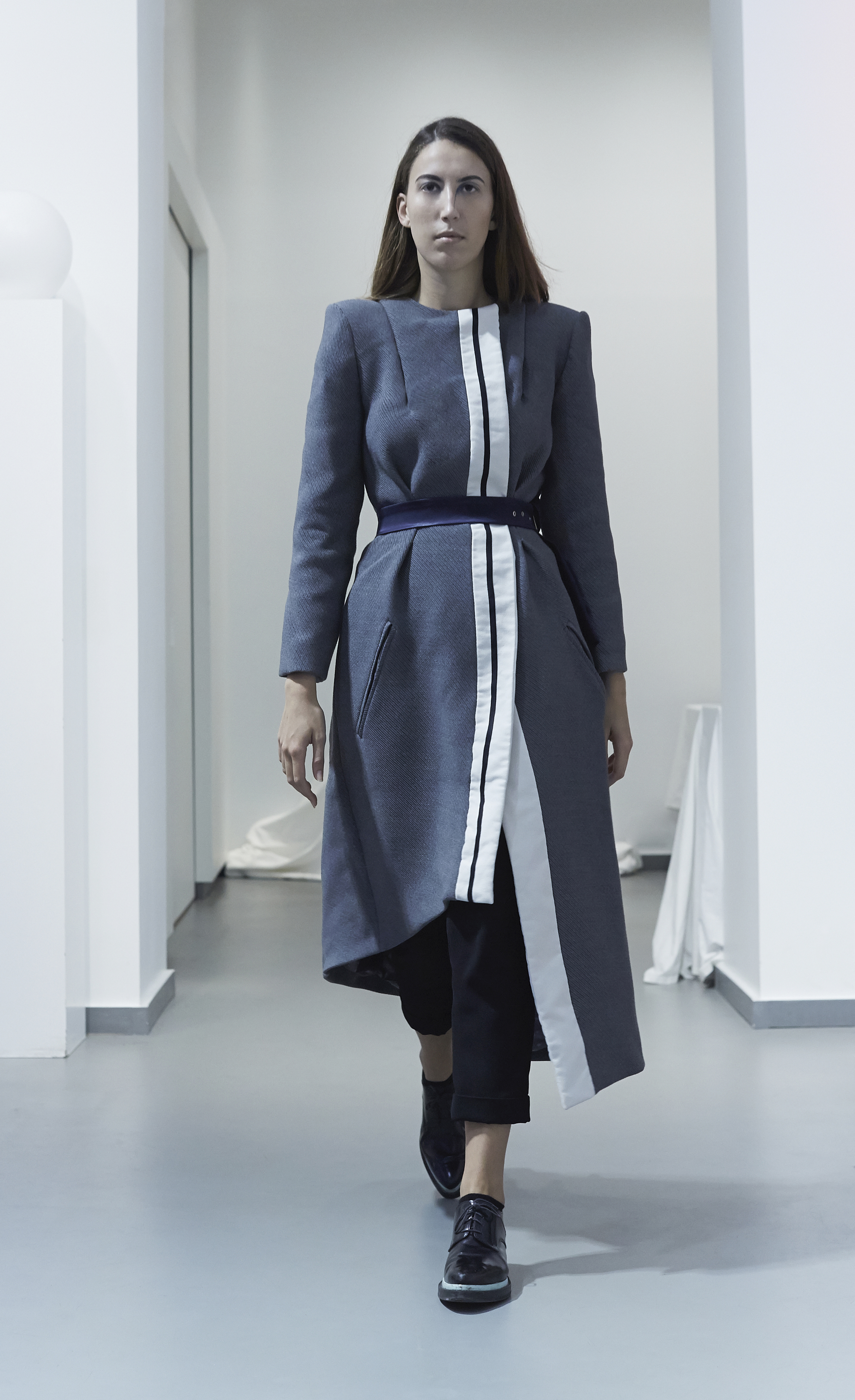 Fluid materials, jersey, wool and coated cotton symbolize our earthly extraction, while waterproof technical fabrics from the sportswear world and metallic finishes evoke our propensity to turn to the sciences, approaching the construction of celestial objects.