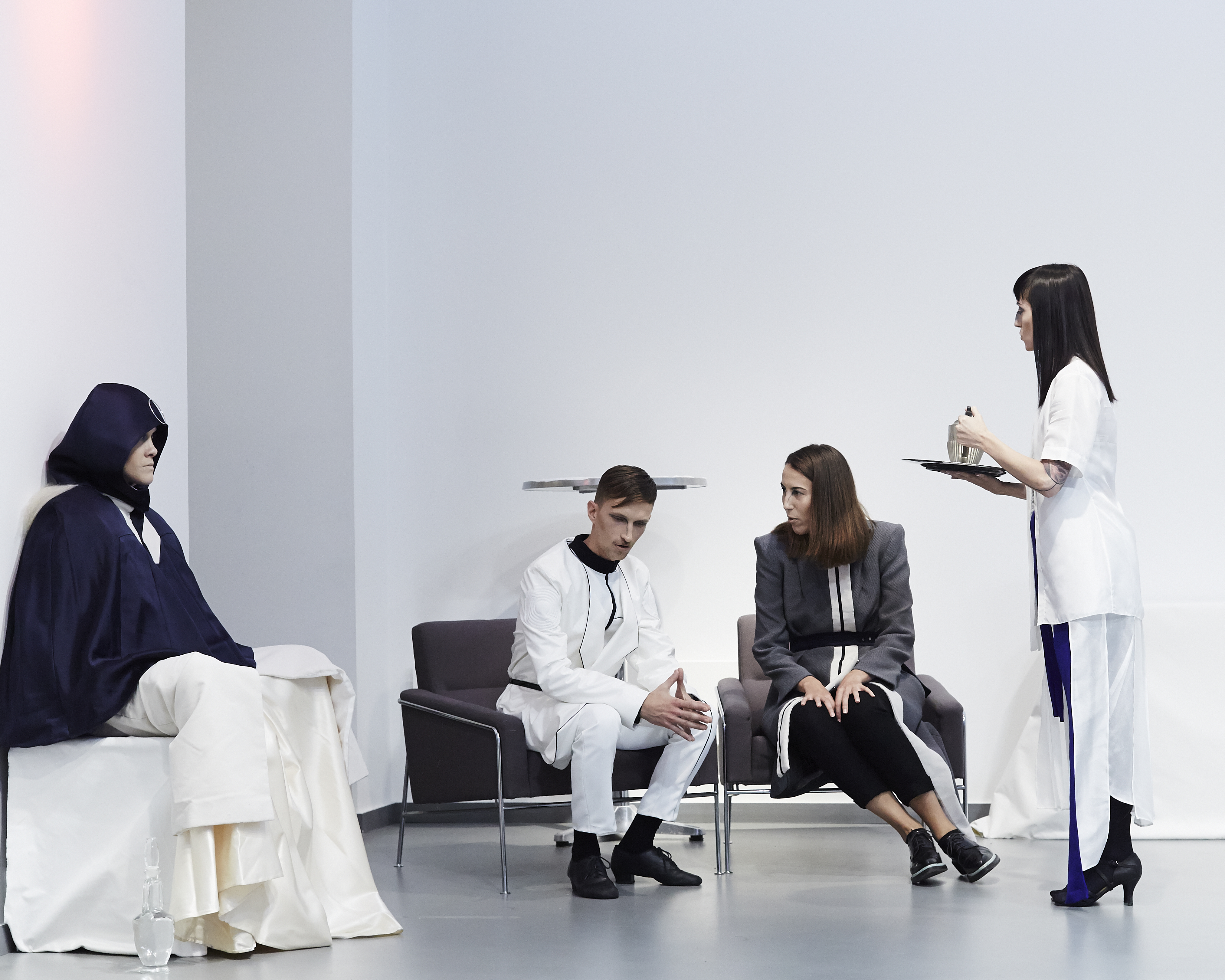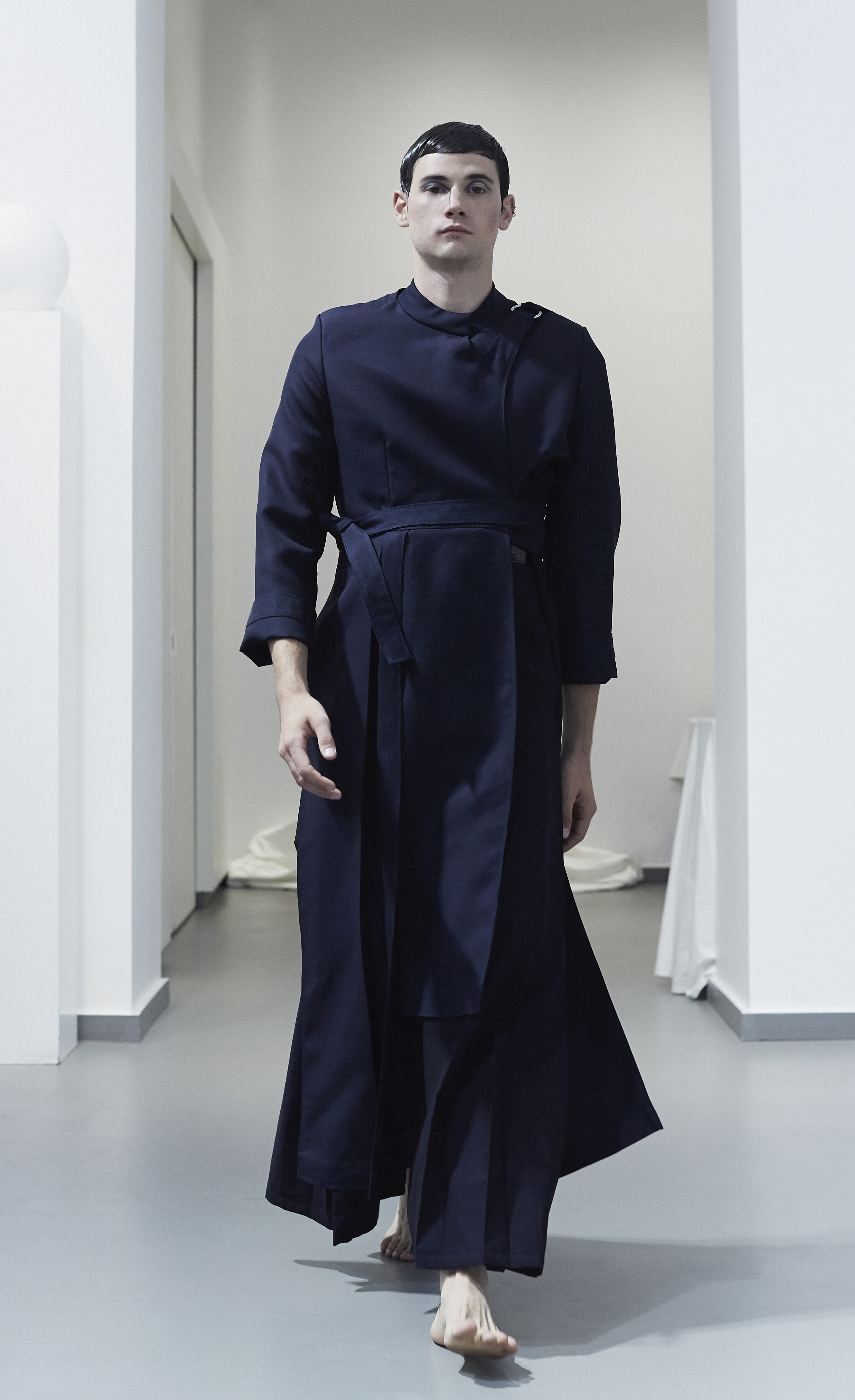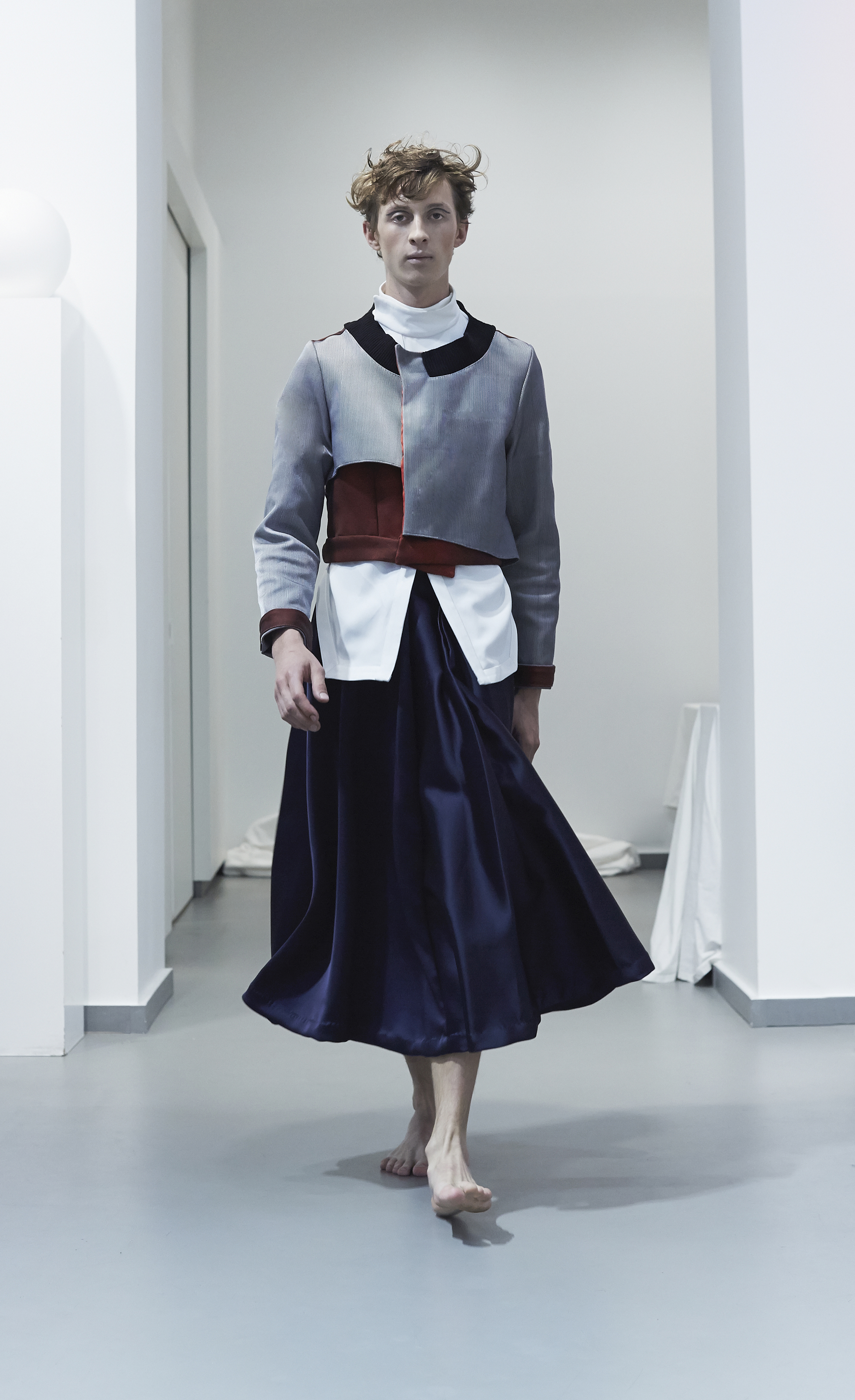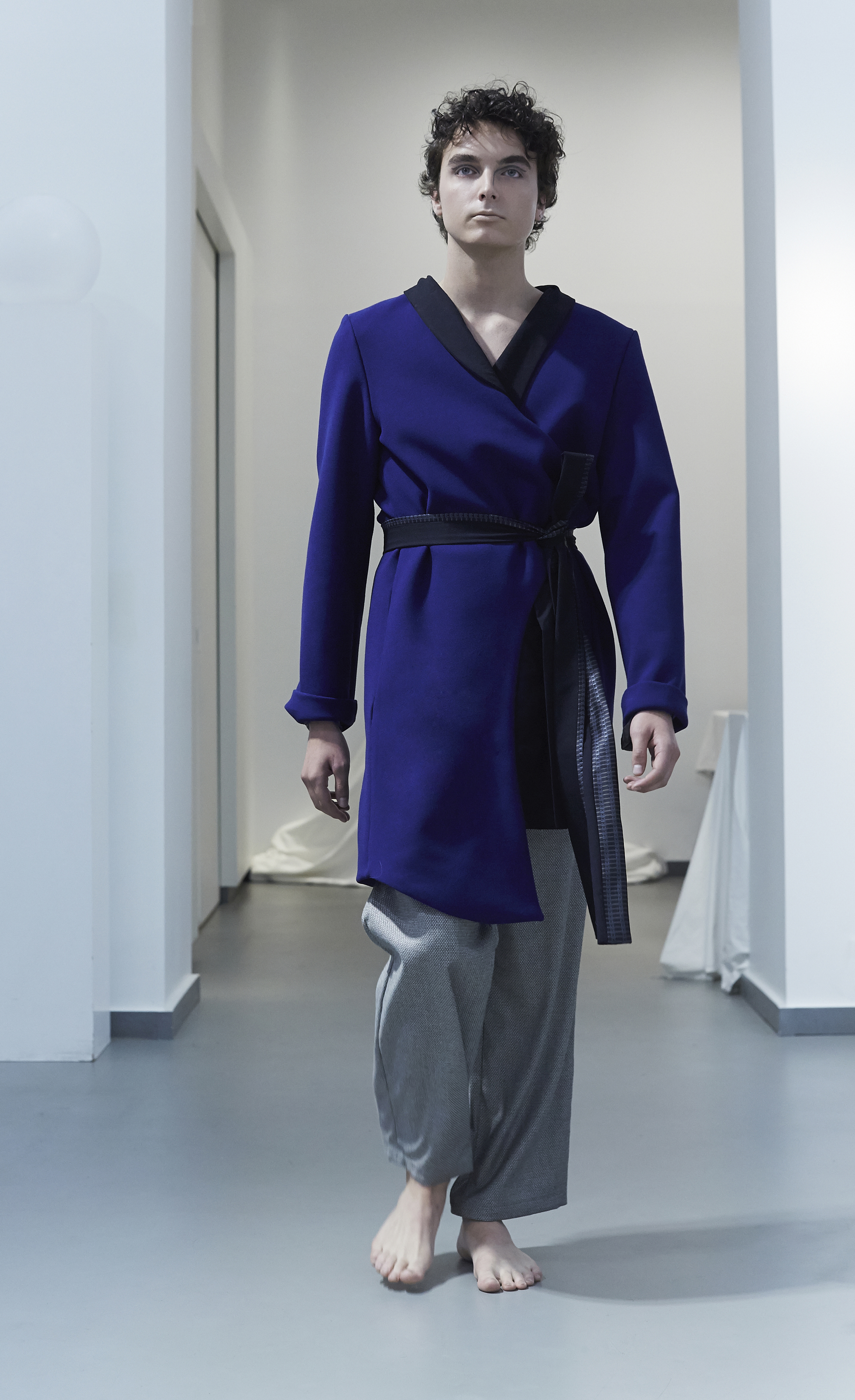 Fluid materials, jersey, wool and coated cotton symbolize our earthly extraction, while waterproof technical fabrics from the sportswear world and metallic finishes evoke our propensity to turn to the sciences, approaching the construction of celestial objects.