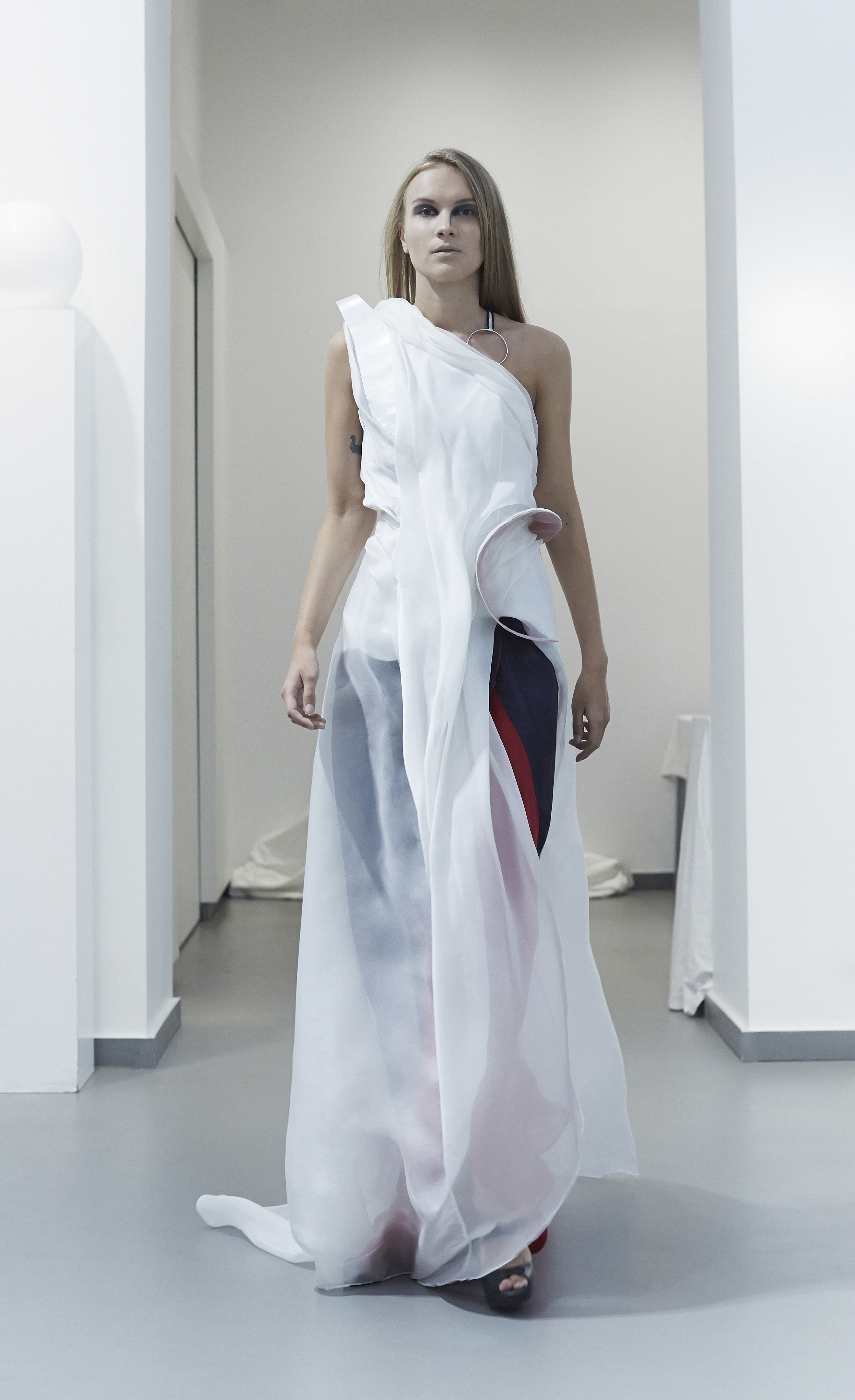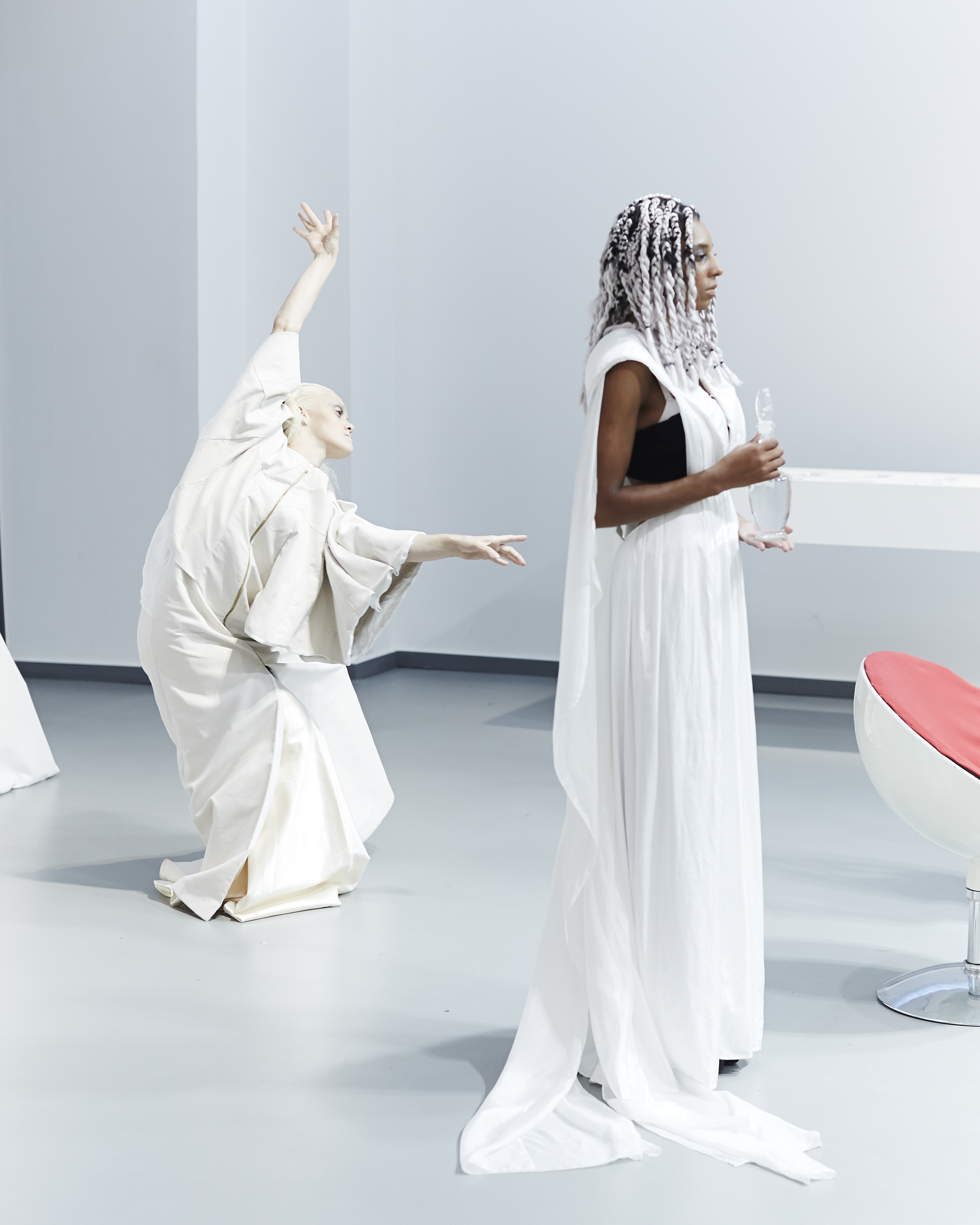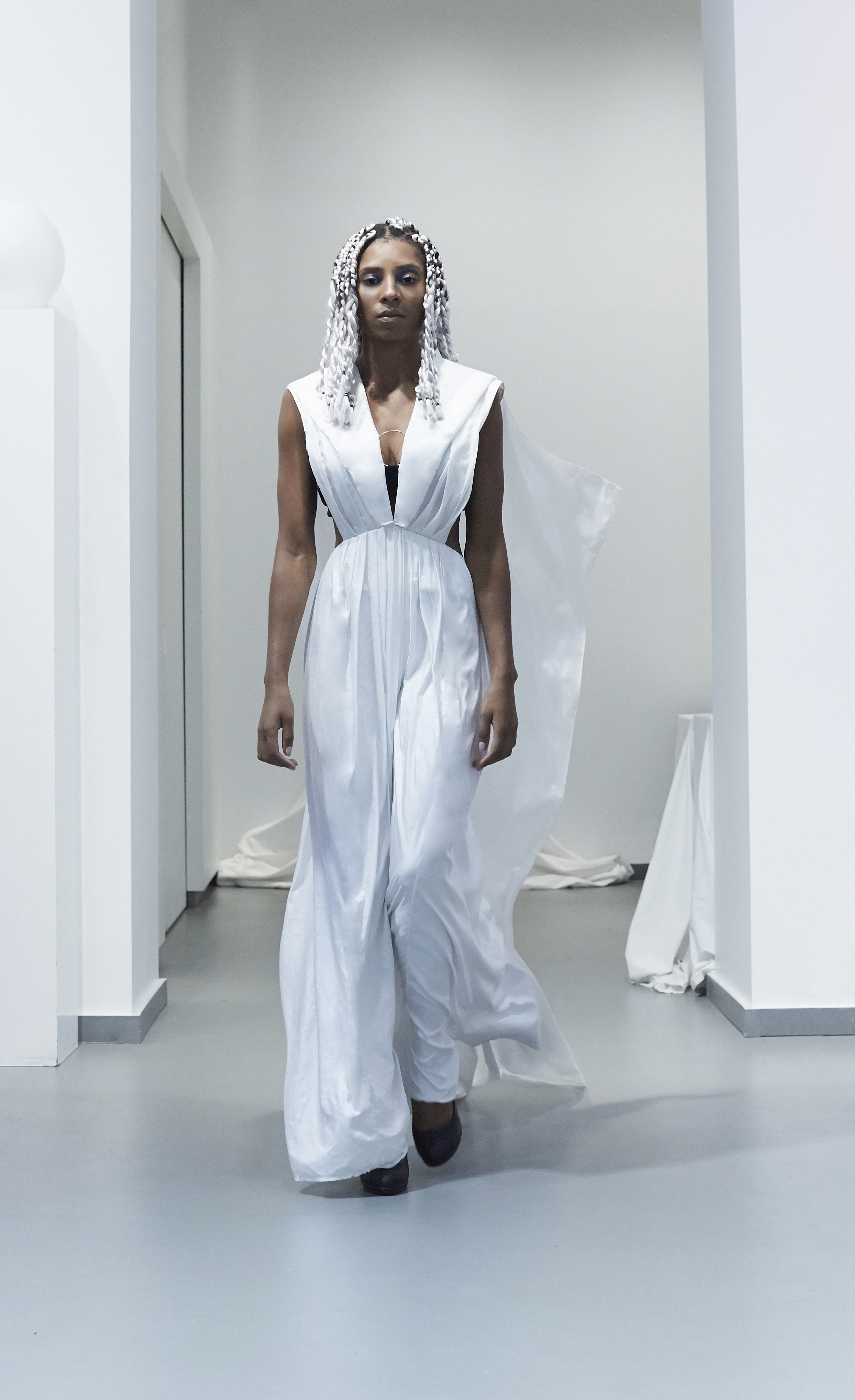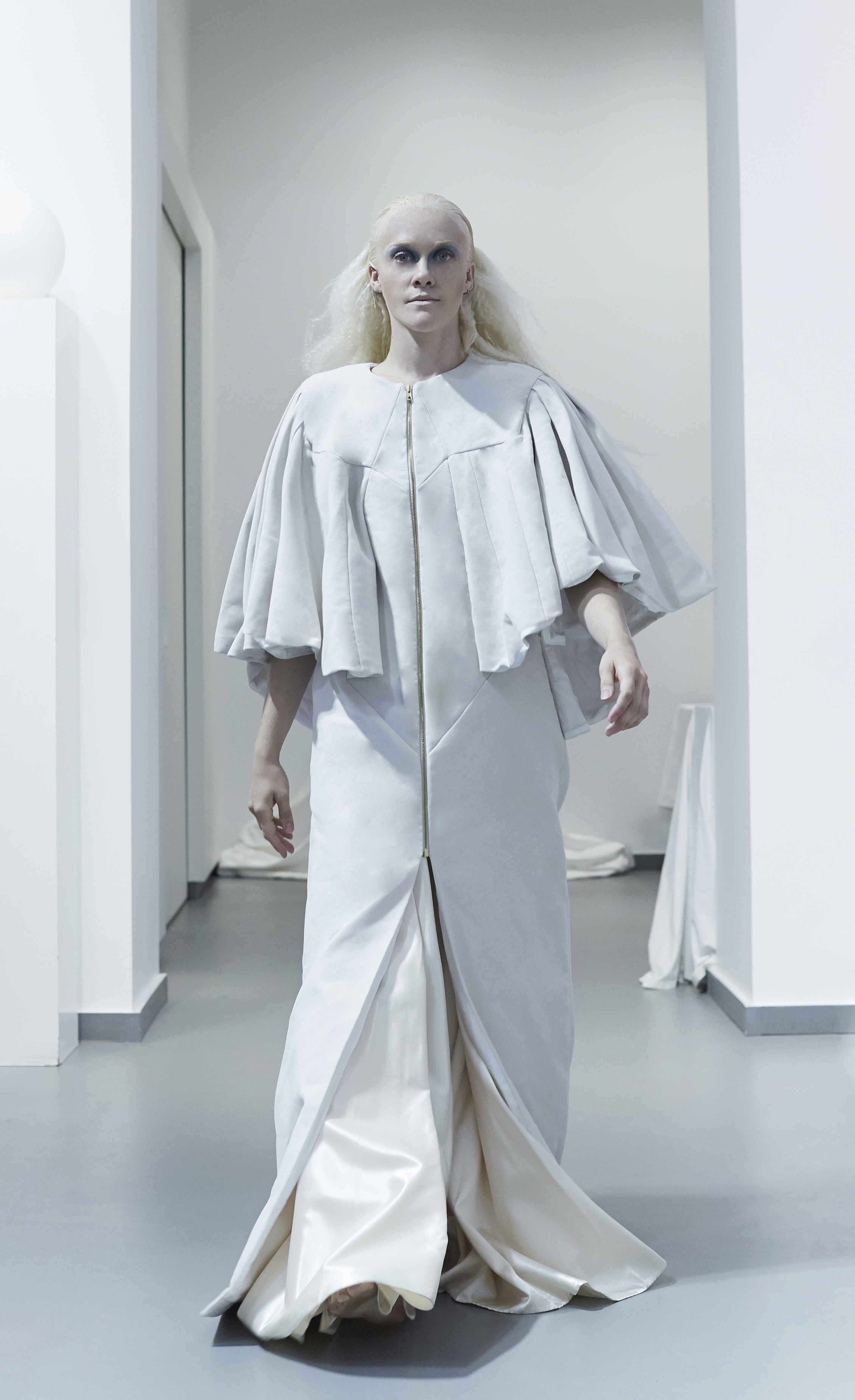 The most architectural pieces literally come to life in movement, with openings and draperies that master the material.