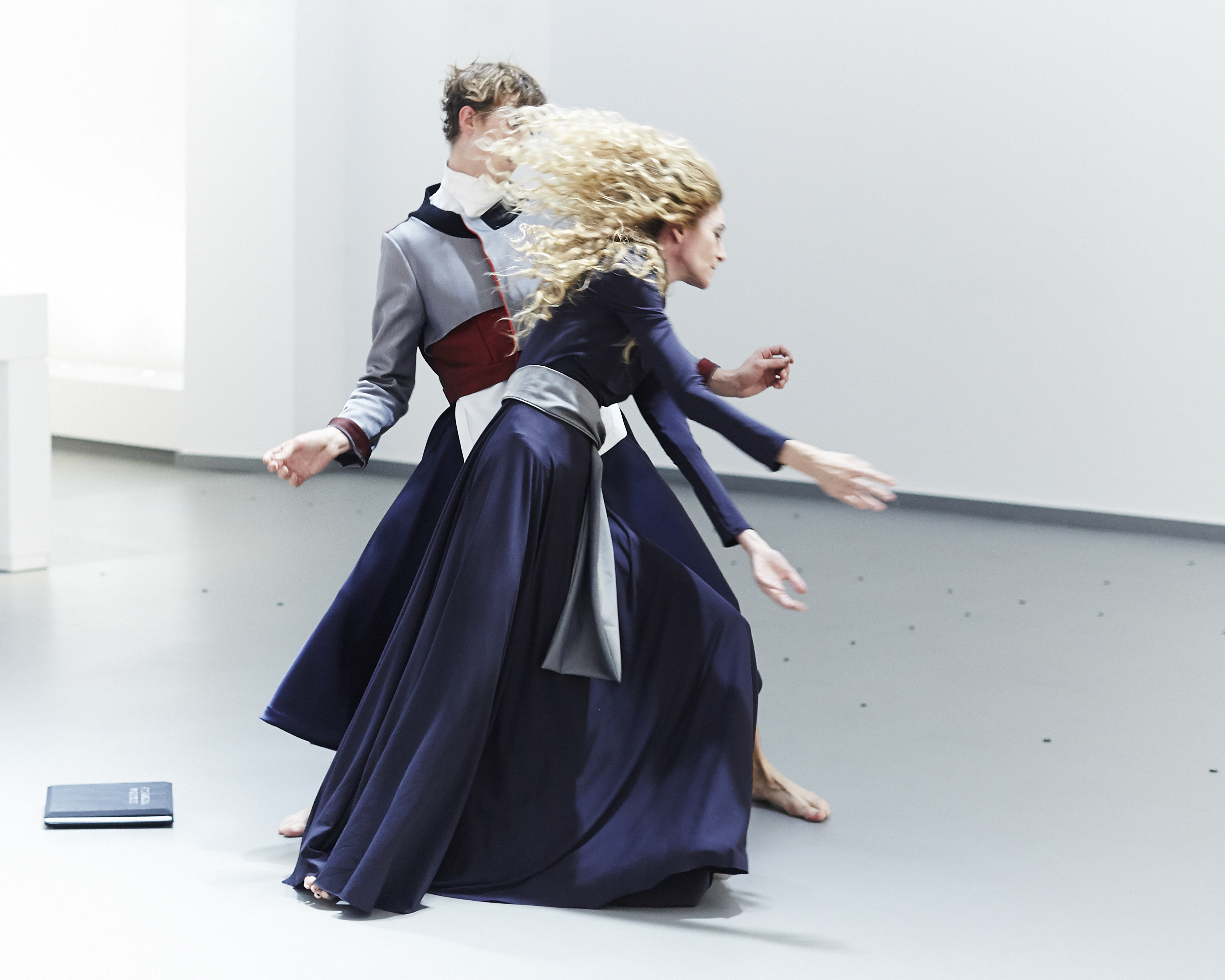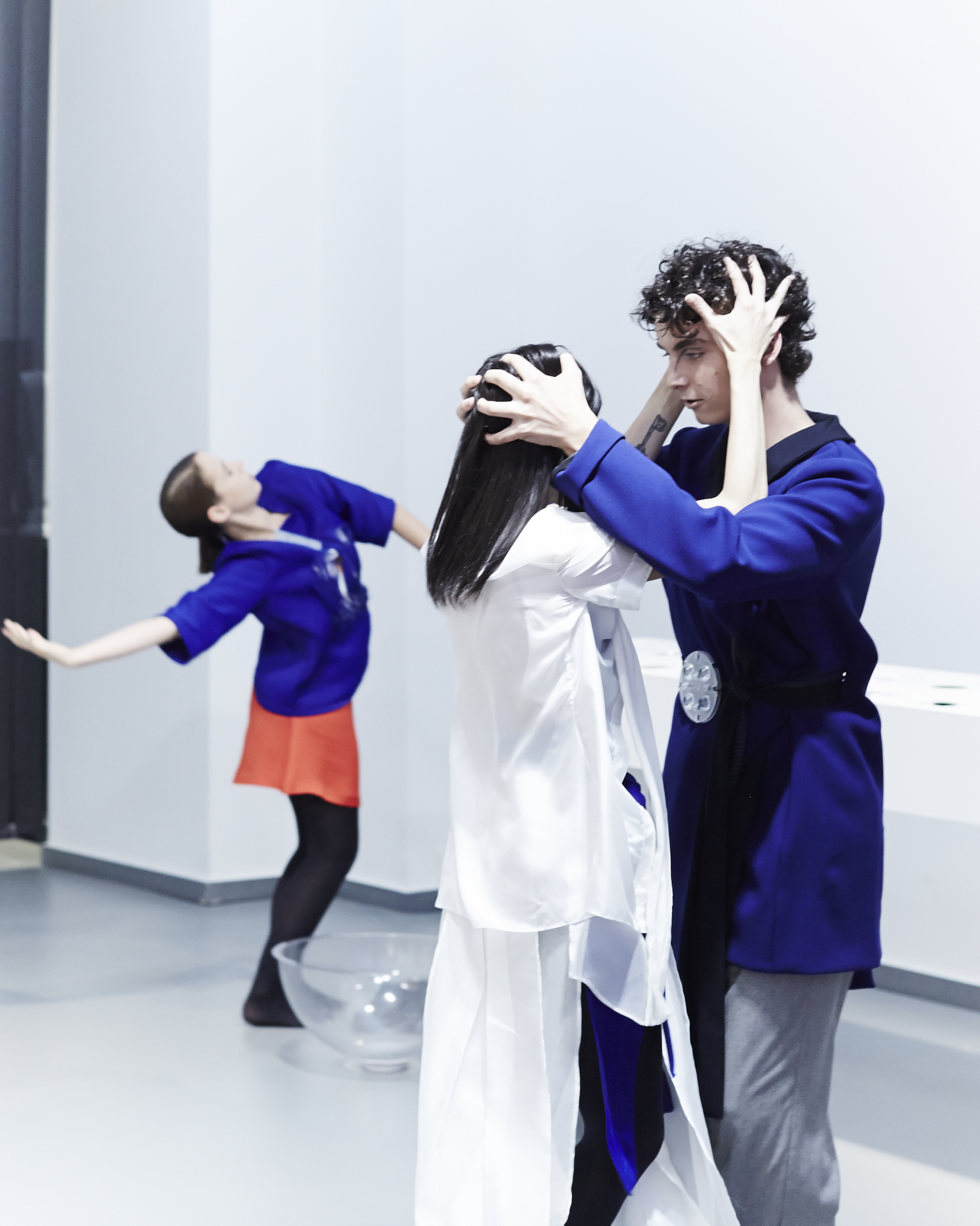 The colors oscillate in spatial chiaroscuro, tone-on-tone cameos, electrified by indigo blue, dark red and touches of metallic.