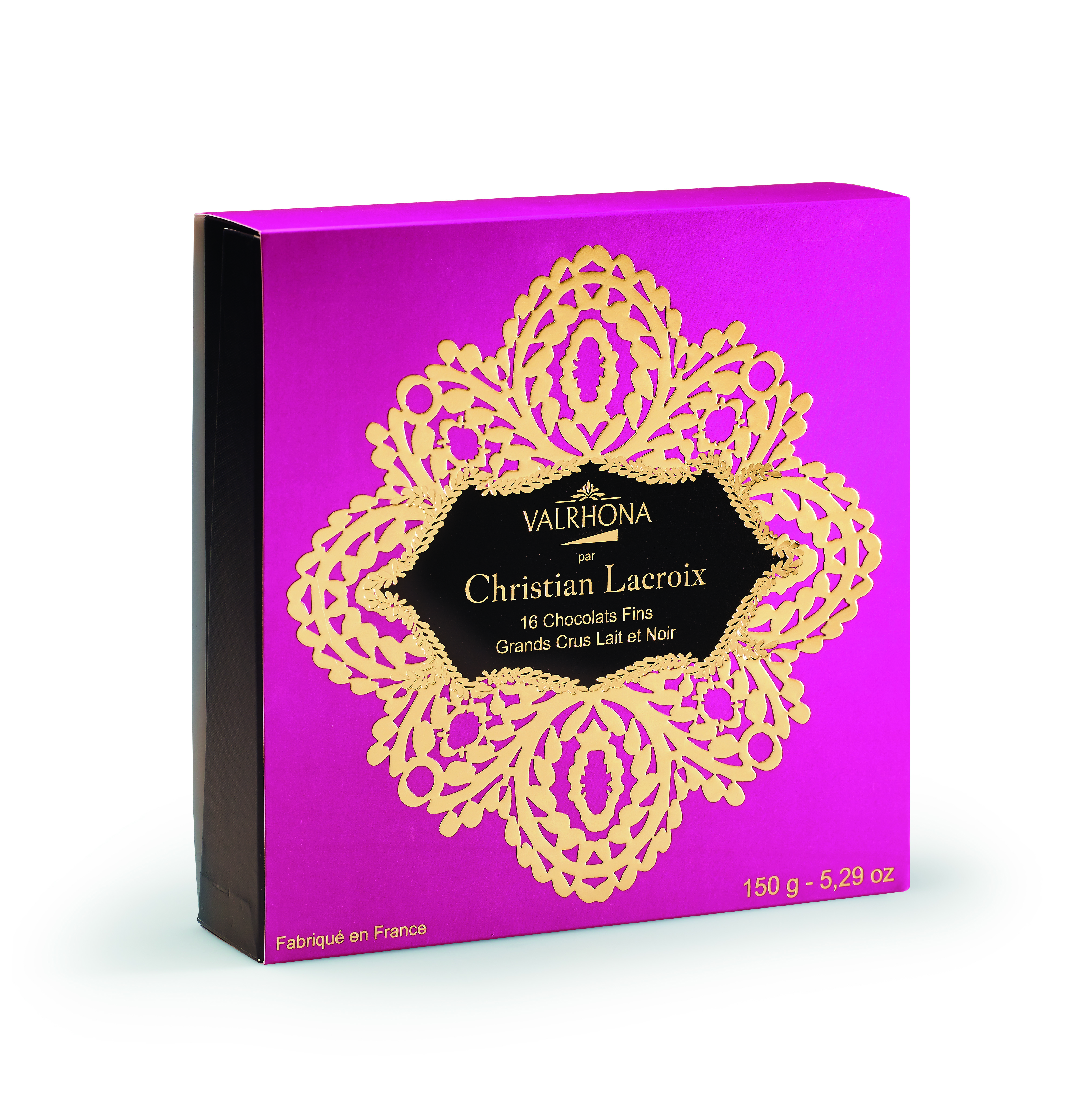 For the second year running, Valrhona has teamed up with the unique, colorful style of Maison Christian Lacroix to offer a range of gourmet treats, ideal for giving and sharing over the festive season. In this collection, you’ll find three exquisitely designed boxes wrapped in gift paper featuring the famous paseo motif by Maison Christian Lacroix.
