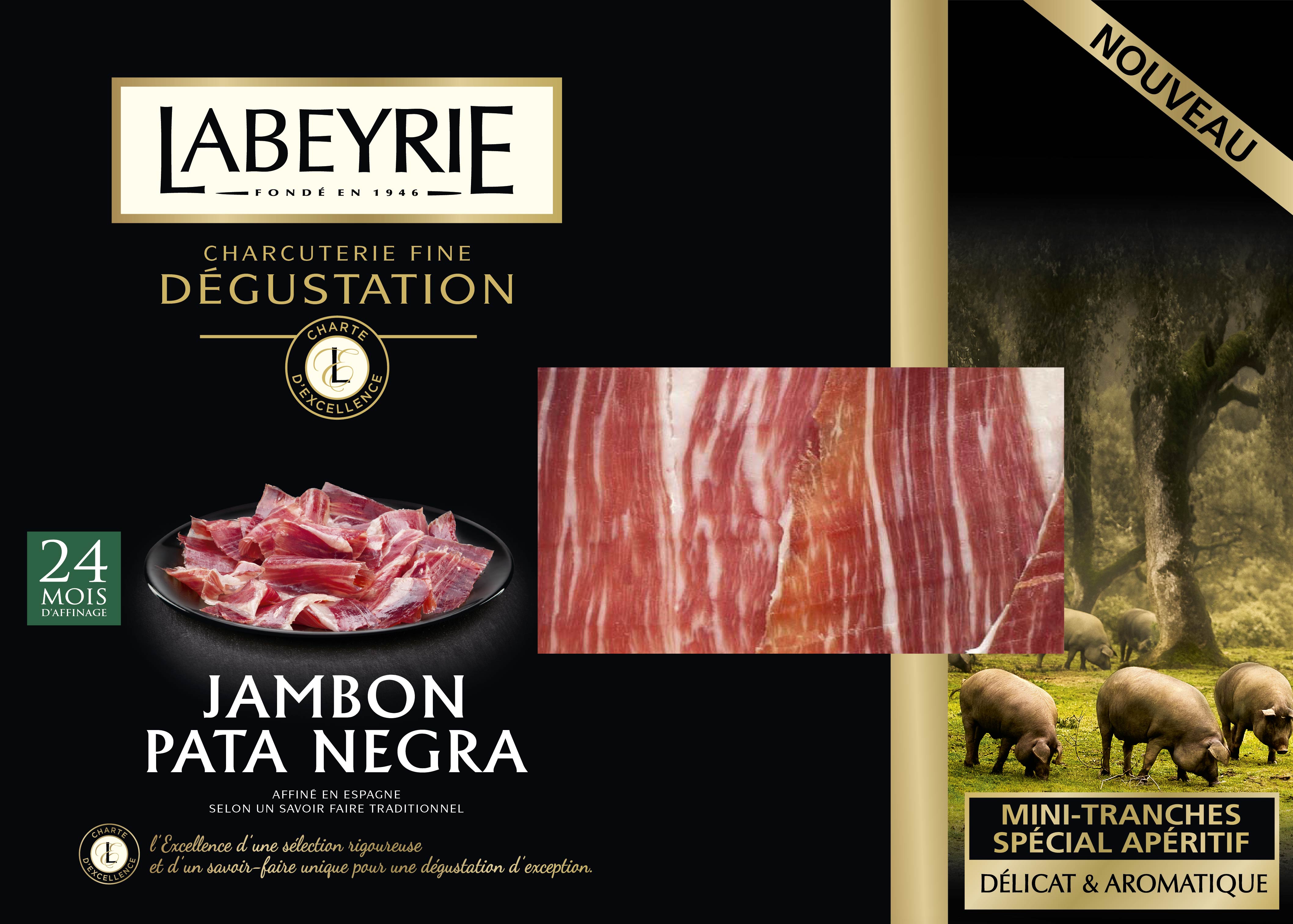 LABEYRIE Pata Negra Ham is the ideal choice for a festive aperitif. Its delicate cut makes it an enchanting delicacy.