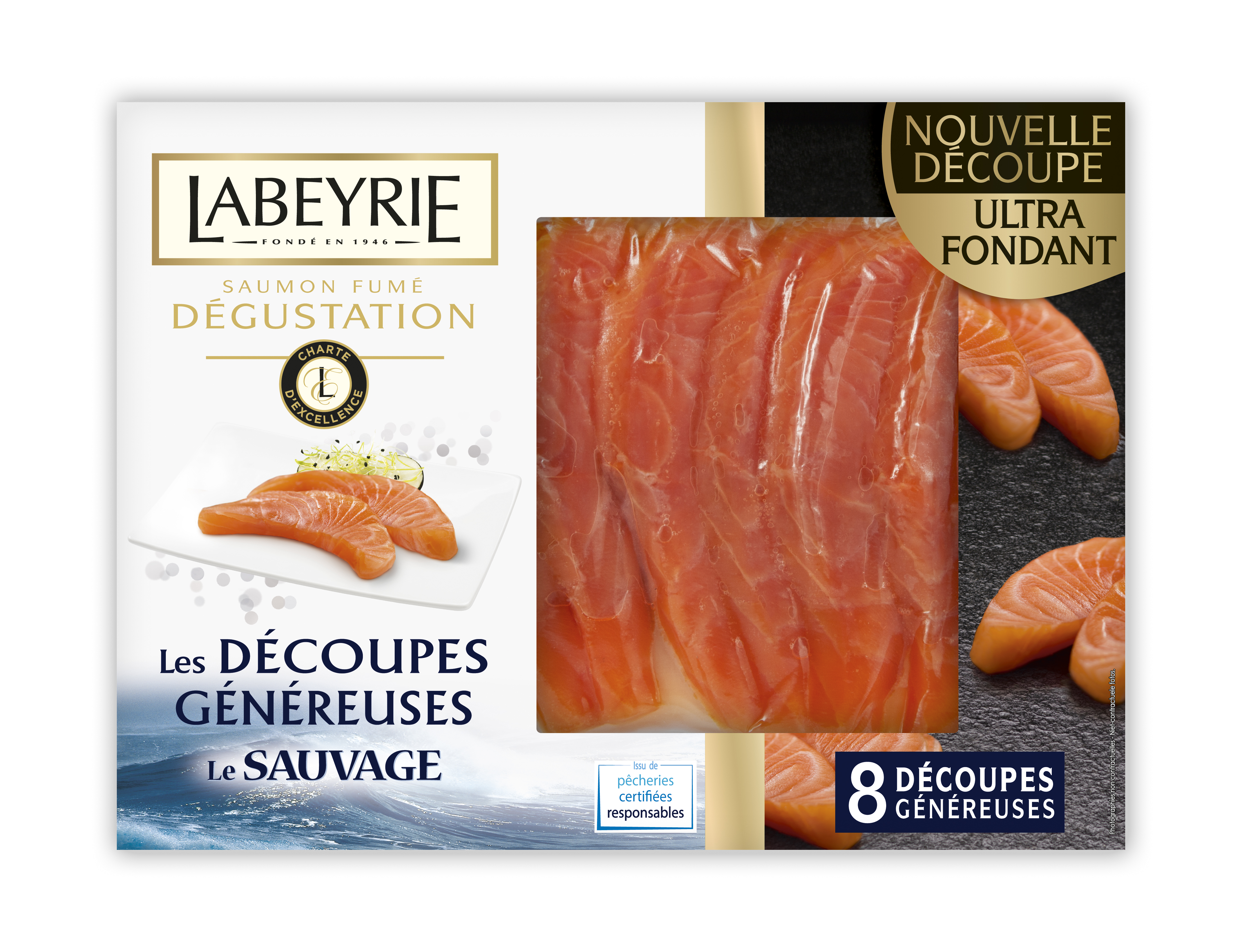 LABEYRIE SMOKED SALMON IS THE ULTIMATE SHARING PRODUCT. IT CELEBRATES CONVIVIALITY THROUGH ITS SMOOTH, FLAVORFUL TEXTURE. SLOW-SMOKED IN OAK, IT WILL DELIGHT THE FINEST GOURMETS.