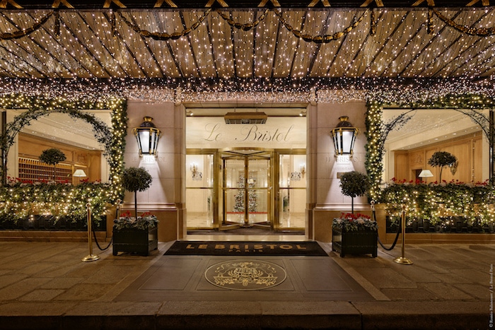 weeks. A forest of illuminated fir trees grows there as if by magic. As soon as you pass through the colonnaded gallery, Le Bristol takes you on an astonishing stroll through a veritable Christmas forest, which