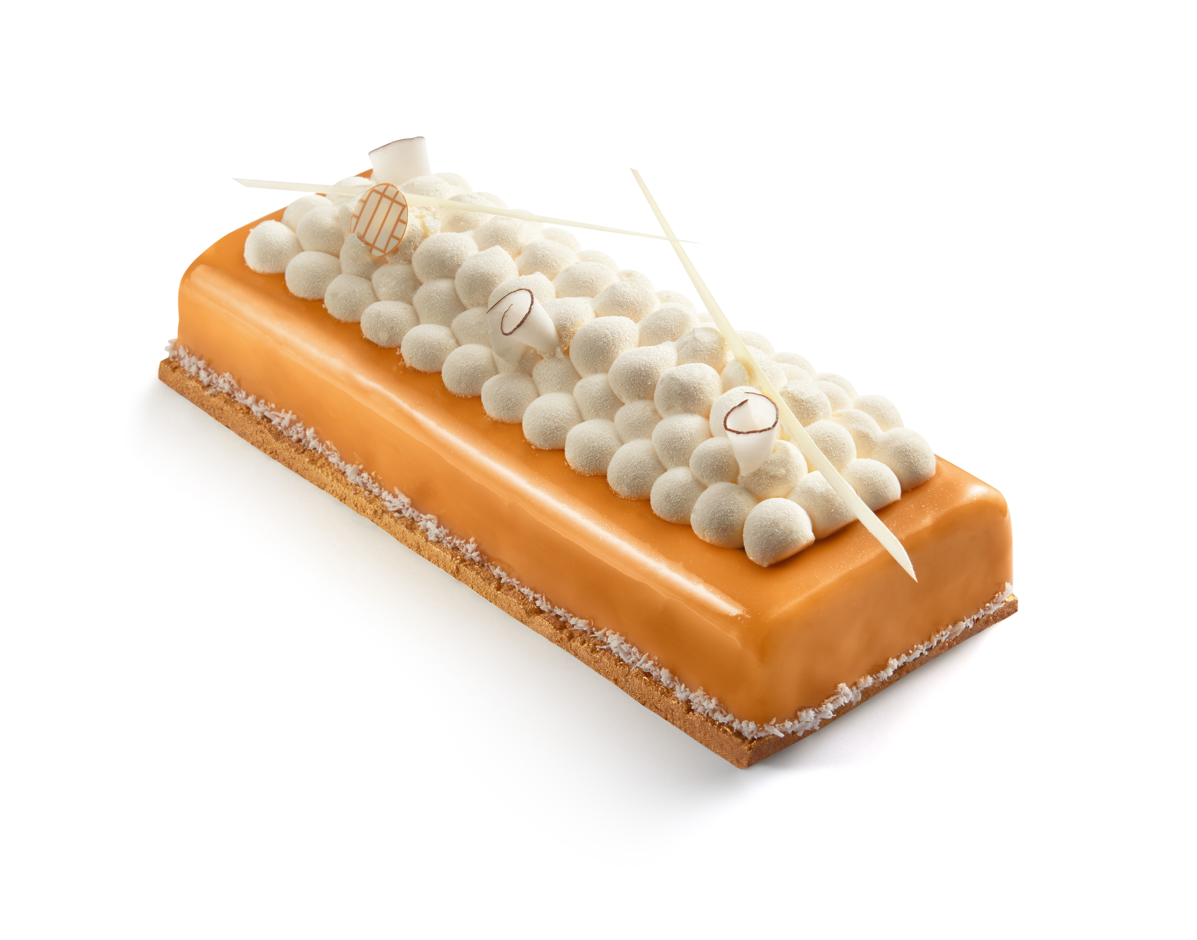 A log with pronounced flavors: coconut & lemongrass, seasoned with vanilla. On a base of crispy puffed rice: coconut cookie, lemongrass cream, vanilla-lemongrass mousse and coconut chantilly balls are superimposed for an explosion of exotic flavors. A caramel glaze completes the picture. A majestic sugar canopy representing the Molitor Rotunda, resolutely Art Deco, sublimates the log, while paying a vibrant tribute to Lucien Pollet, architect of this institution that saw the light of day in 1929. The Molitor log for 2017 is a unique piece, an amalgam of art and craftsmanship, in the image of Art Deco buildings.