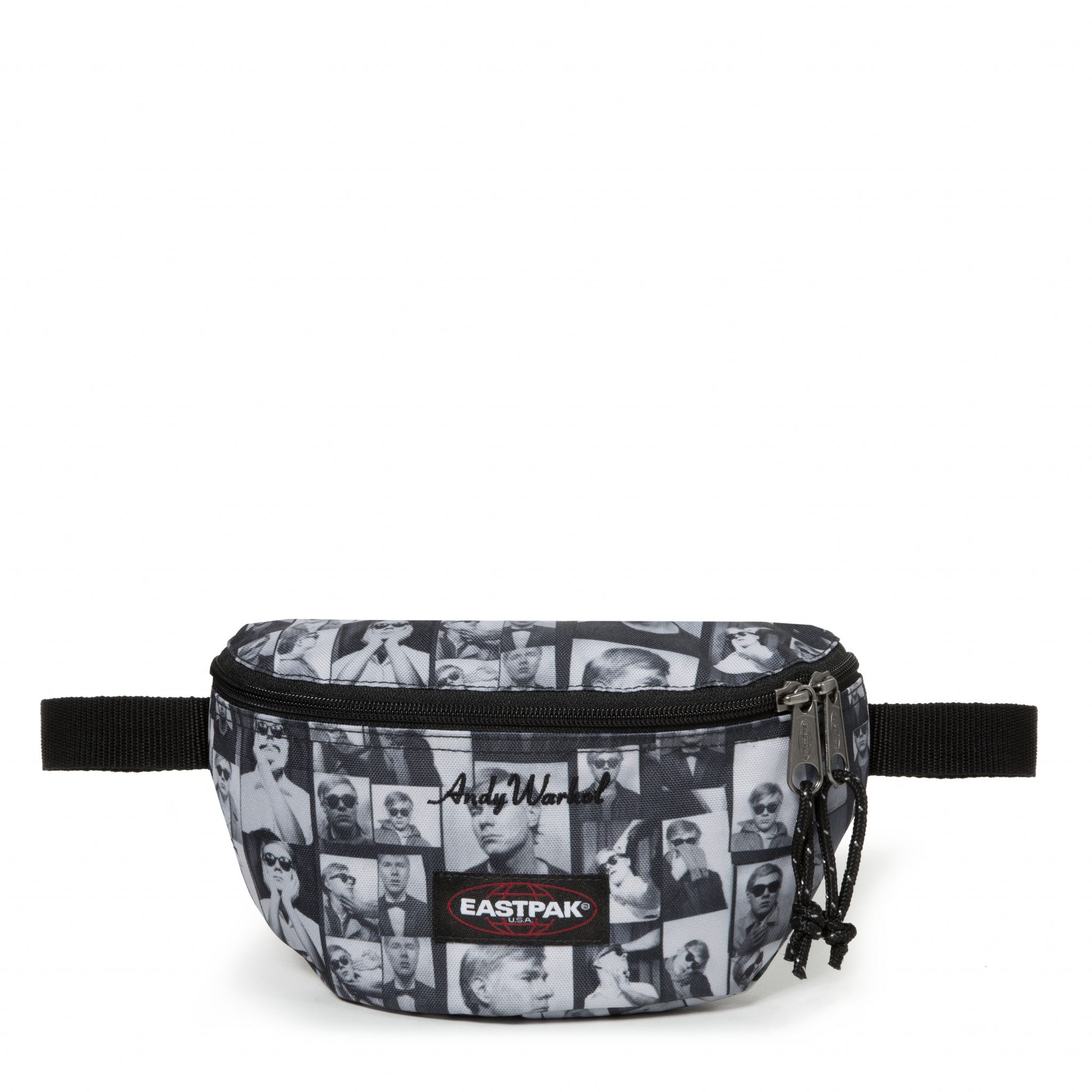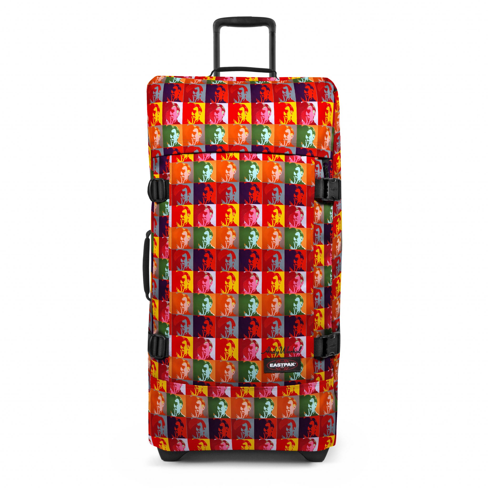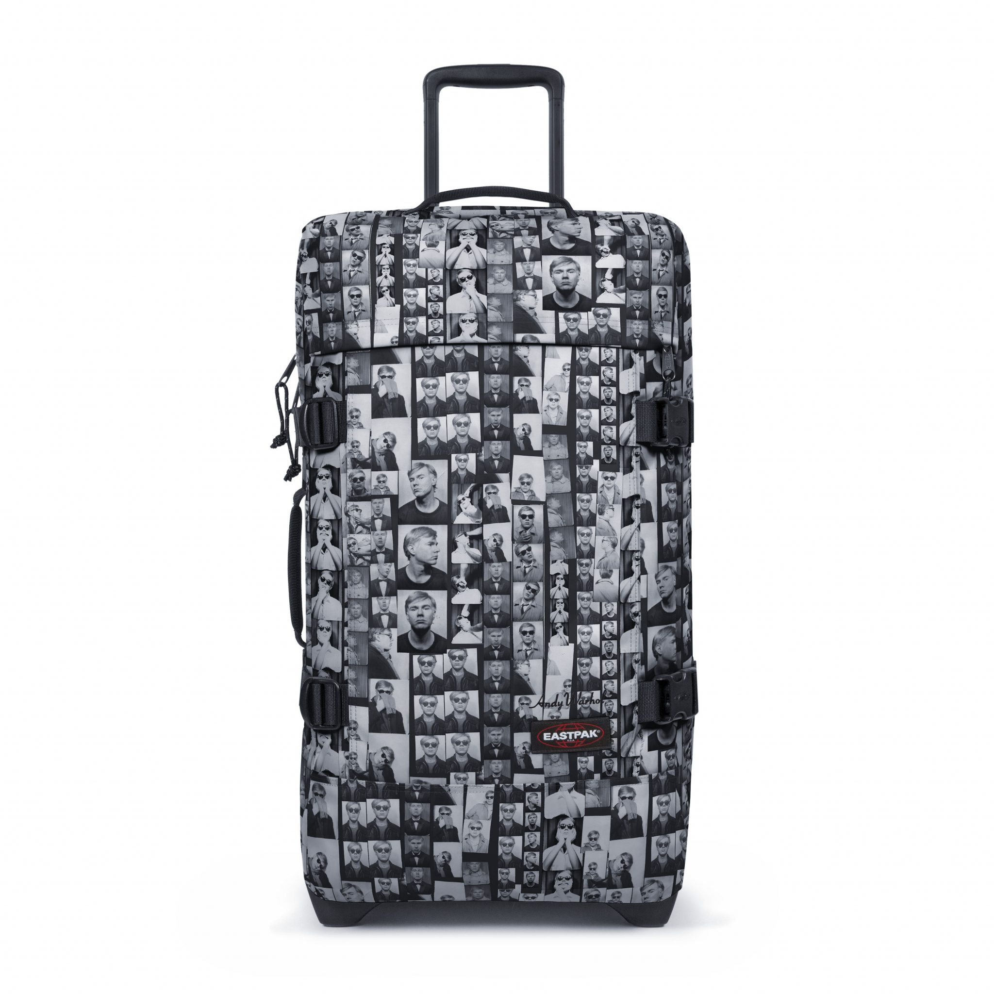 Warhol was often photographed carrying the Padded Pak’r®. This Eastpak bag, his favorite, here in black leather, is revisited in his image and through pop-art prints.