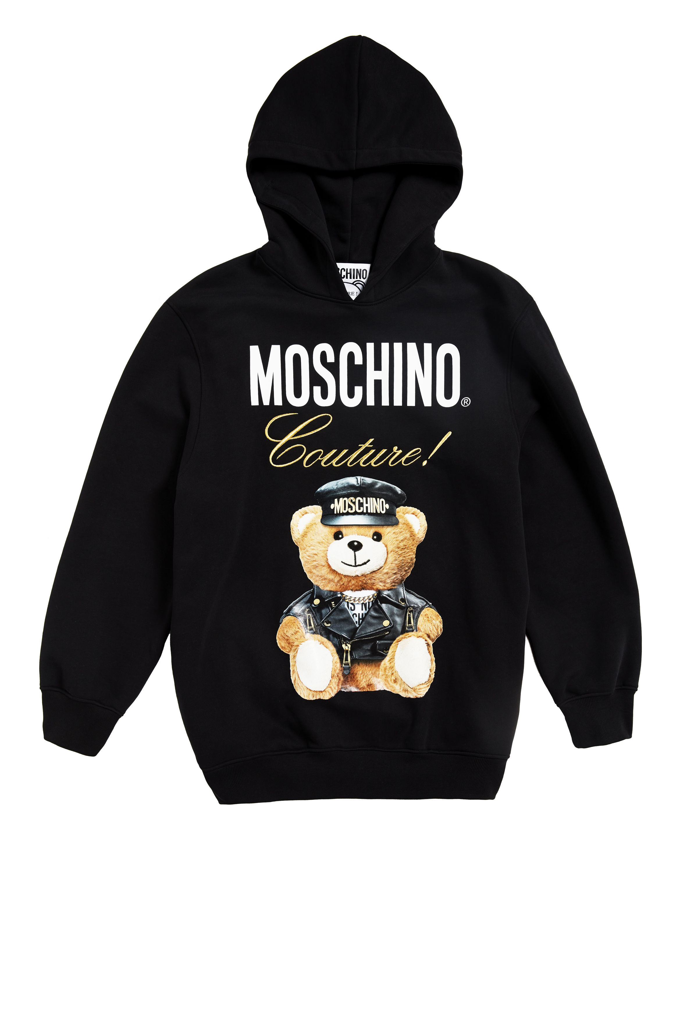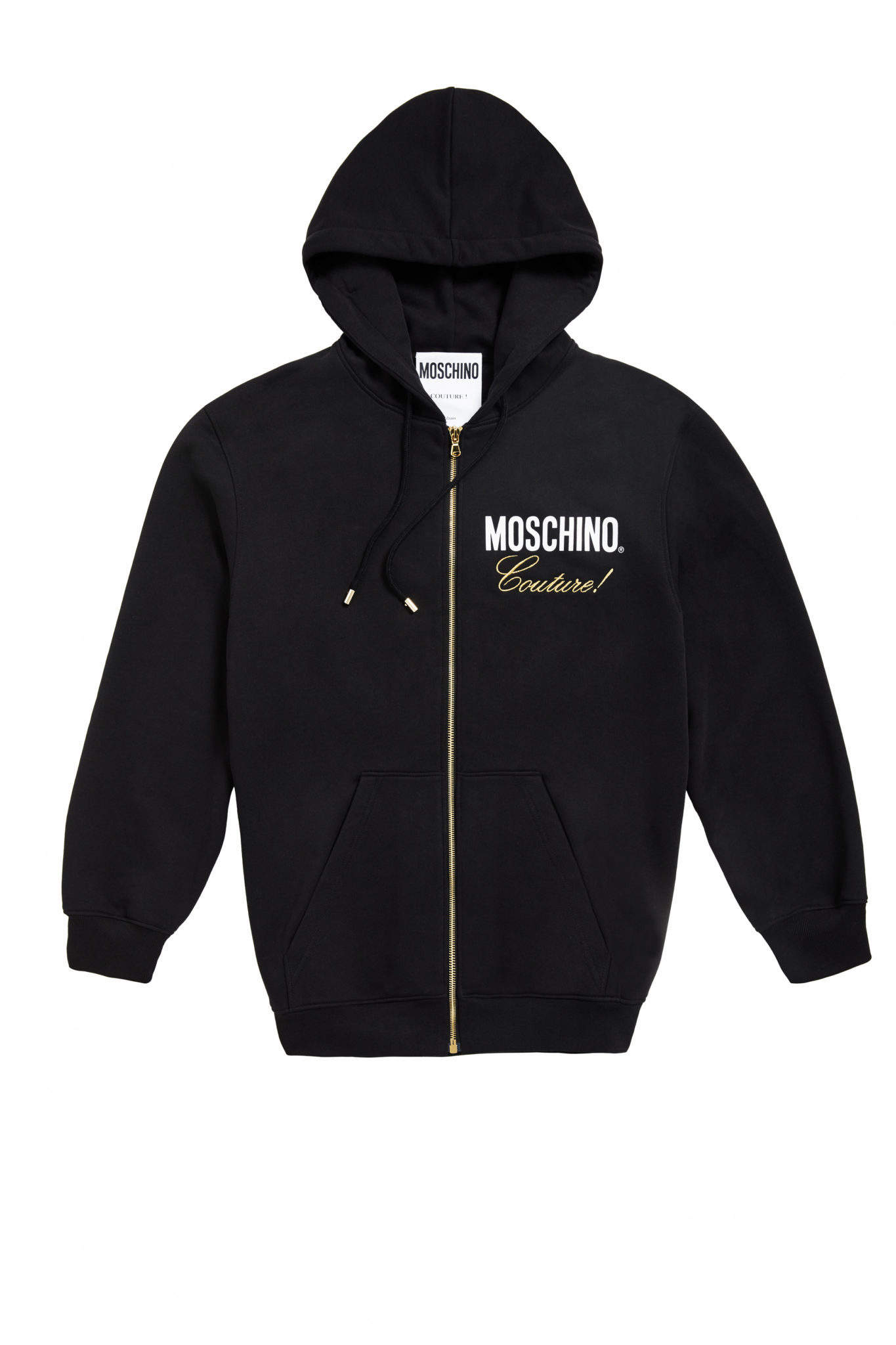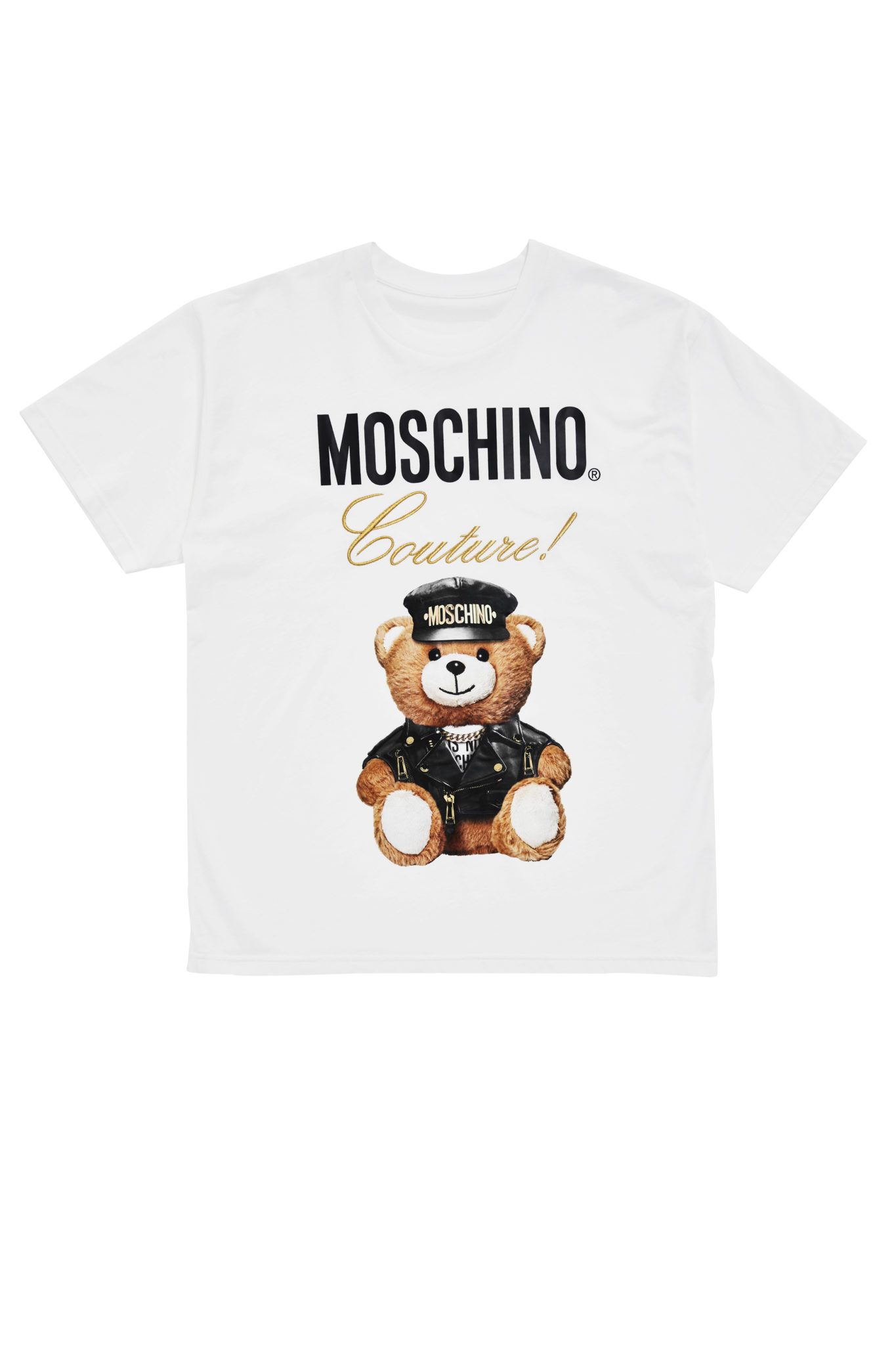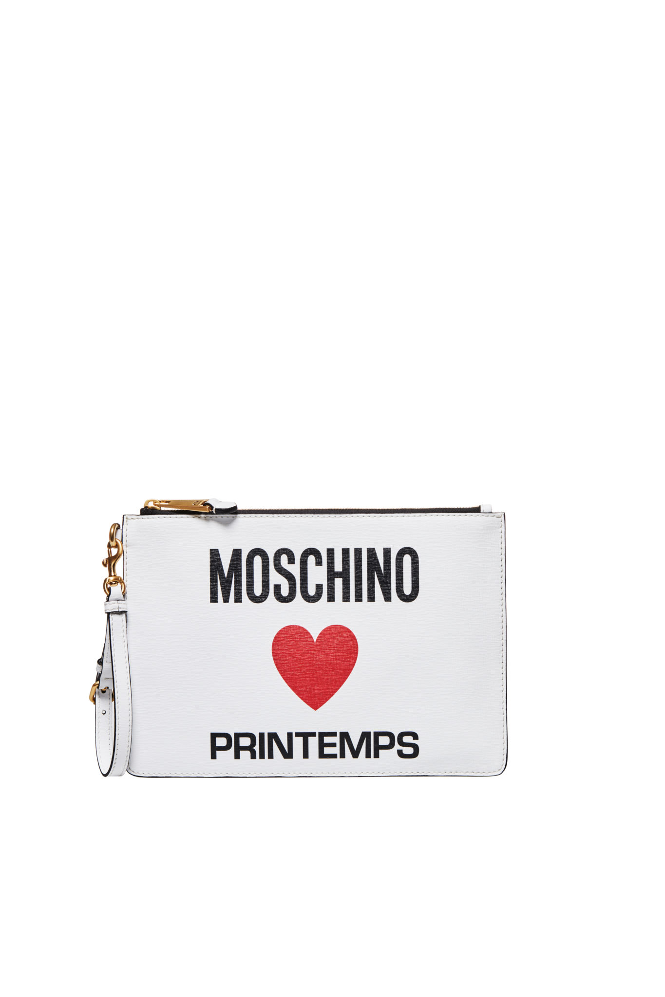 Moschino announces its creative collaboration with Parisian shopping destination Printemps Haussmann, for which Jeremy Scott has designed an exclusive limited edition collection inspired by the brand’s iconic symbols. The “Moschino Loves Printemps” line reinterprets some of the brand’s most representative motifs, present on a range of garments and accessories from biker jackets to iPhone cases. The biker bear, red heart and retro Moschino Couture! lettering take turns on nylon or leather T-shirts, sweatshirts, knitwear and coats striped with shiny macro zippers, while giant gold lettering is embossed on a hat-shaped bag with a metal chain shoulder strap. The collection also includes a clutch, a backpack and a tote bag, as well as a swimsuit and an umbrella featuring the teddy bear print in full regalia, along with the biker jacket and French-style hat.