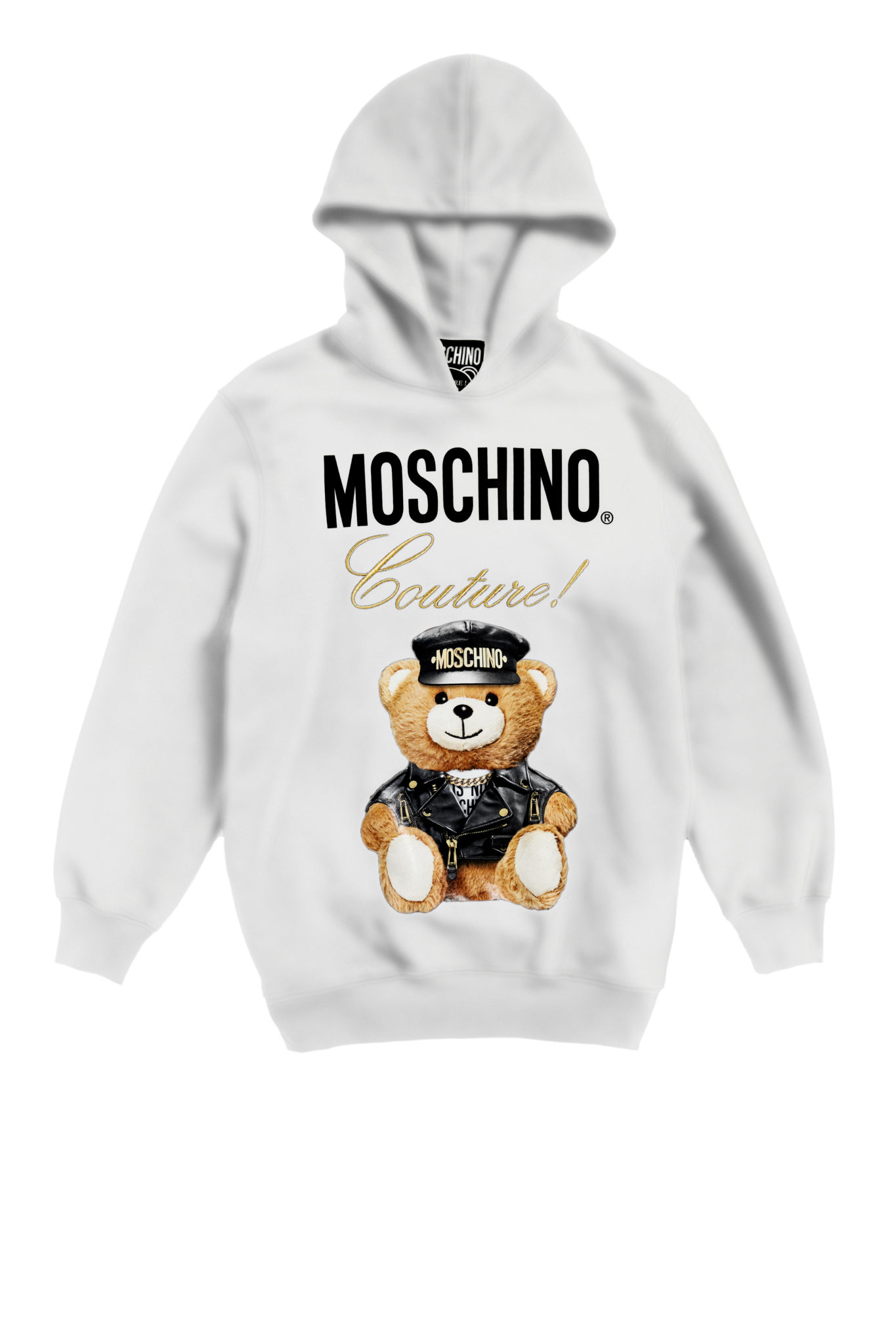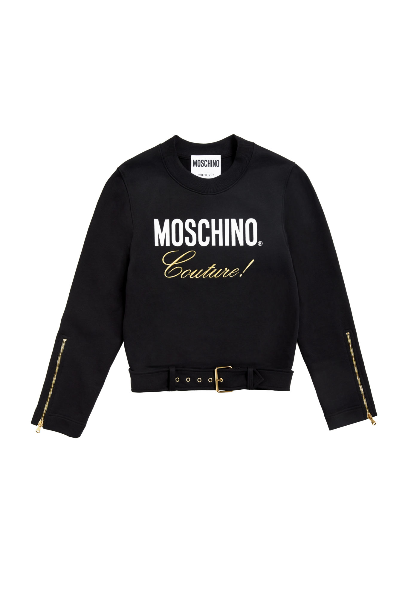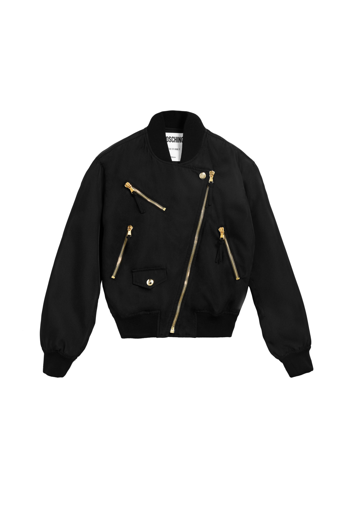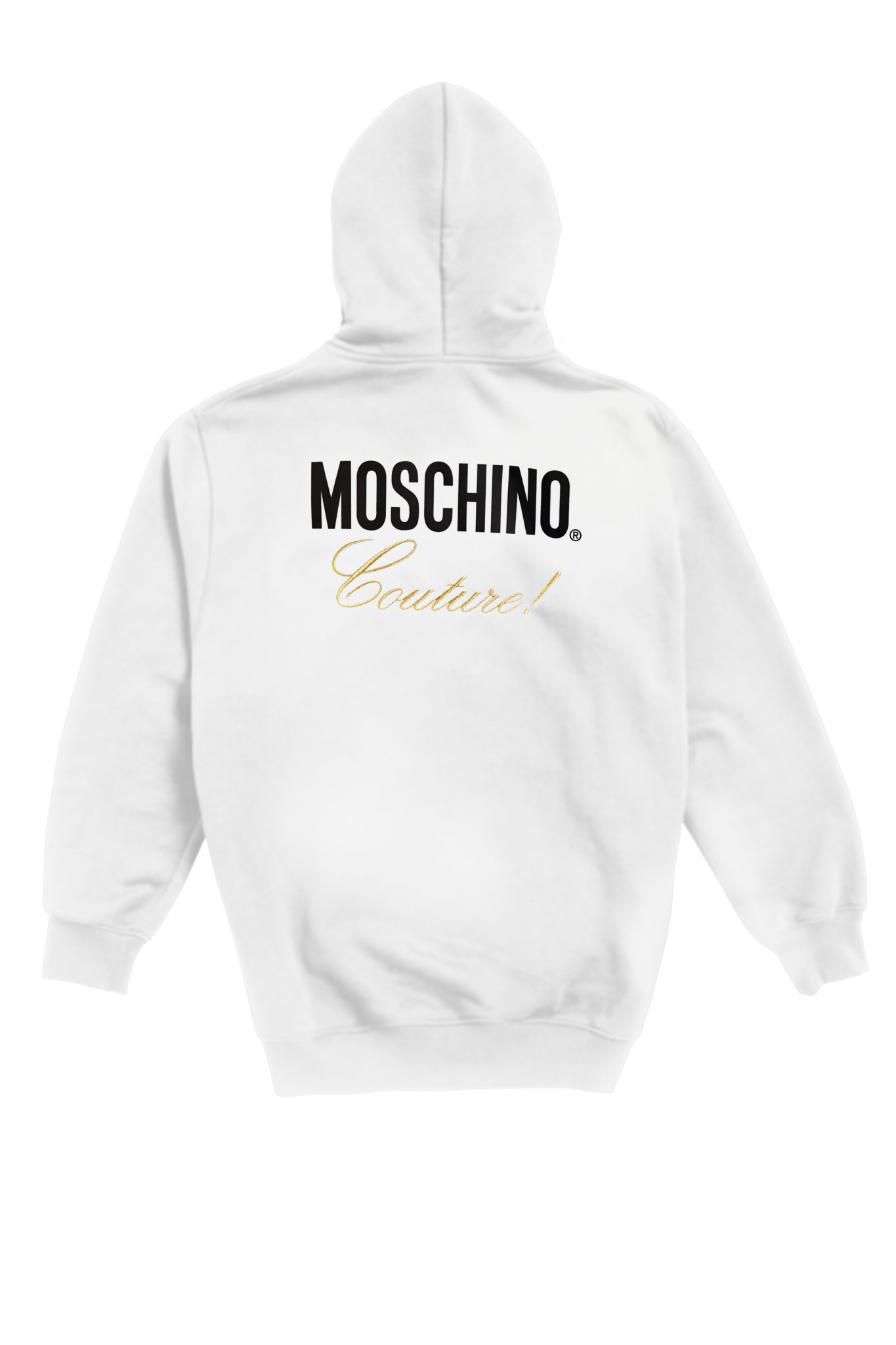 Moschino announces its creative collaboration with Parisian shopping destination Printemps Haussmann, for which Jeremy Scott has designed an exclusive limited edition collection inspired by the brand’s iconic symbols. The “Moschino Loves Printemps” line reinterprets some of the brand’s most representative motifs, present on a range of garments and accessories from biker jackets to iPhone cases. The biker bear, red heart and retro Moschino Couture! lettering take turns on nylon or leather T-shirts, sweatshirts, knitwear and coats striped with shiny macro zippers, while giant gold lettering is embossed on a hat-shaped bag with a metal chain shoulder strap. The collection also includes a clutch, a backpack and a tote bag, as well as a swimsuit and an umbrella featuring the teddy bear print in full regalia, along with the biker jacket and French-style hat.